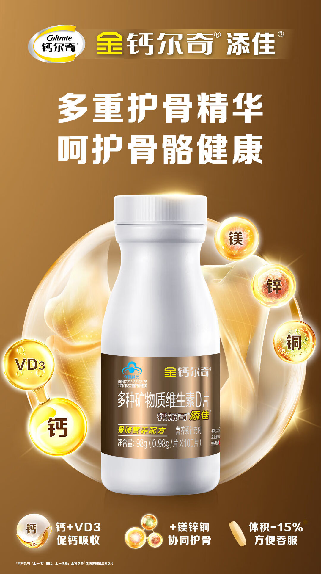 金钙尔奇钙片中老年成人含钙镁锌铜维生素D3 补碳酸钙添佳片100片 添佳片 100片*2盒
