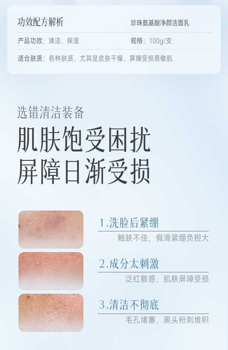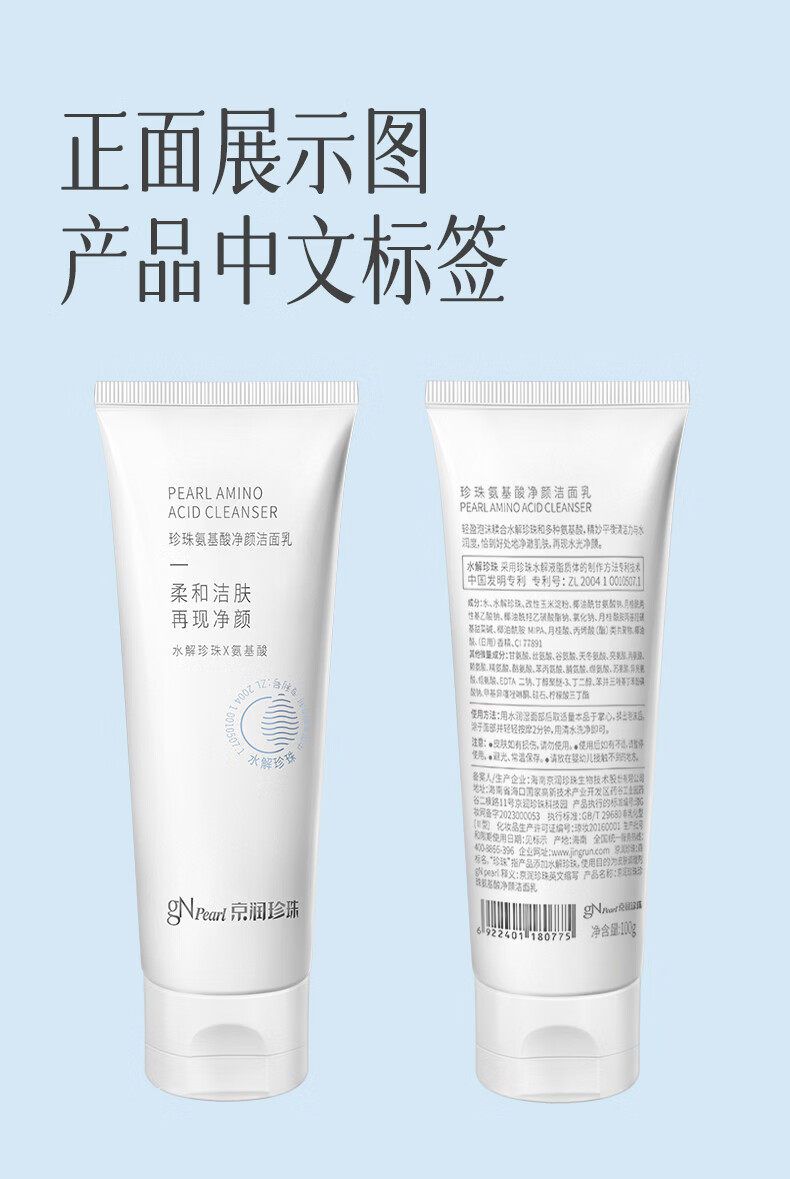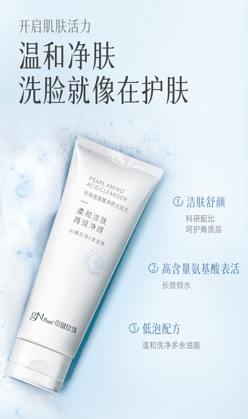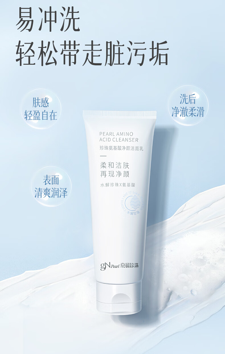 京润珍珠(gNPearl)珍珠氨基酸净颜洁面乳100g 清洁去油去污不刺激洗面奶 氨基酸净颜洁面乳100g*2