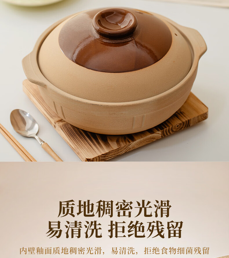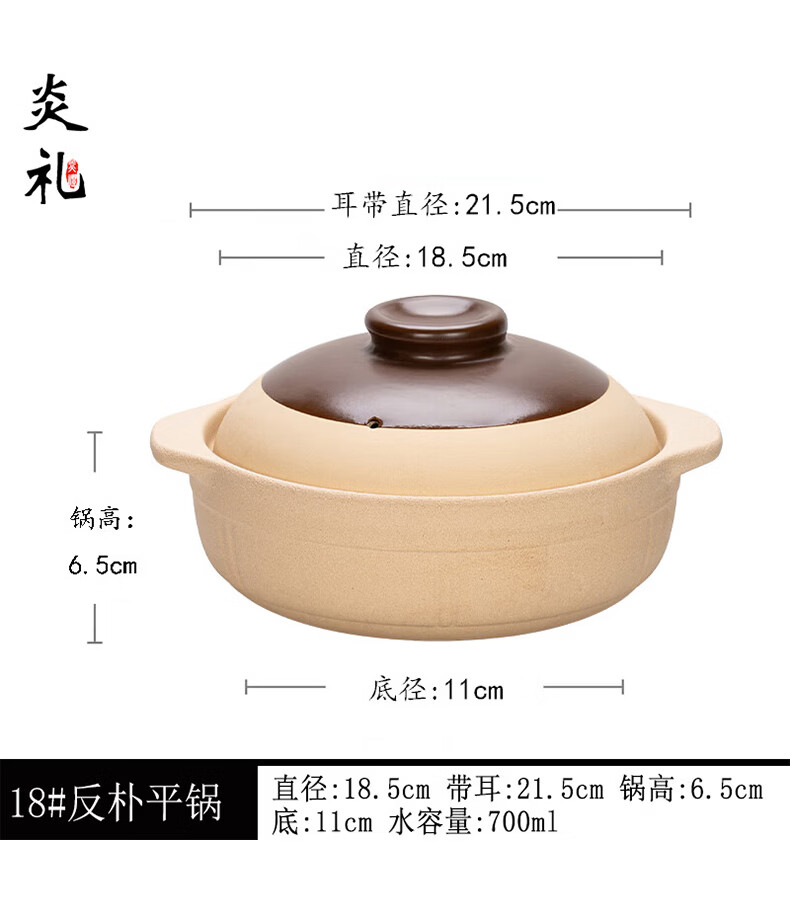 炎礼老式土砂锅耐高温砂锅菜专用煲仔饭沙锅干烧不裂商用燃气煲汤锅 32#有盖【适用8-12人】反朴平锅 5L