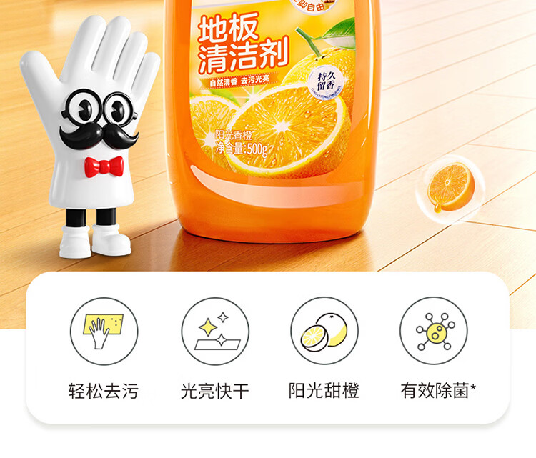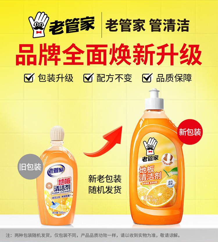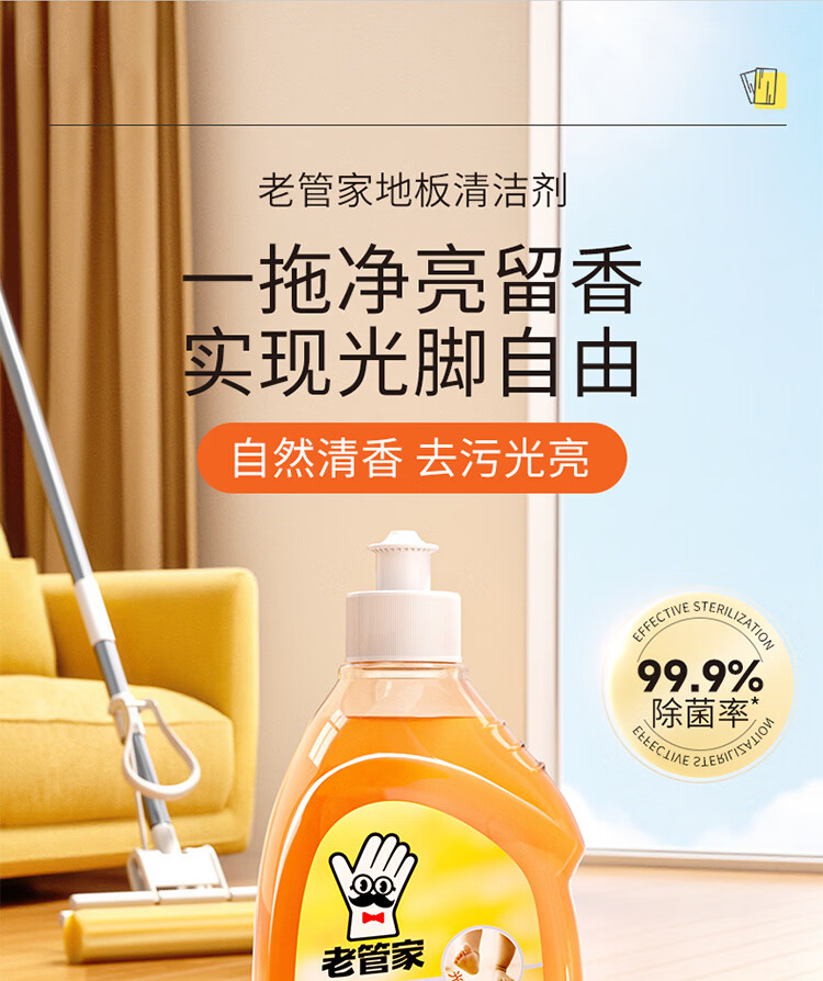 老管家地板清洁剂实木地板瓷砖净厕所除菌家用地面清洗液拖地神器500ml 2瓶