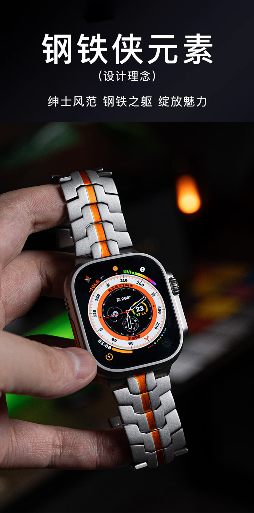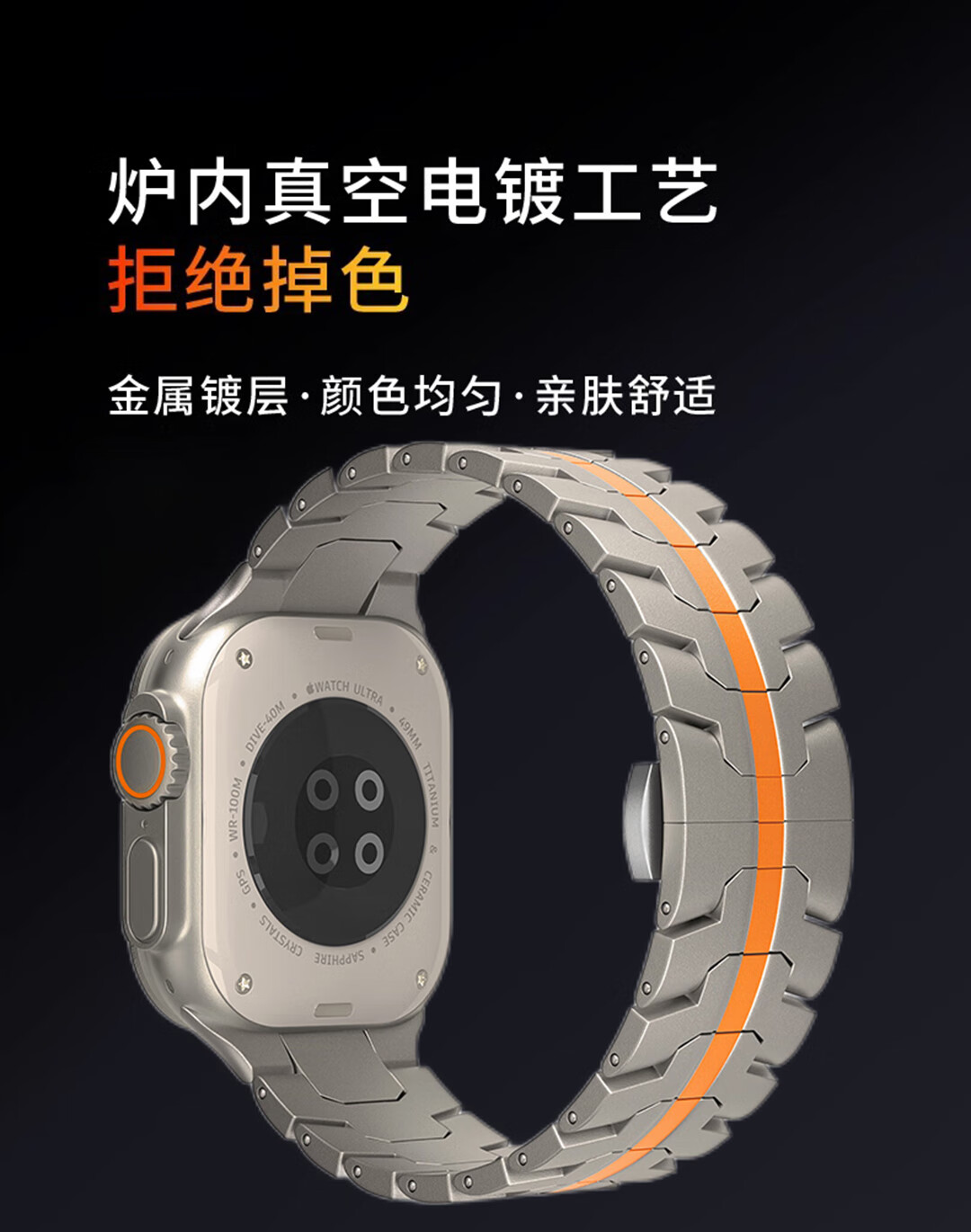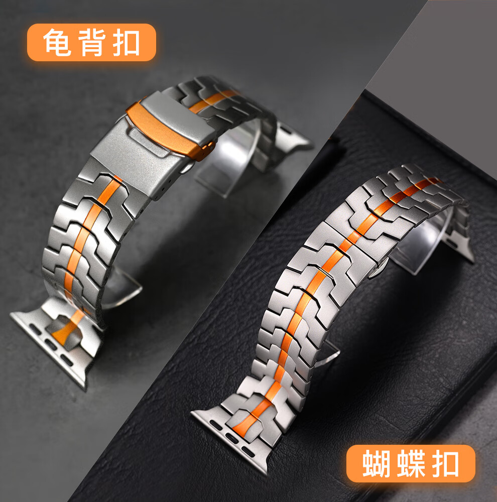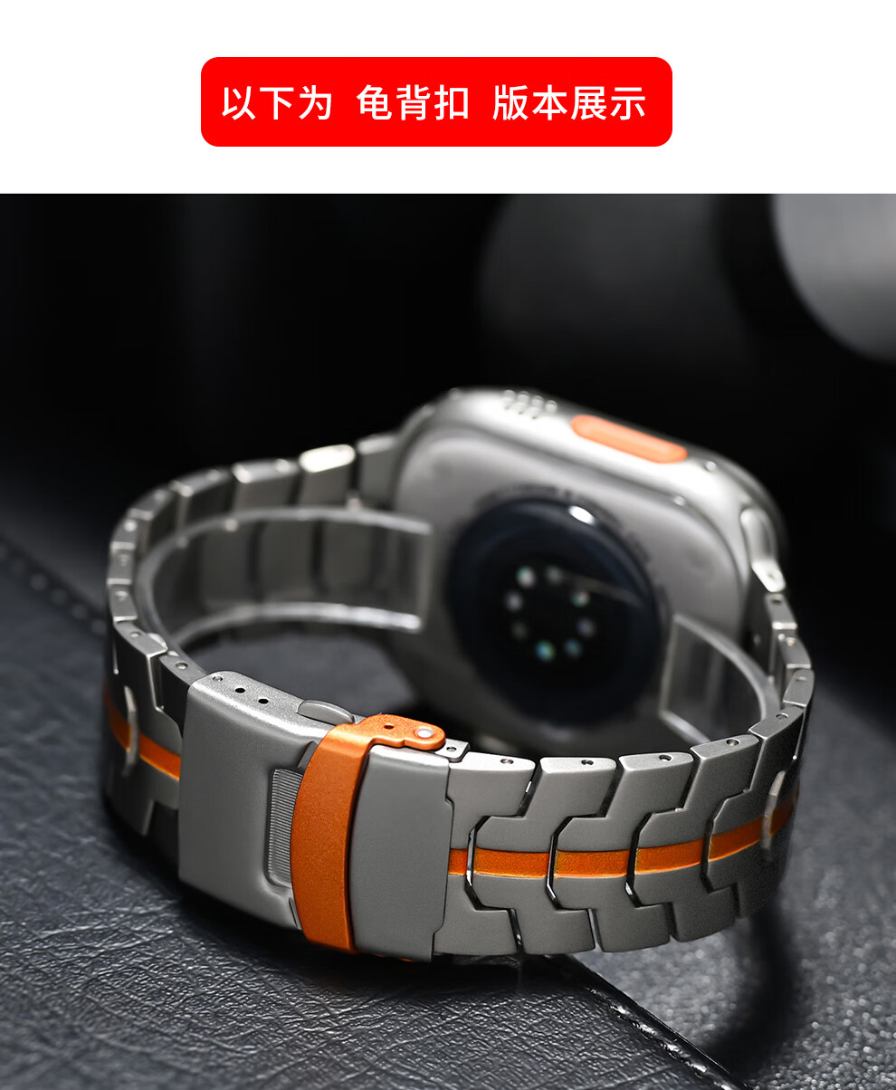 君自名适用AppleWatchUltra3表带AppleWatch金属Ultra2苹果iWatchUltra手表带iWatchS10/AppleWatchS/S11 双保险扣【钛橙色】钢带 iWatch Ultra 3/2/1【49mm】