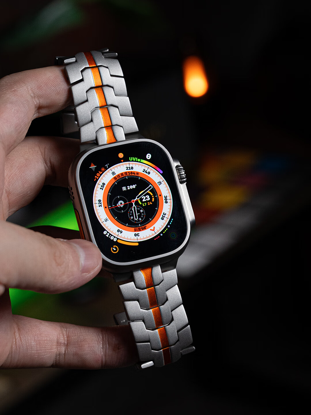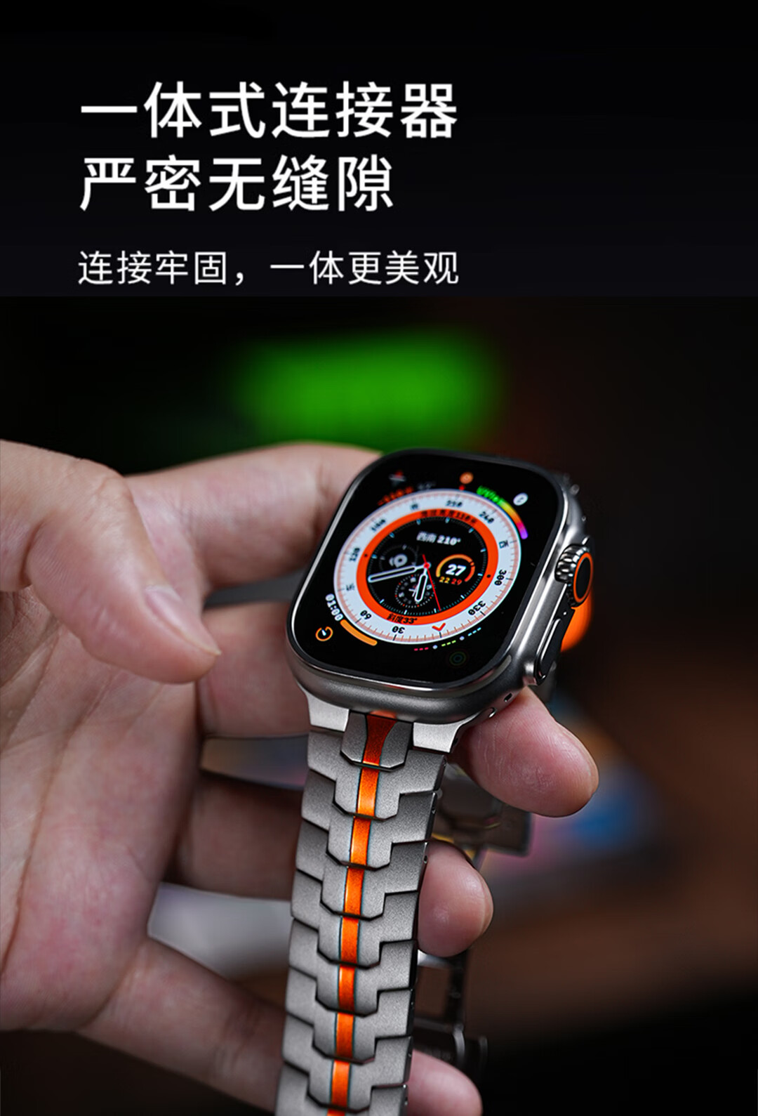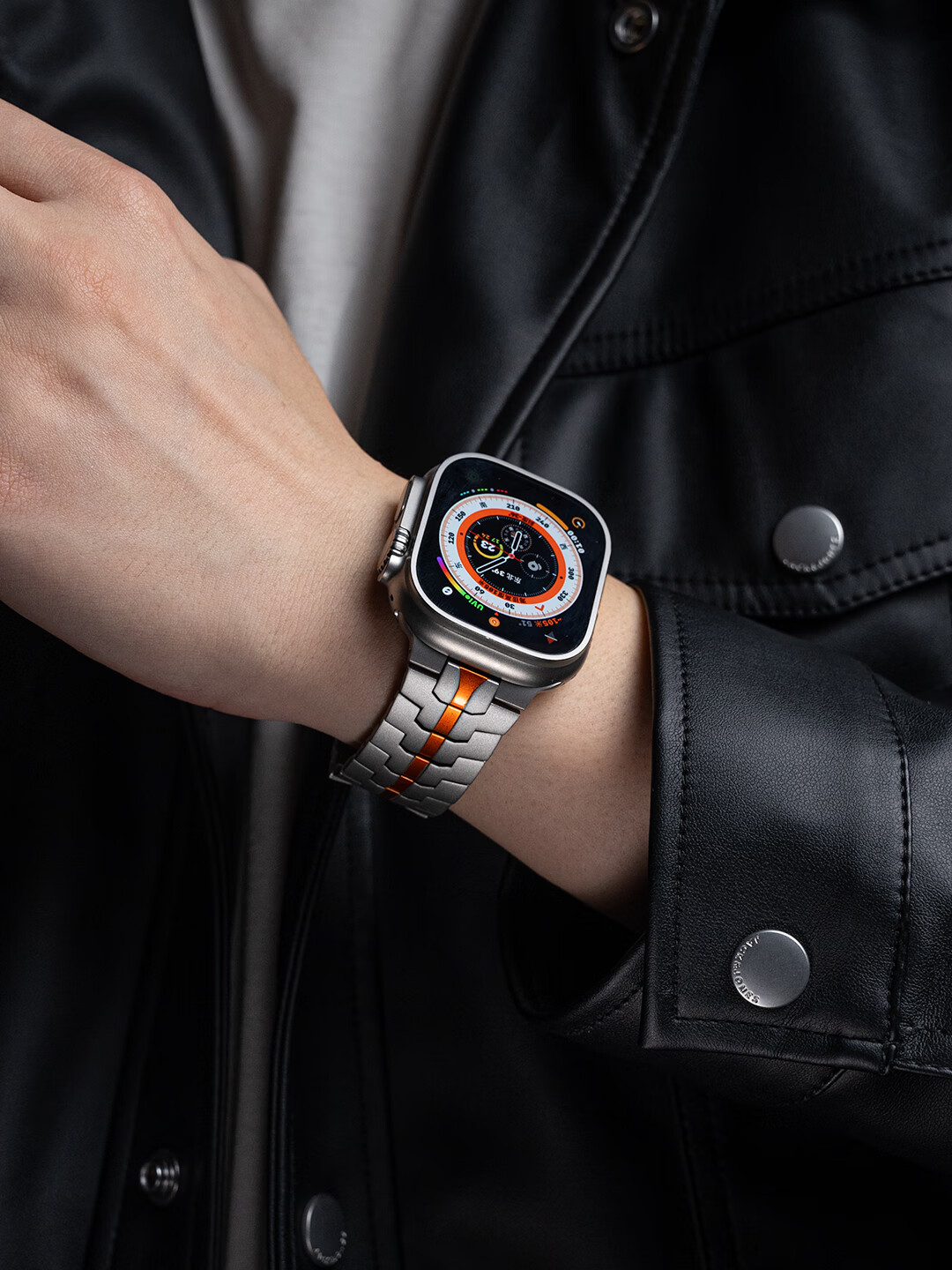 君自名适用AppleWatchUltra3表带AppleWatch金属Ultra2苹果iWatchUltra手表带iWatchS10/AppleWatchS/S11 双保险扣【钛橙色】钢带 iWatch Ultra 3/2/1【49mm】
