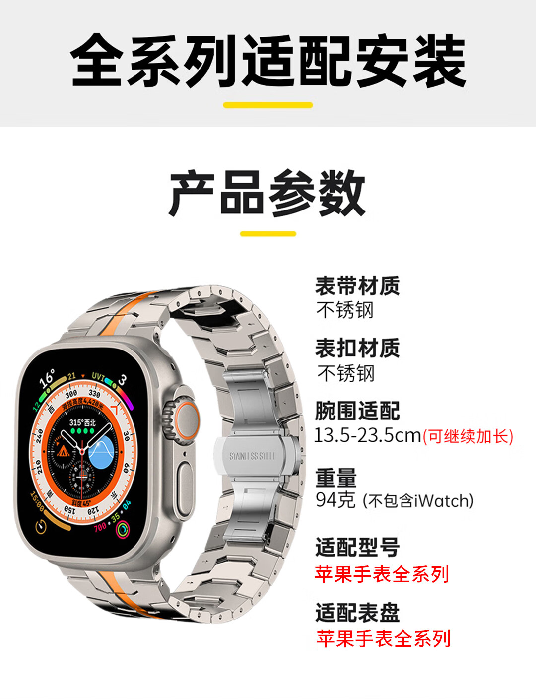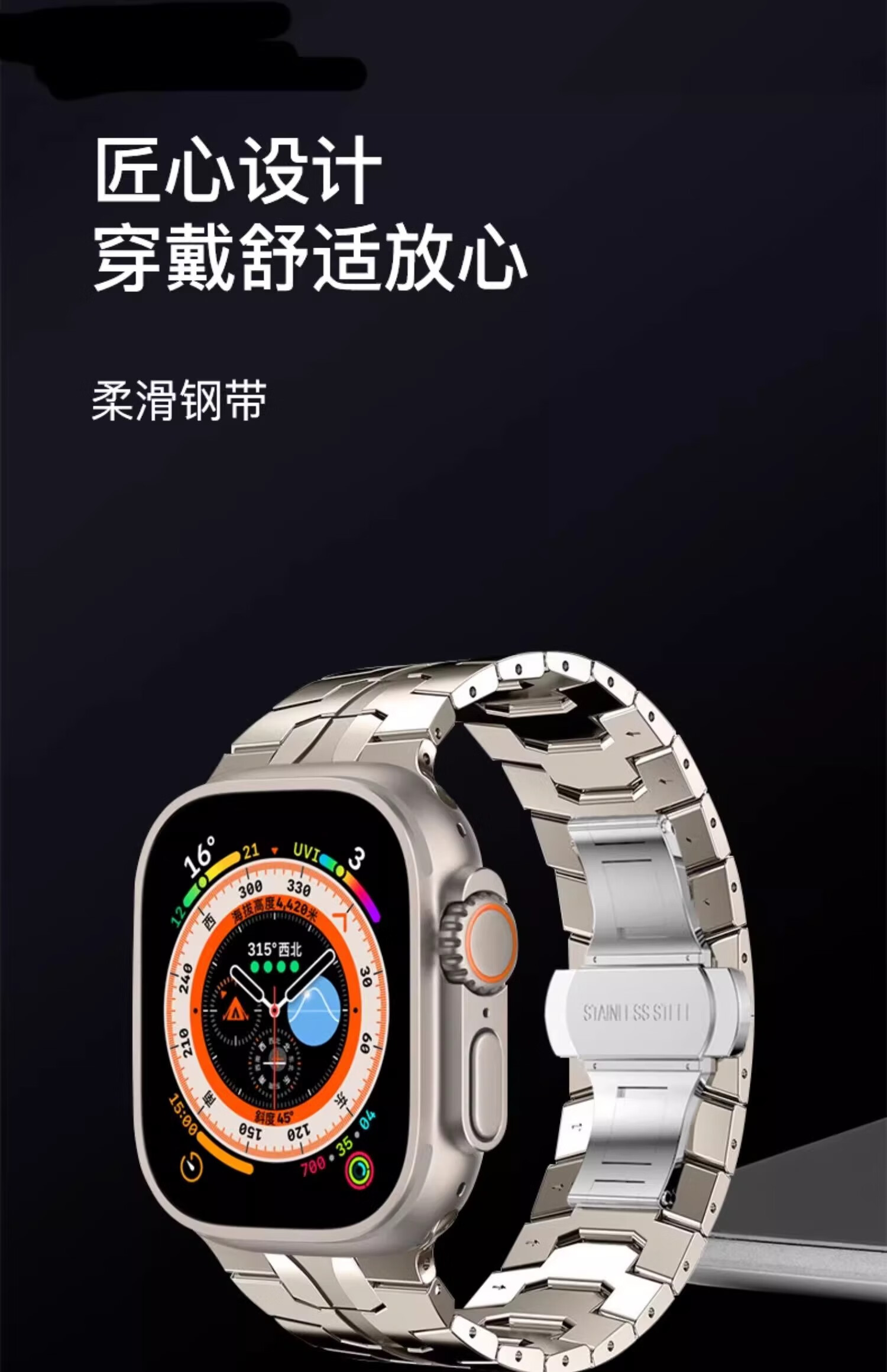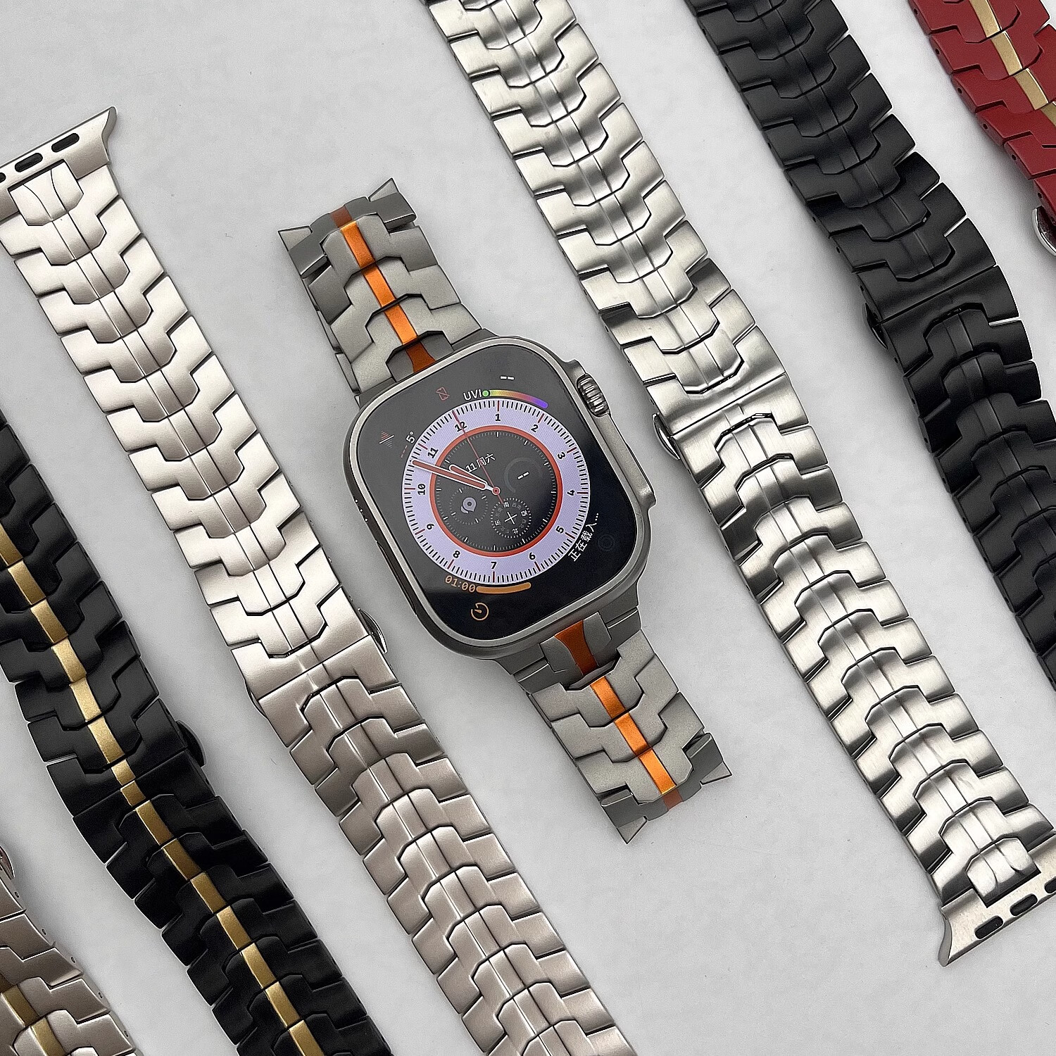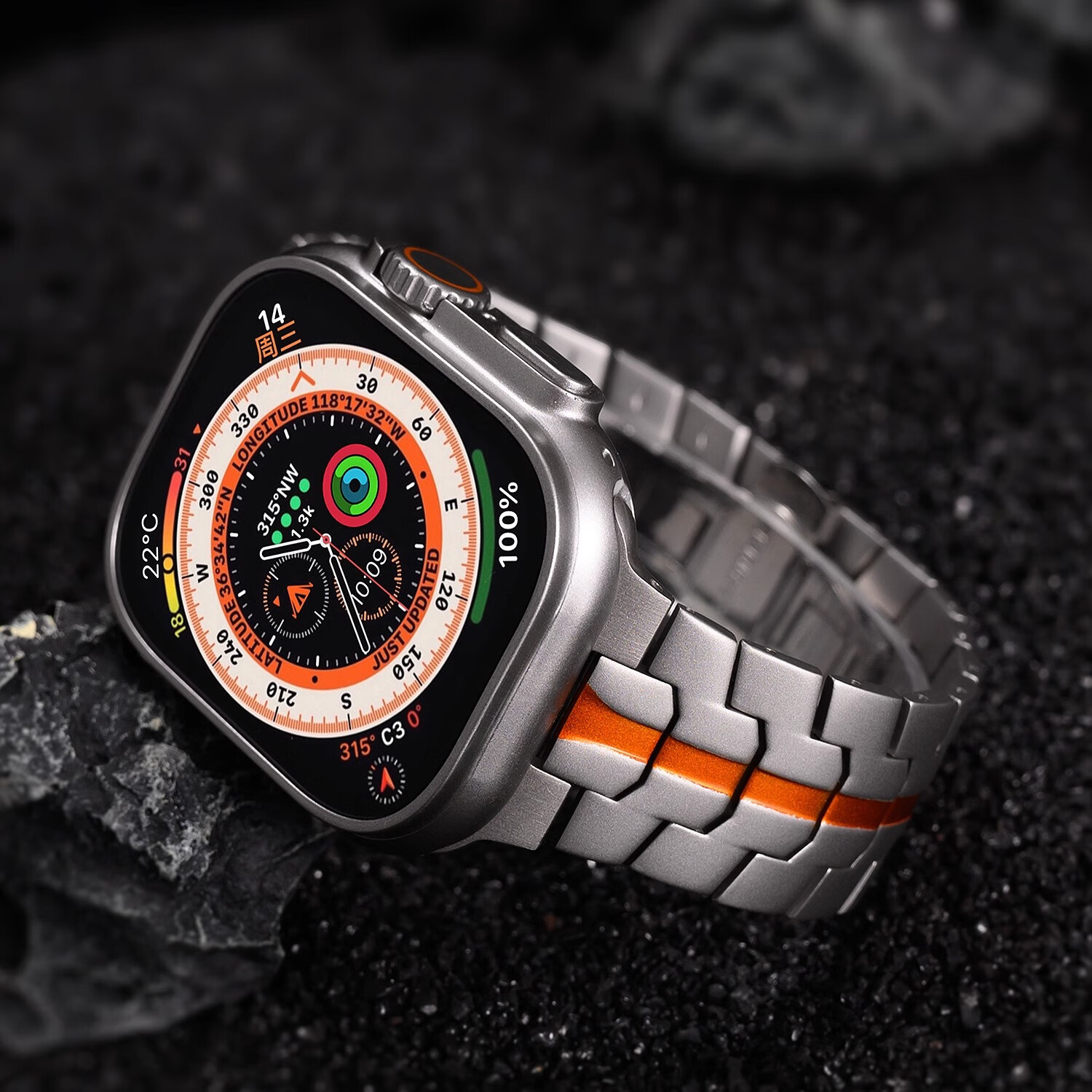 君自名适用AppleWatchUltra3表带AppleWatch金属Ultra2苹果iWatchUltra手表带iWatchS10/AppleWatchS/S11 双保险扣【钛橙色】钢带 iWatch Ultra 3/2/1【49mm】