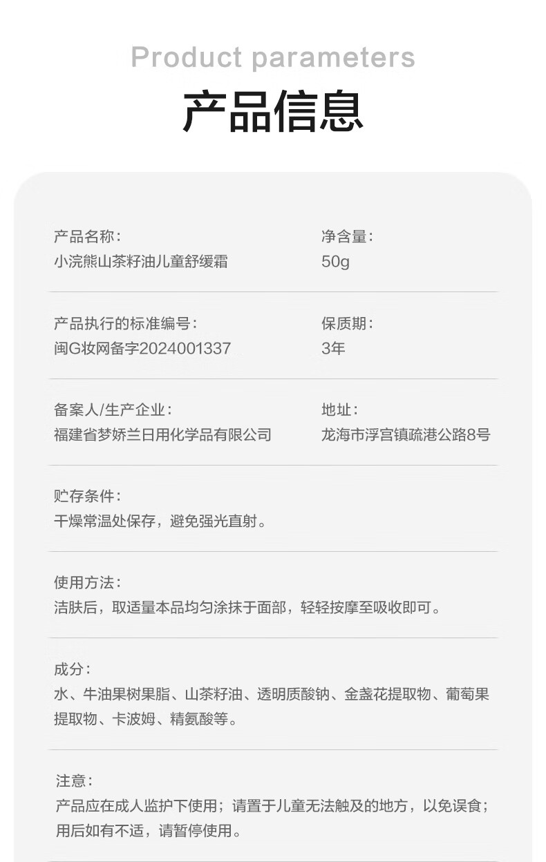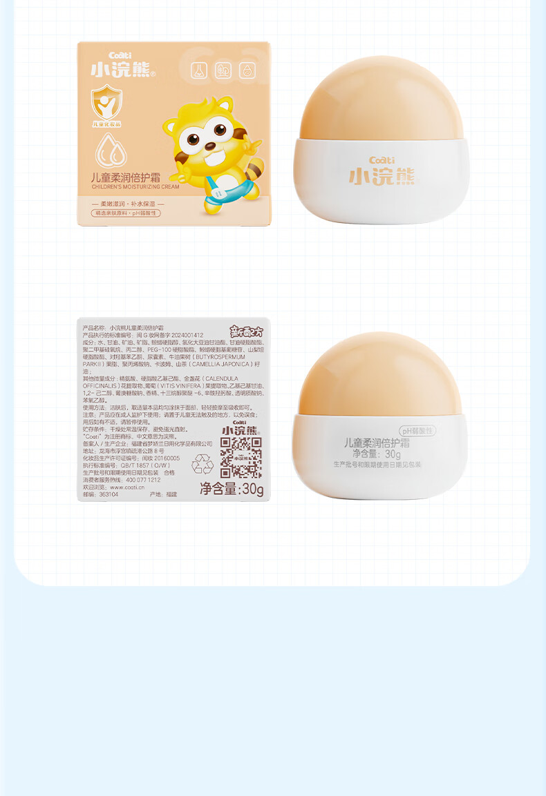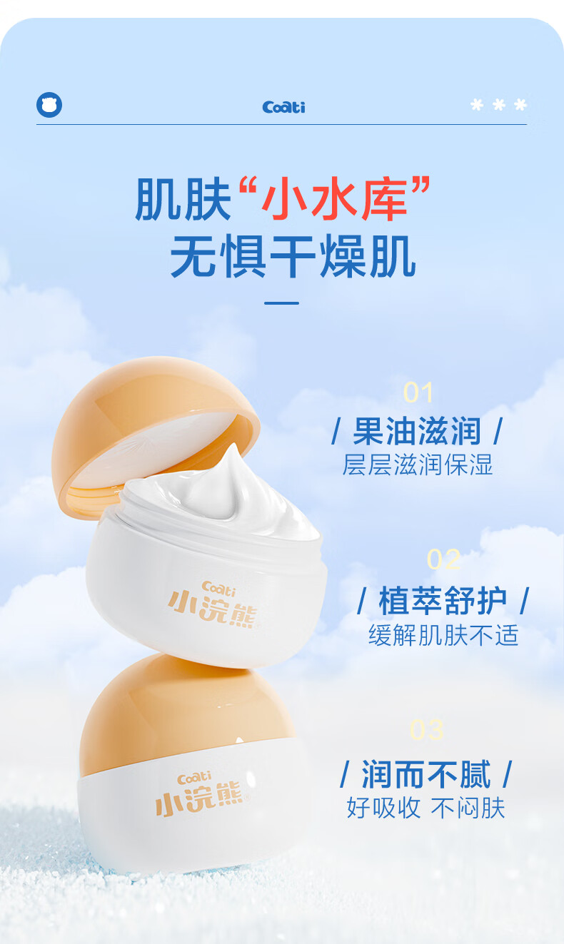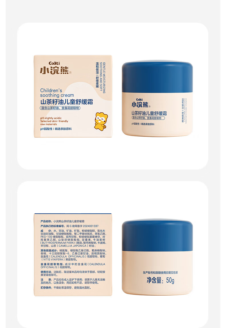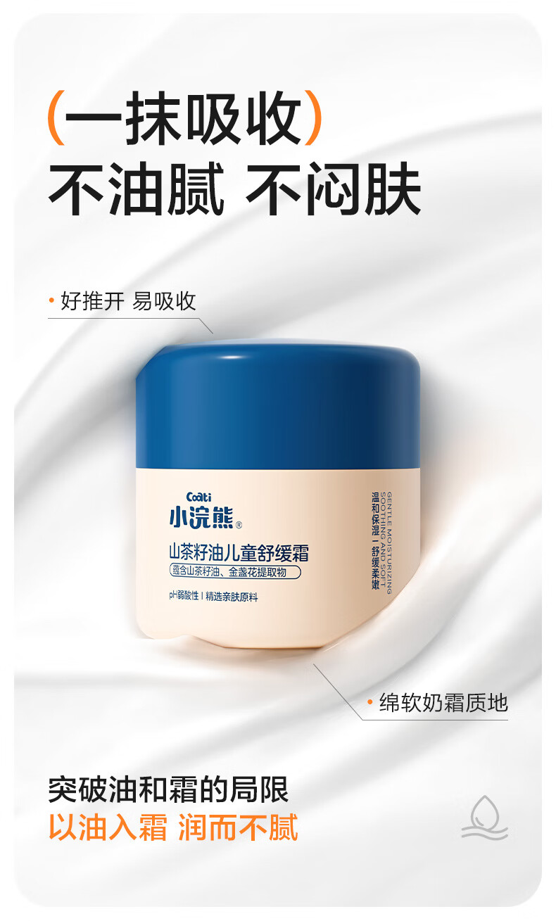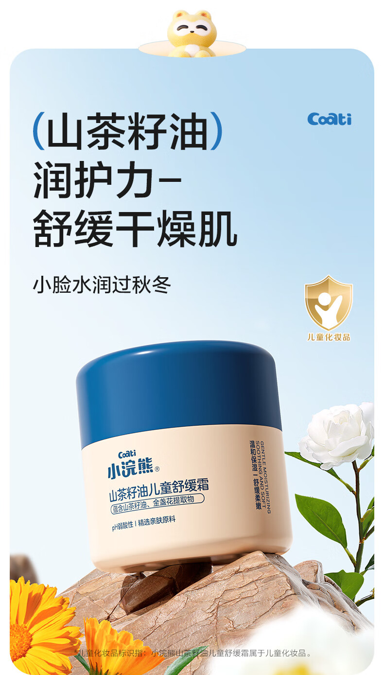 小浣熊儿童柔润倍护霜婴儿水嫩保湿霜宝宝润肤霜 【2瓶】山茶籽油儿童舒缓霜50g