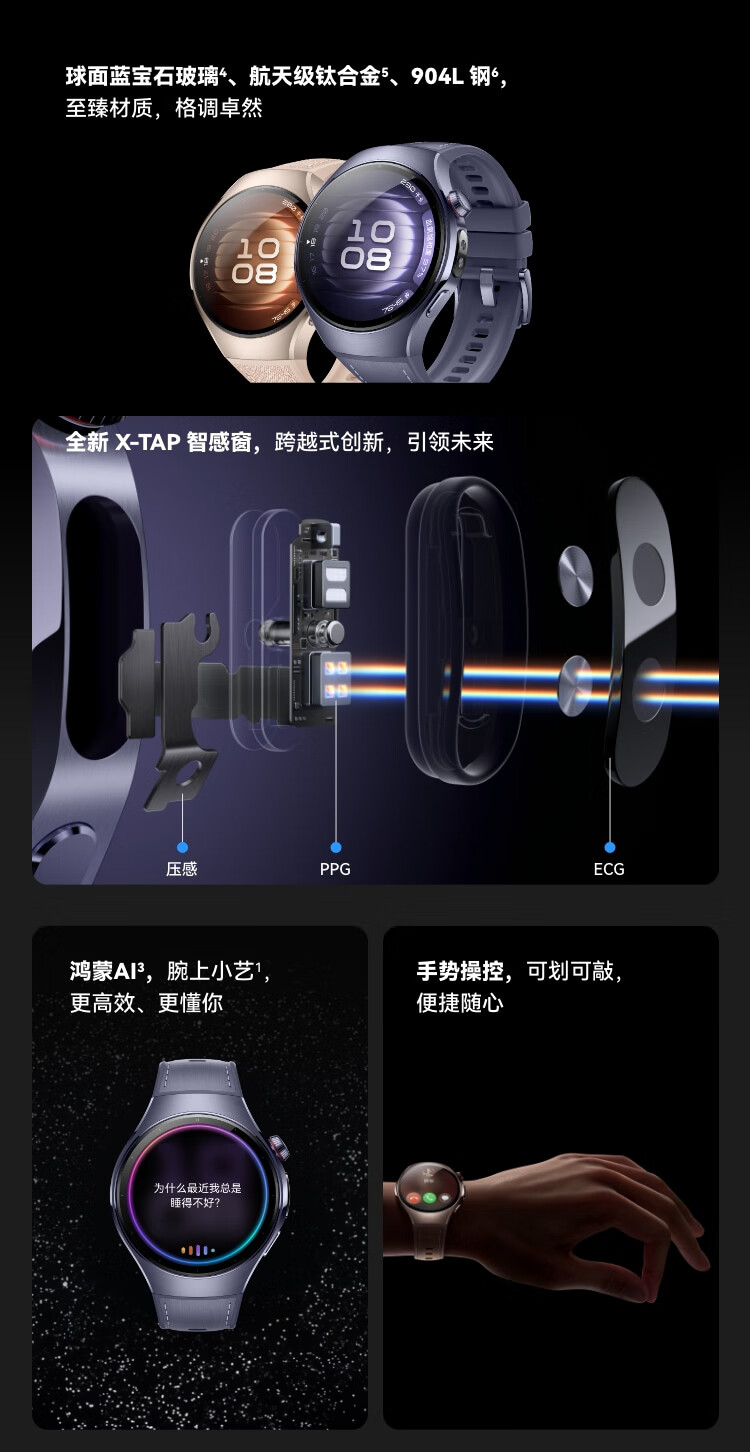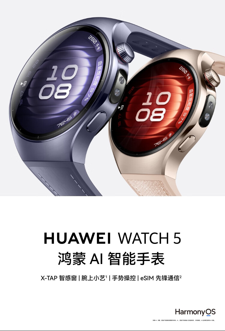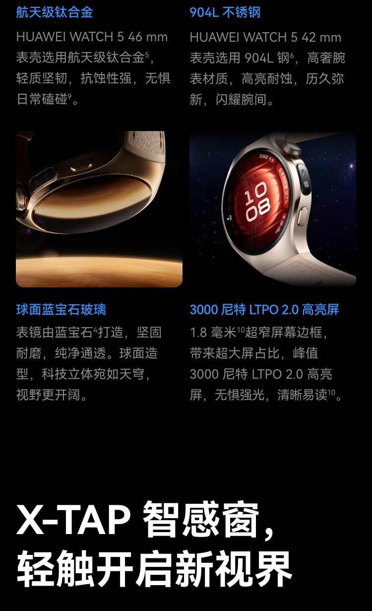 华为 【送礼送健康】HUAWEI WATCH 5 46mm基础款深锖色不锈钢表壳苍穹黑首创X-TAP智感窗eSIM通信手表