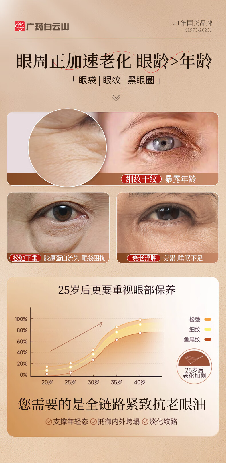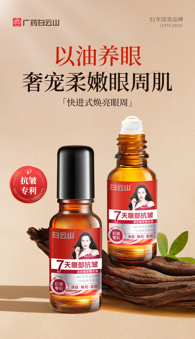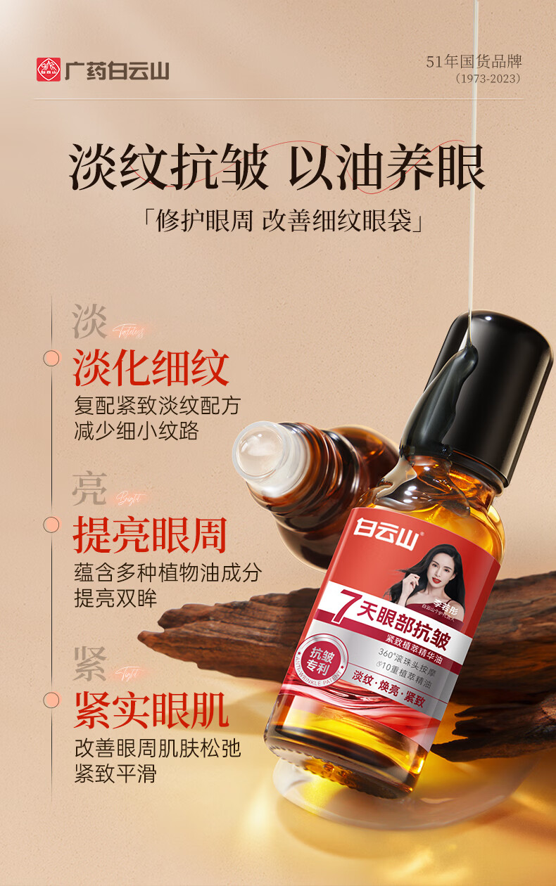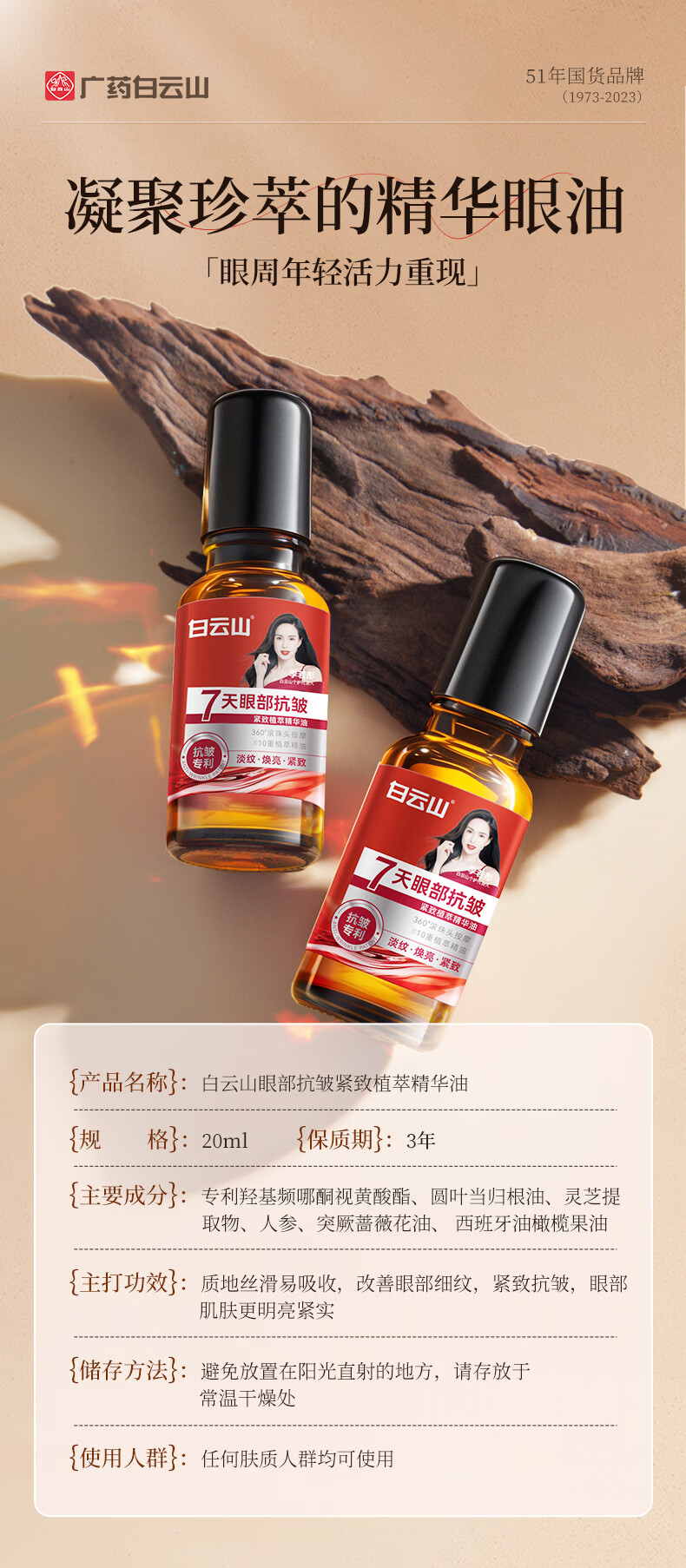 白云山眼部抗皱植萃精华油紧致淡化细纹眼袋黑眼圈补水保湿两瓶装40ml