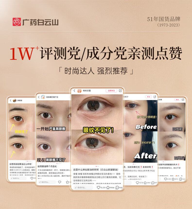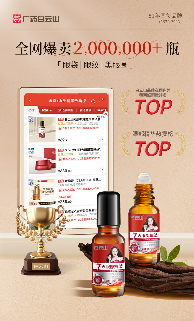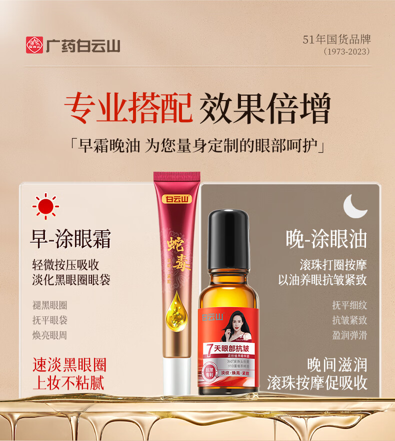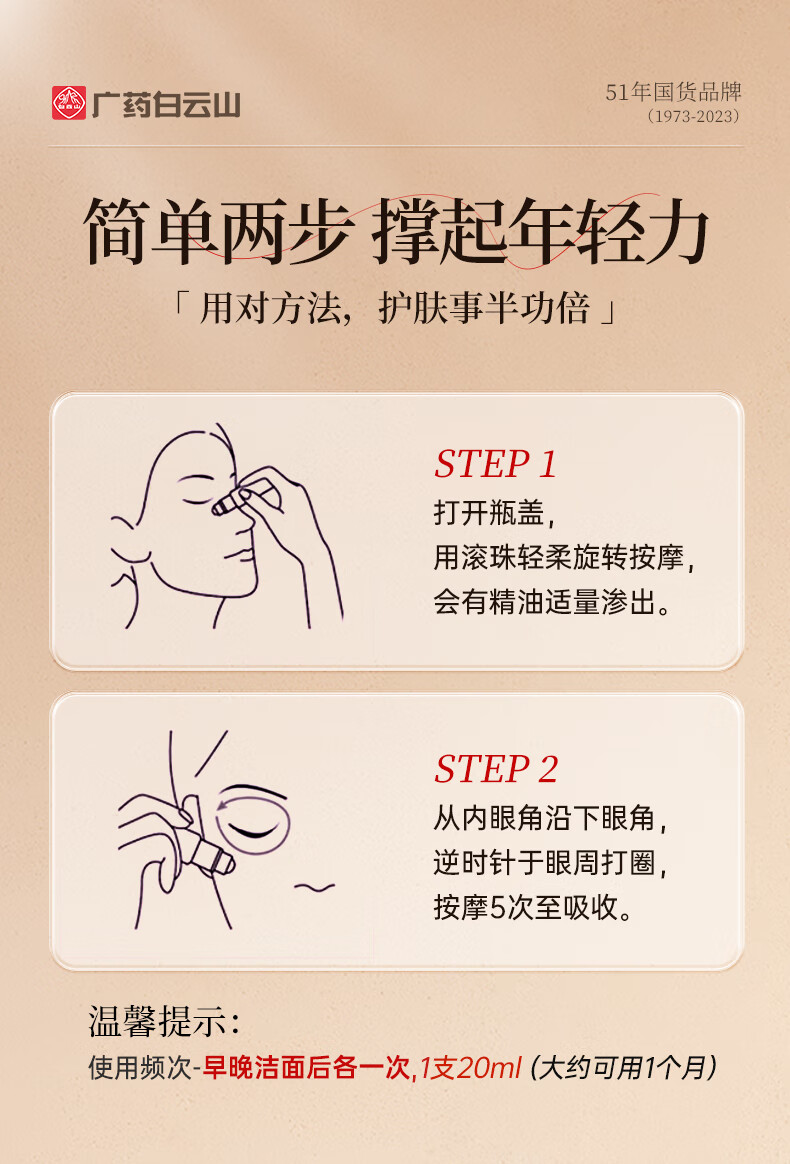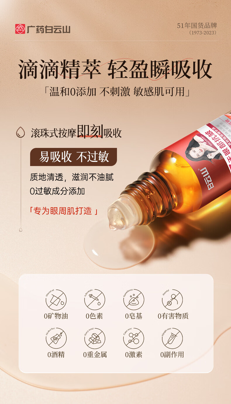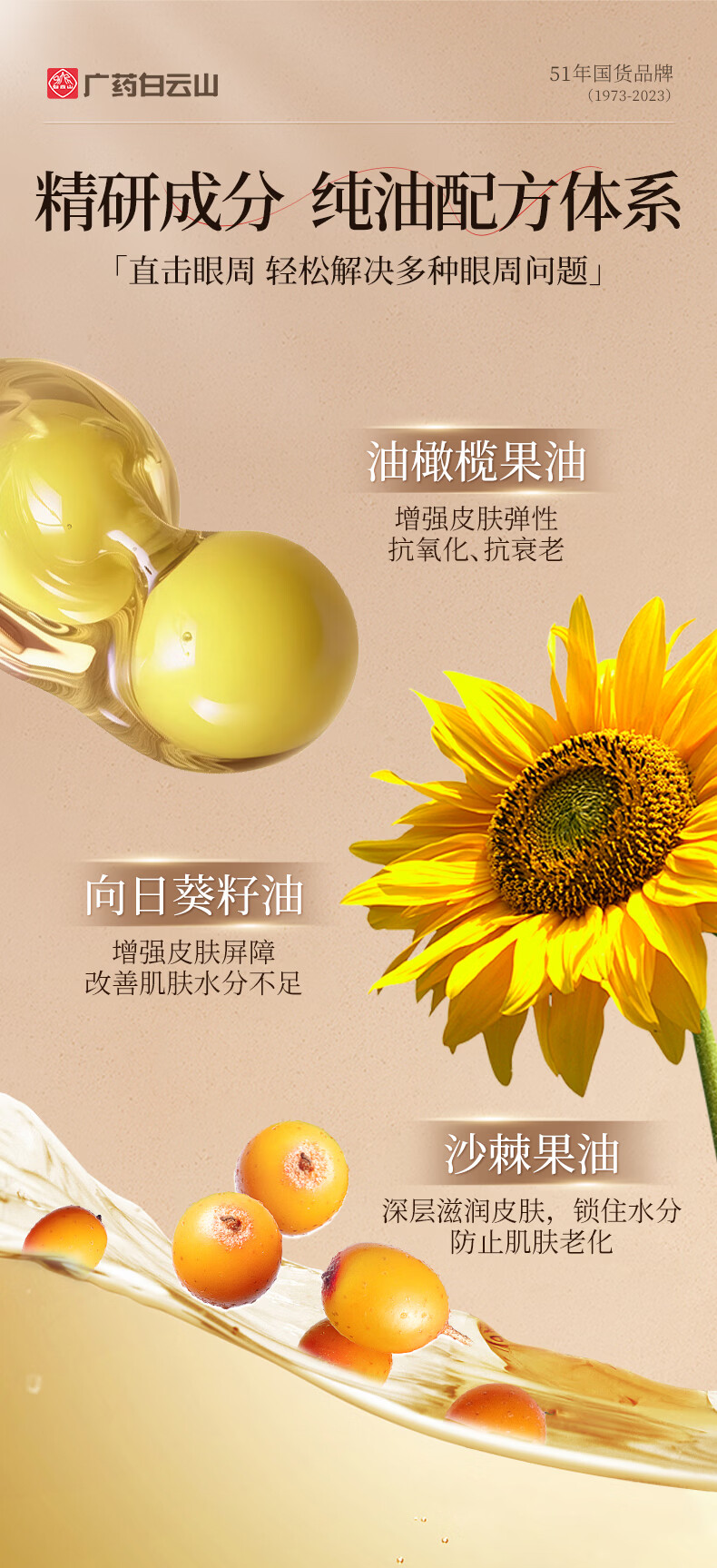 白云山眼部抗皱植萃精华油紧致淡化细纹眼袋黑眼圈补水保湿两瓶装40ml
