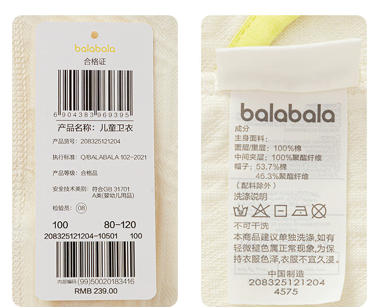 巴拉巴拉balaOne宝宝连帽卫衣男童女童秋装2025户外上衣宽松208325121204