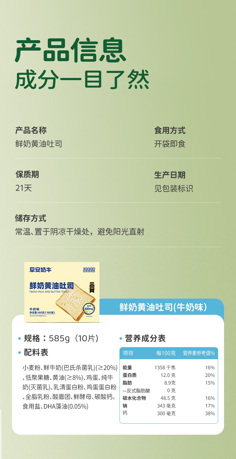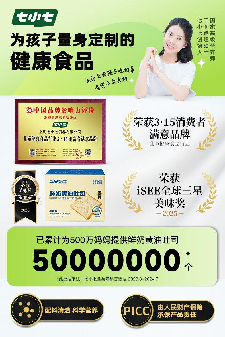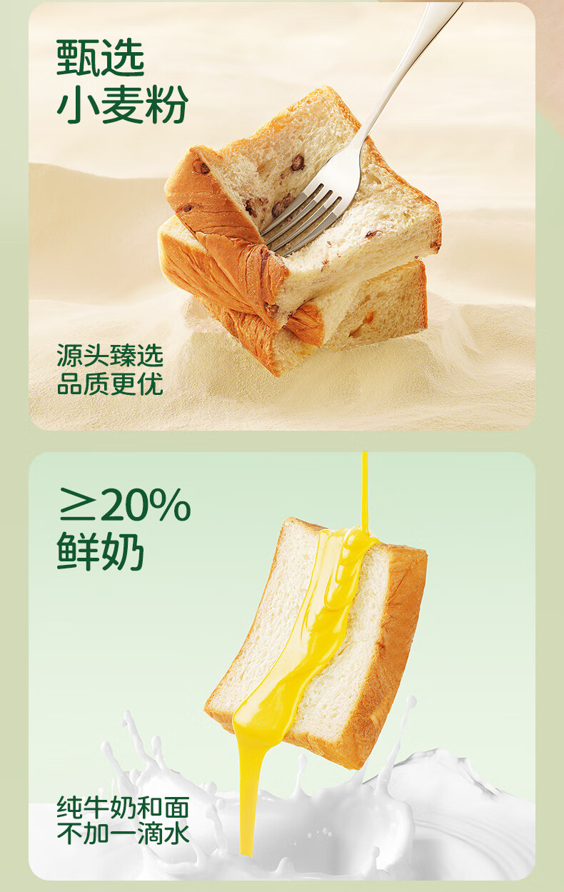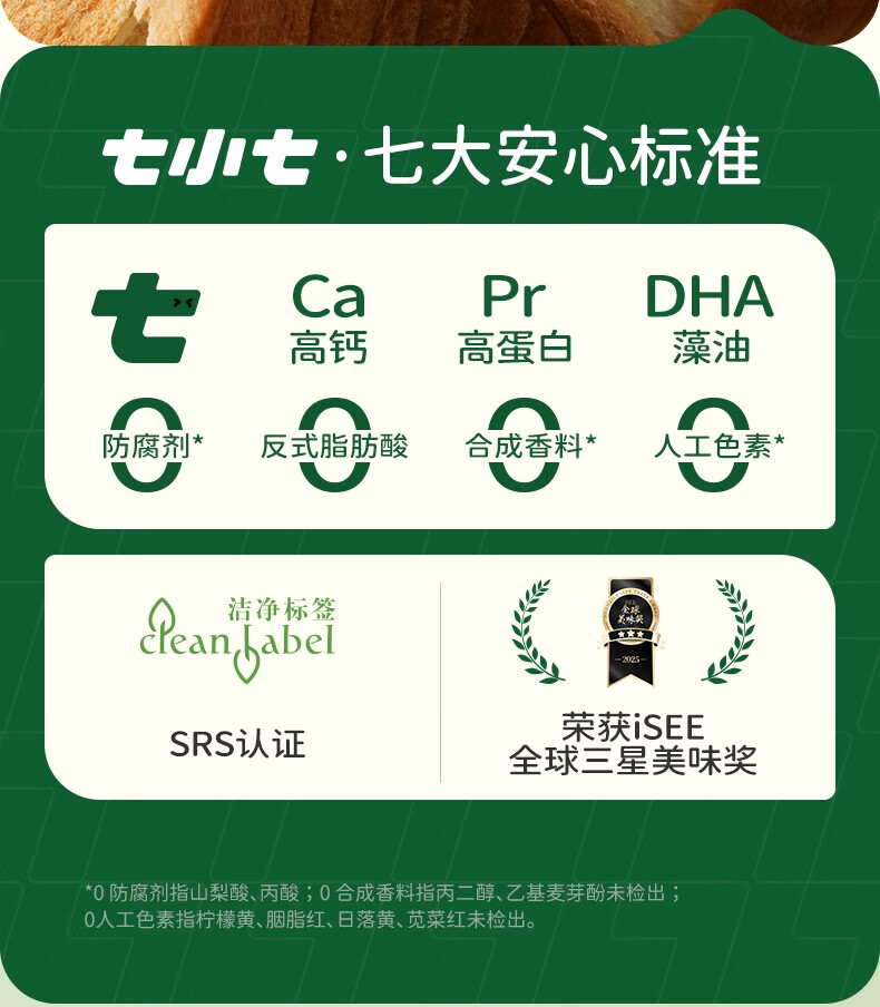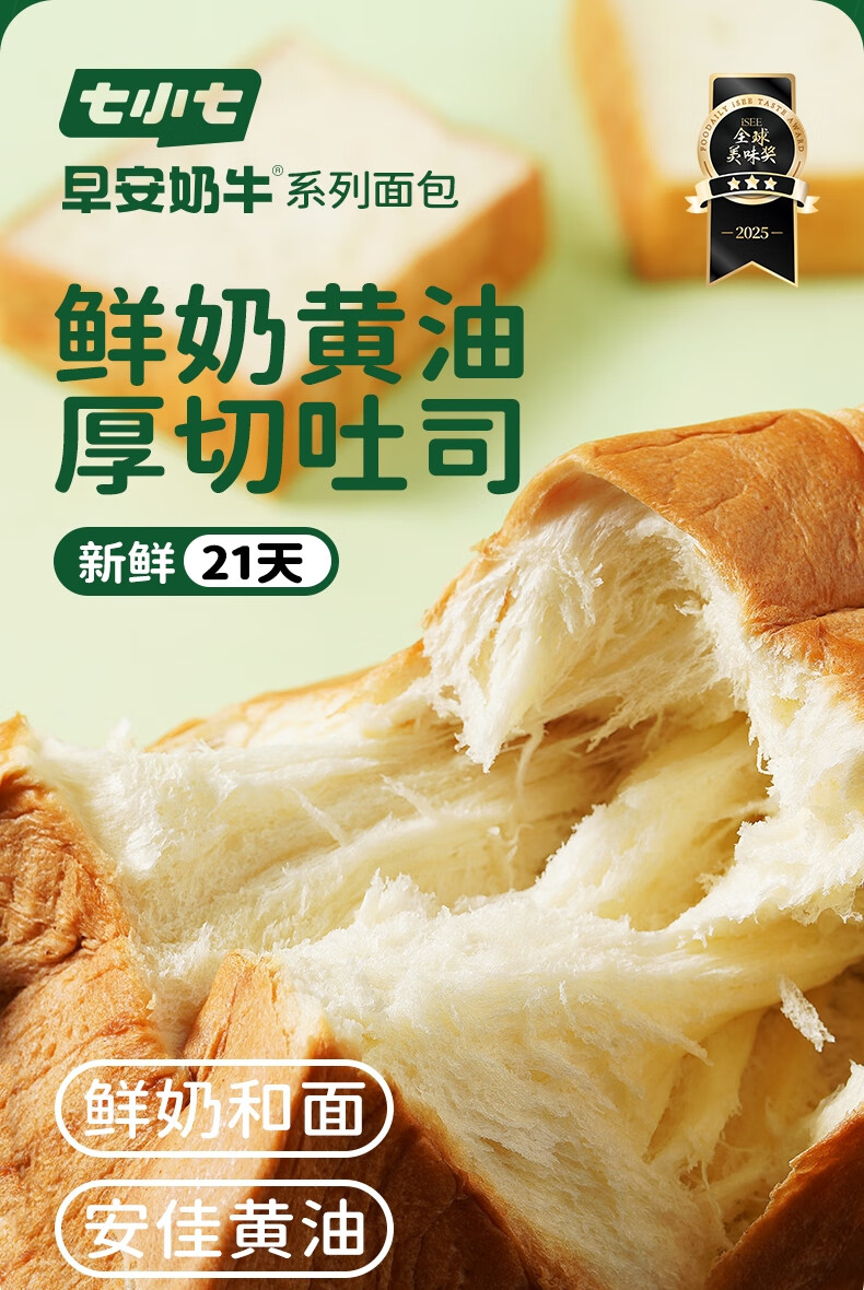 七小七鲜奶黄油厚切吐司儿童早餐面包10片585g 宝宝零食 源头直发