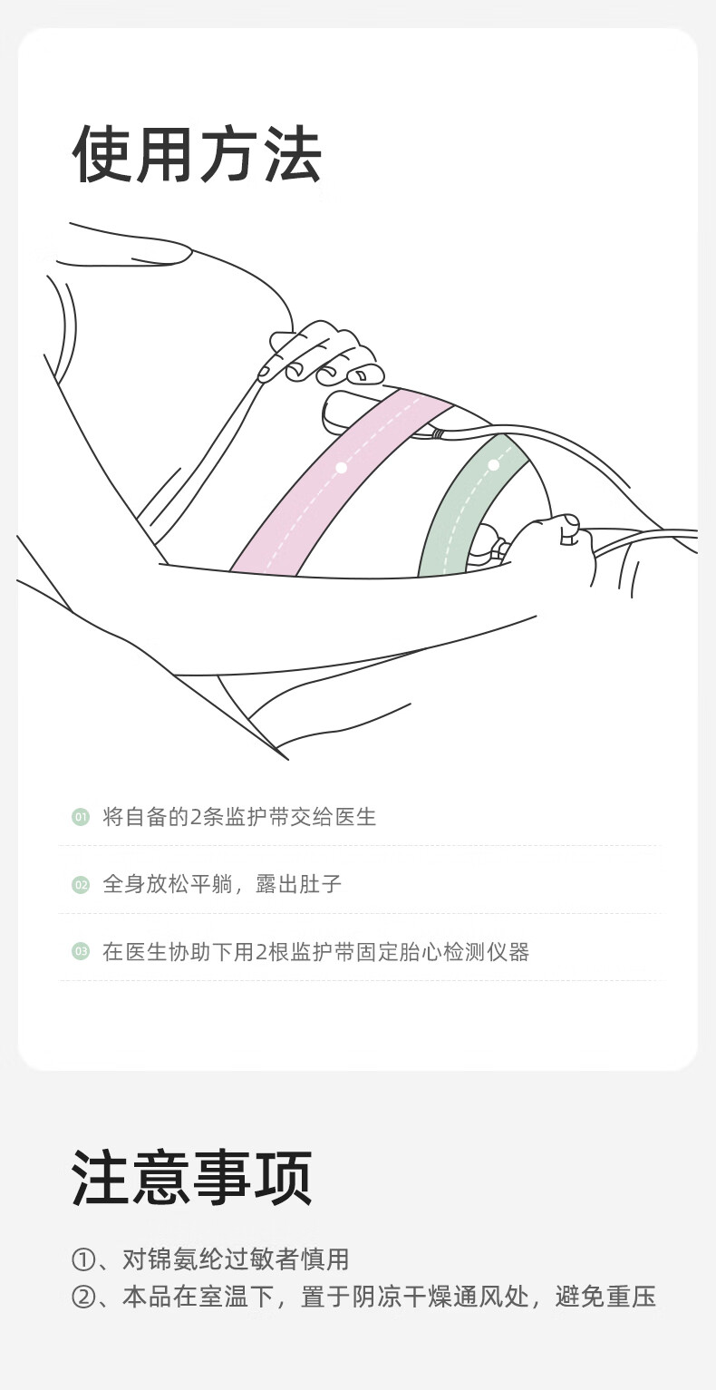 十月结晶 胎心监护带 孕妇监测带绑带弹力加长2条装 粉色