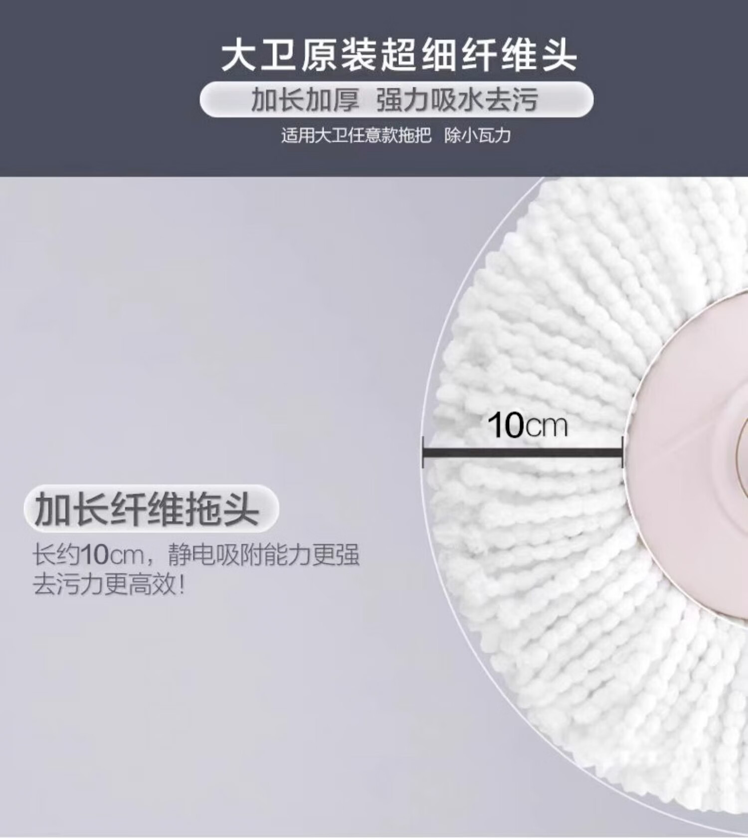 大卫旋转拖把头细细拖系列拓朴拖把配件单个装