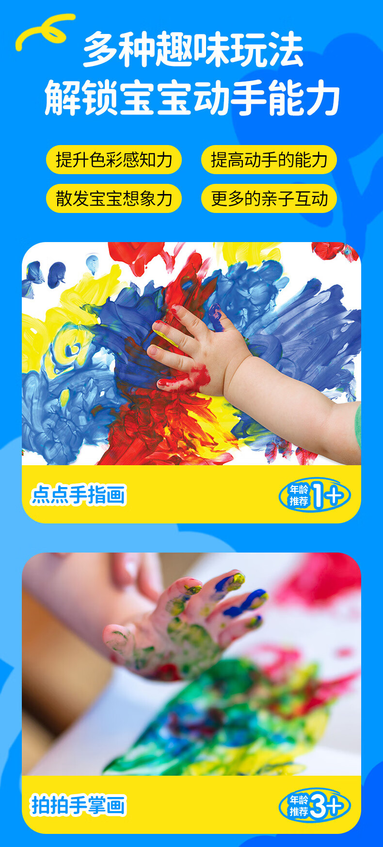 绘儿乐儿童AP安全认证无毒手指画颜料手搓颜料经典3瓶套装 红黄蓝3瓶装手指画颜料(147ml*3)