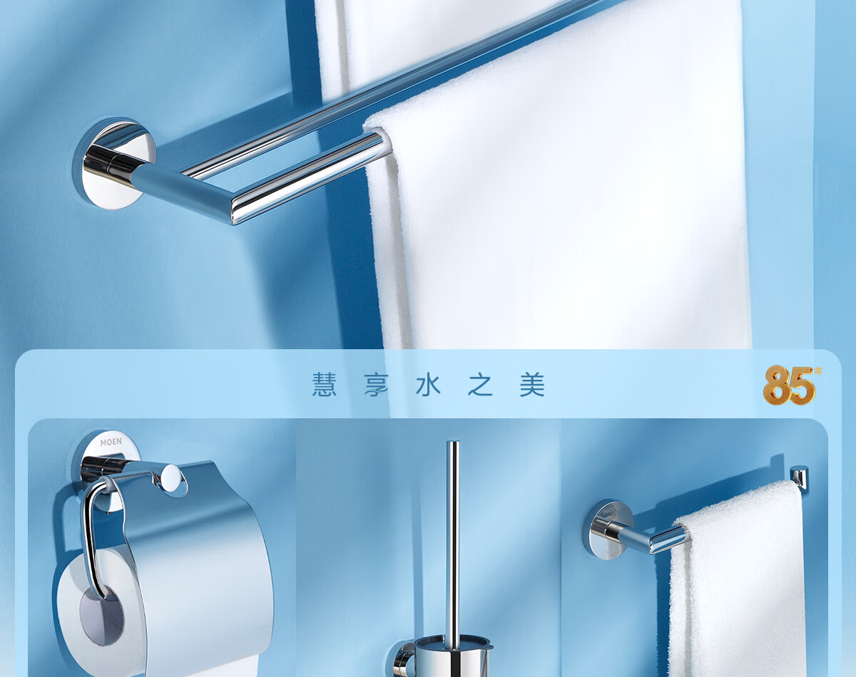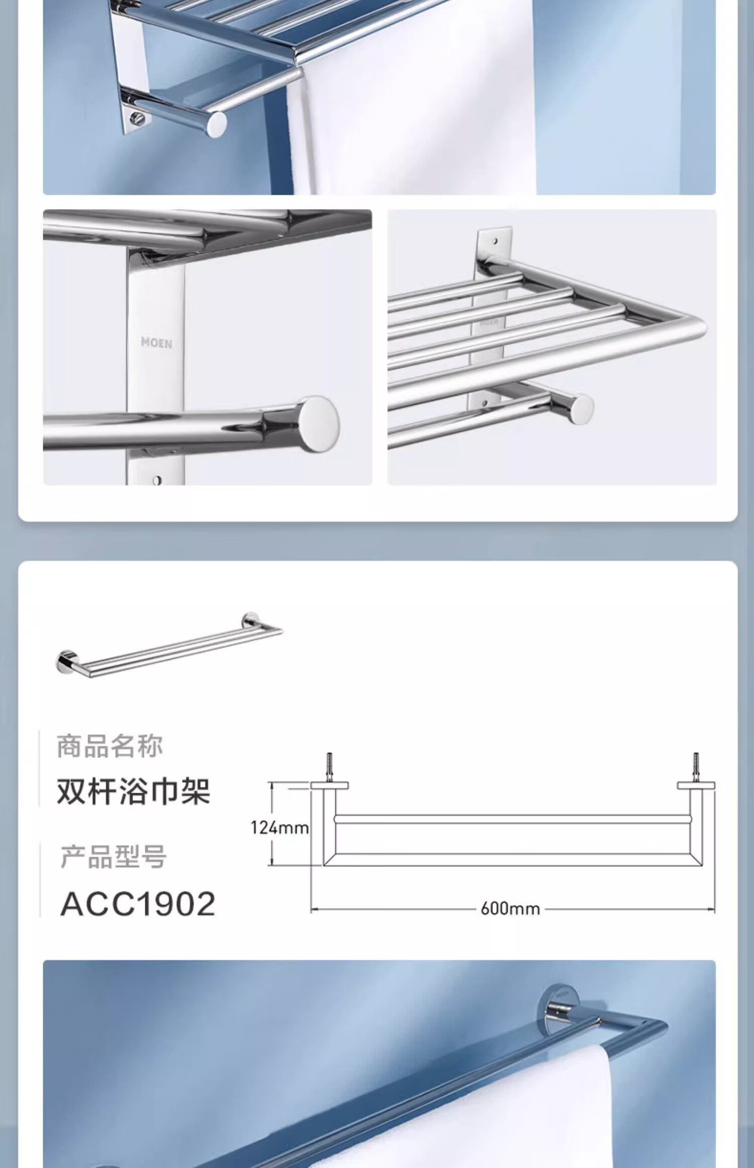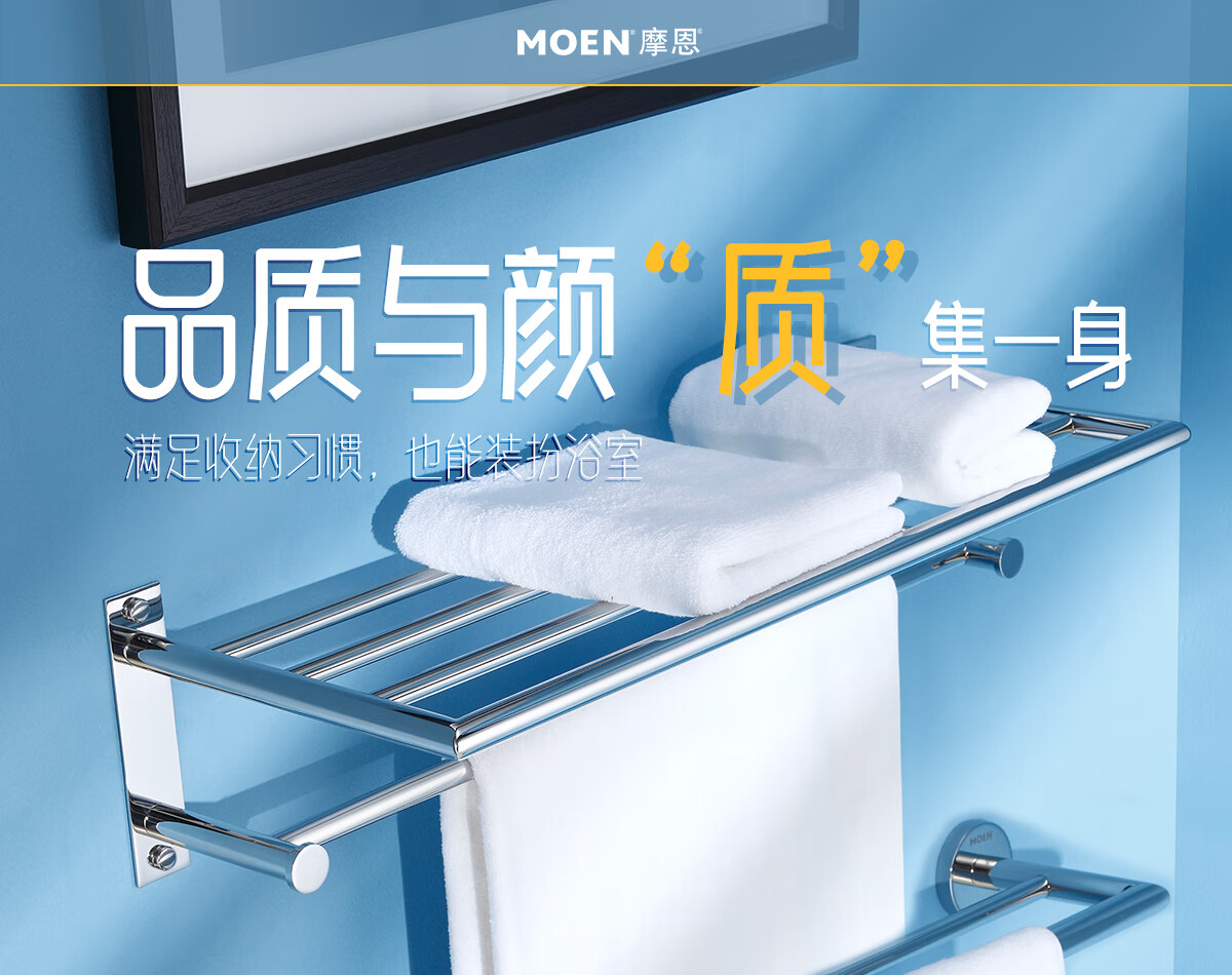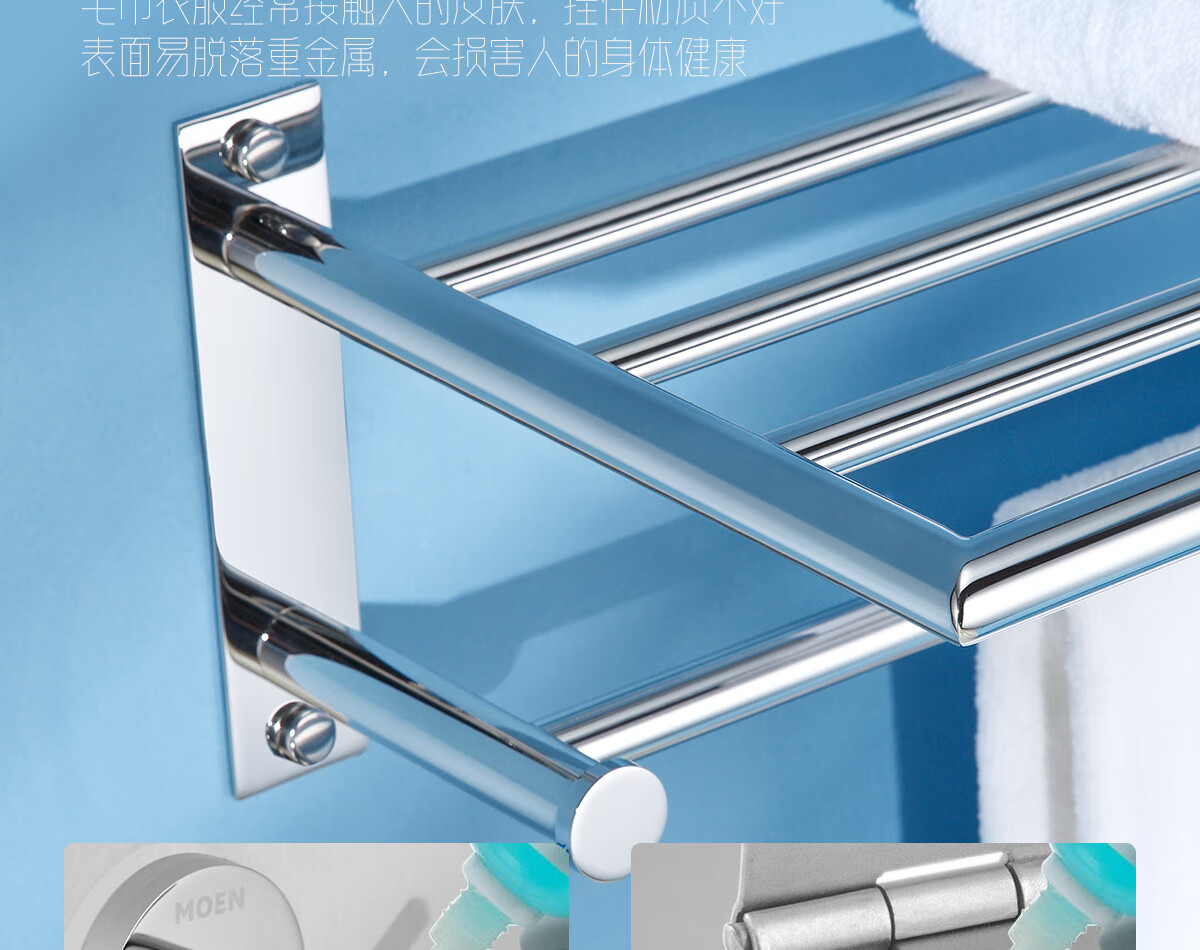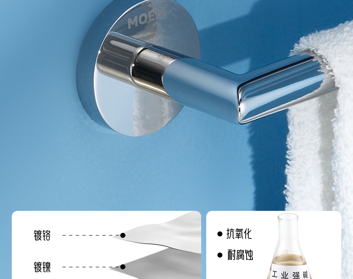 摩恩(MOEN)卫生间不锈钢浴巾架浴室毛巾架置物架卫浴挂件套装1901A 双杆毛巾杆(免钉)
