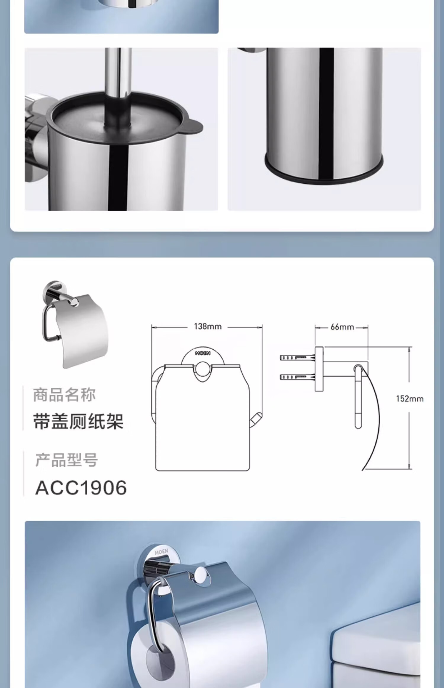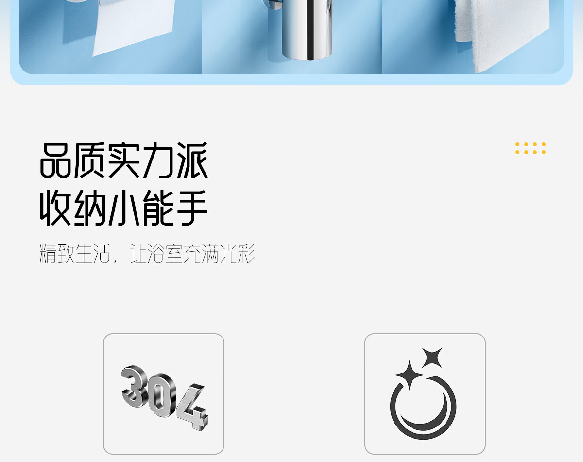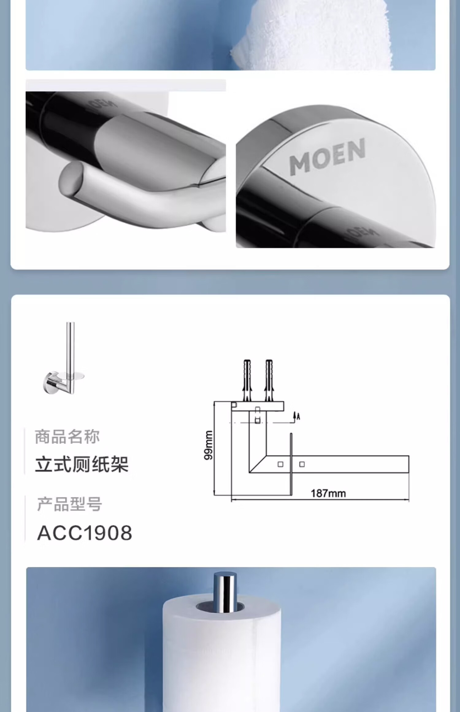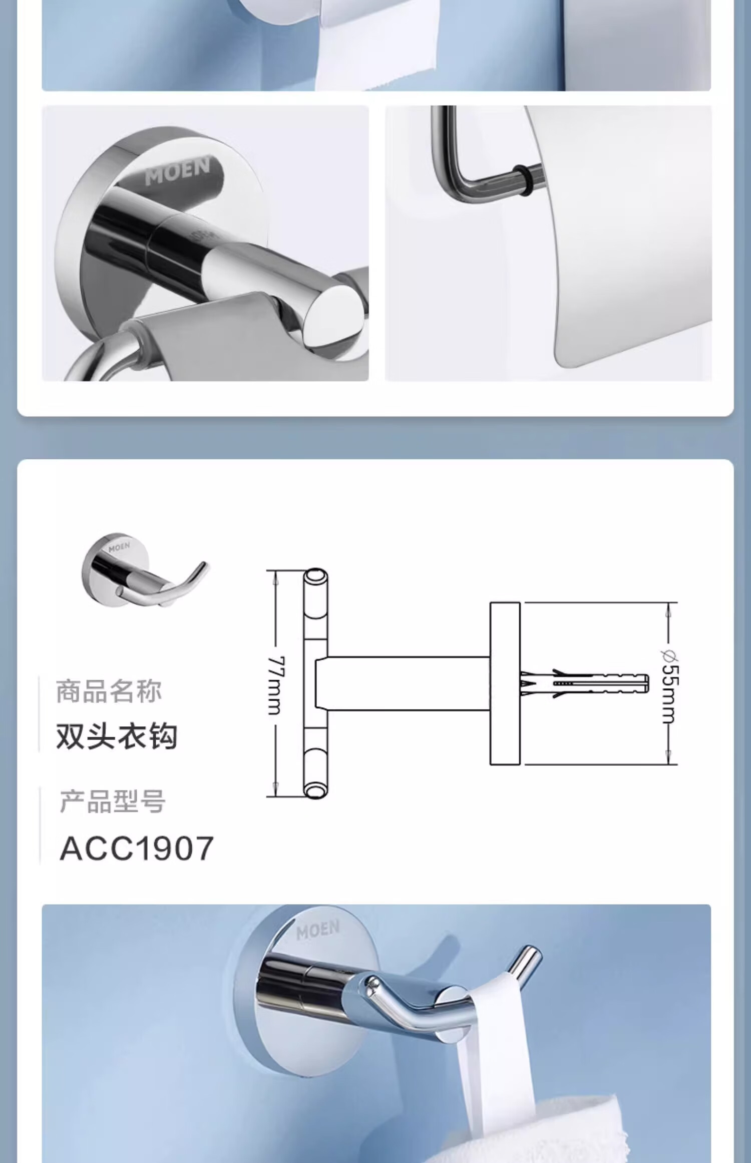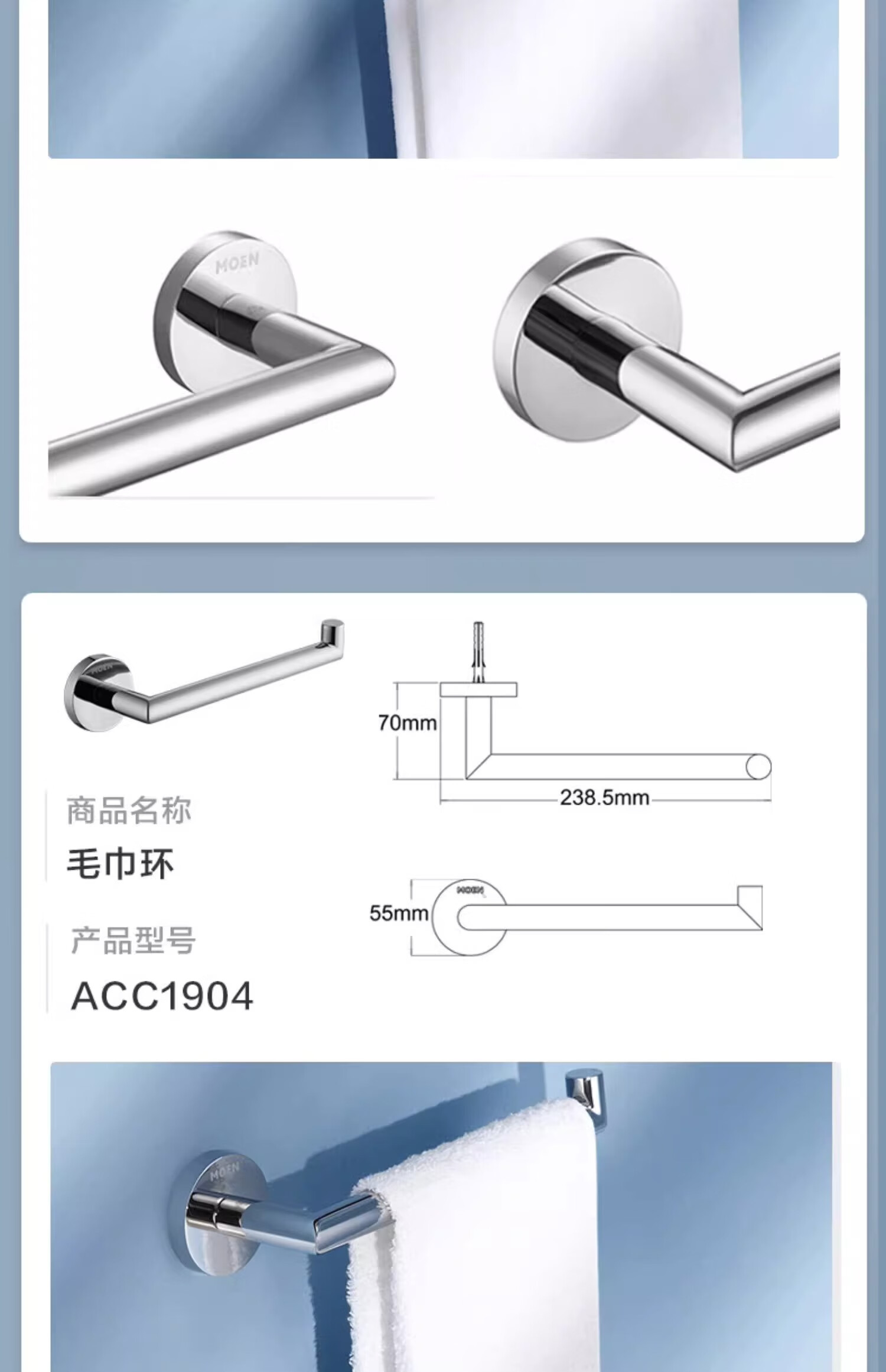 摩恩(MOEN)卫生间不锈钢浴巾架浴室毛巾架置物架卫浴挂件套装1901A 双杆毛巾杆(免钉)