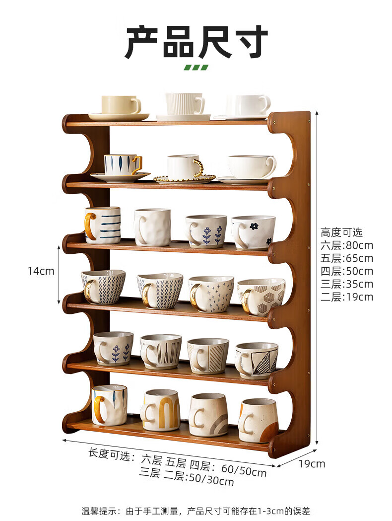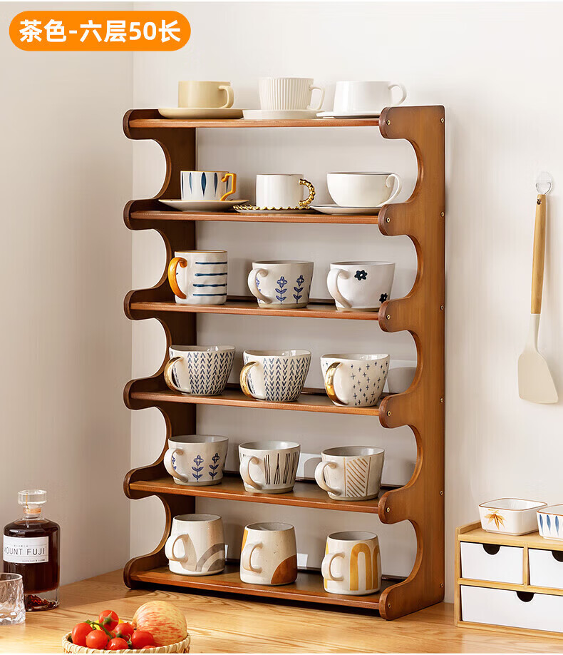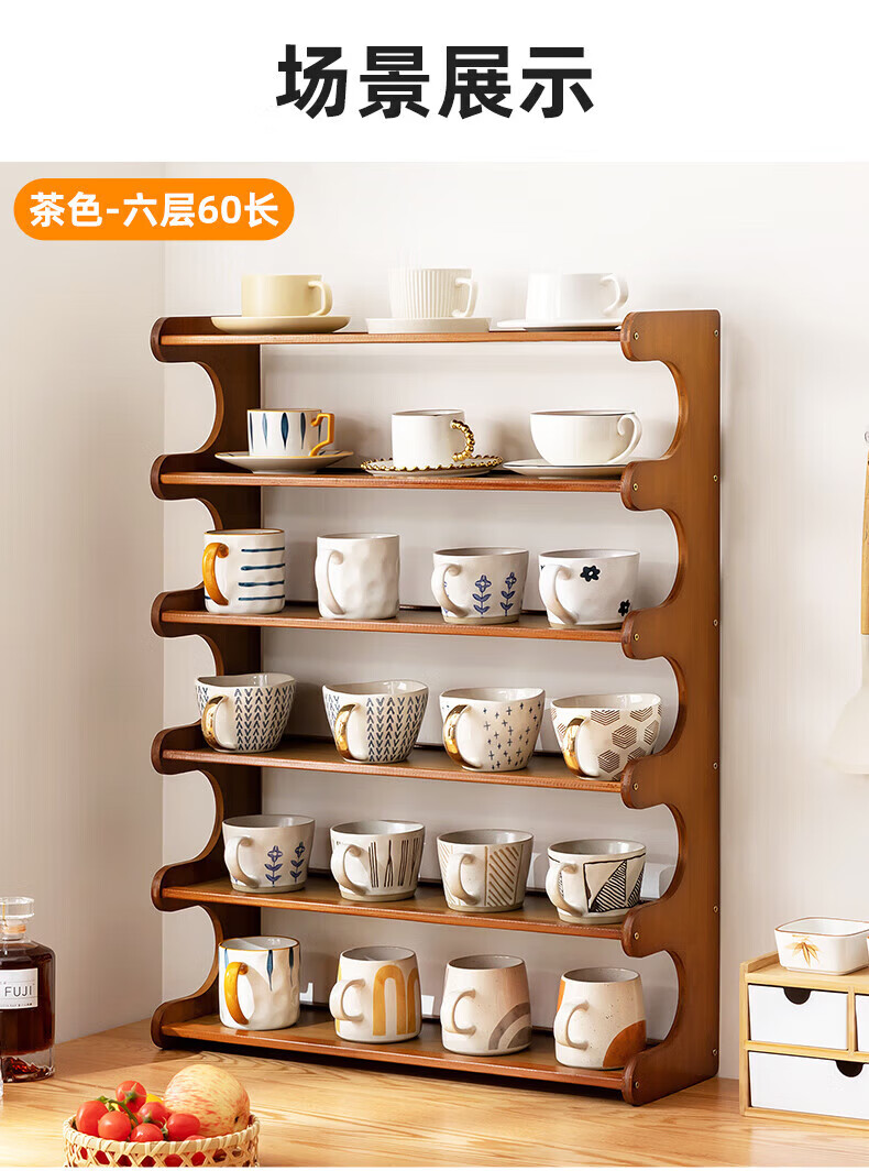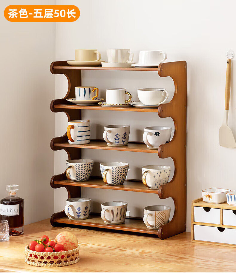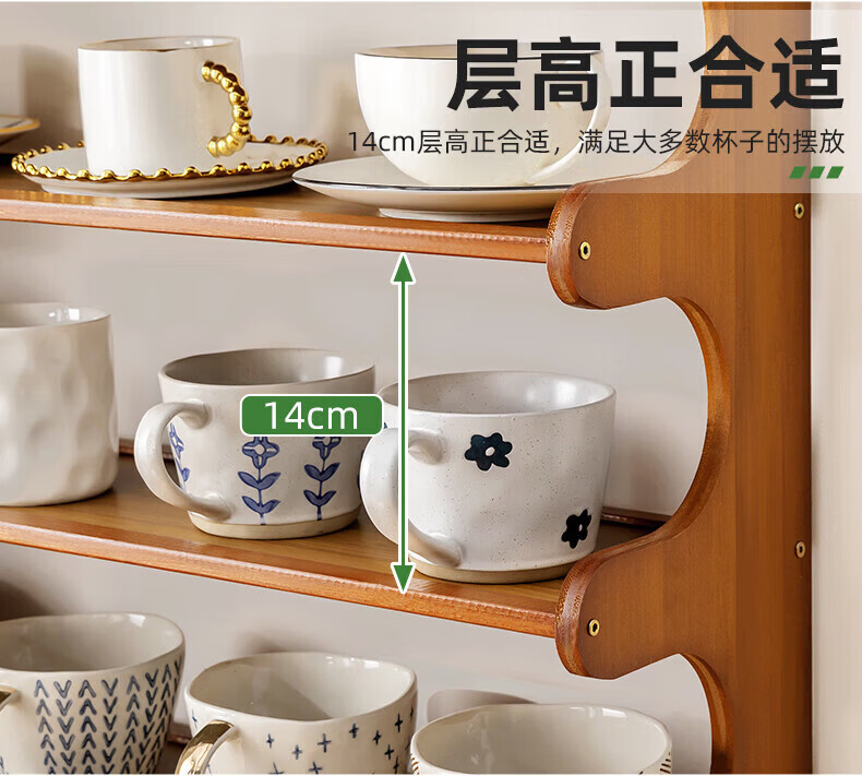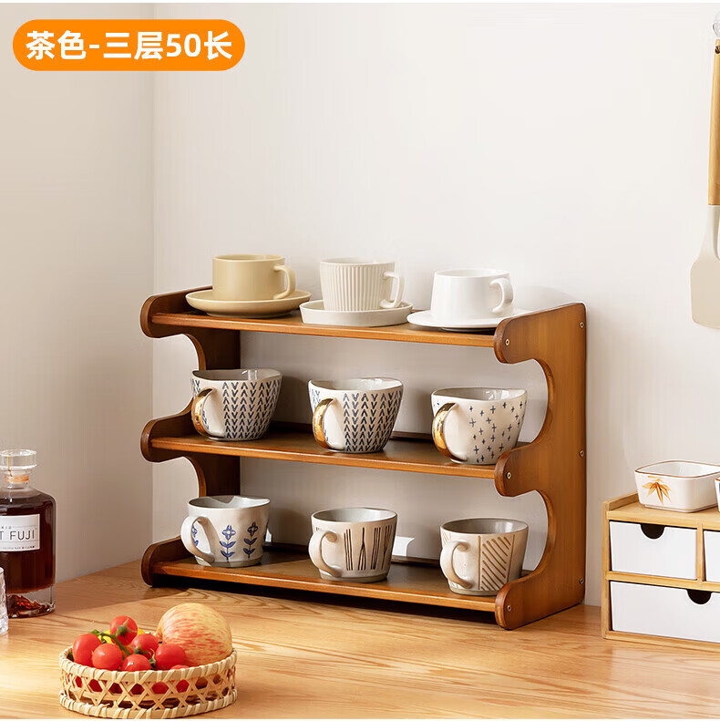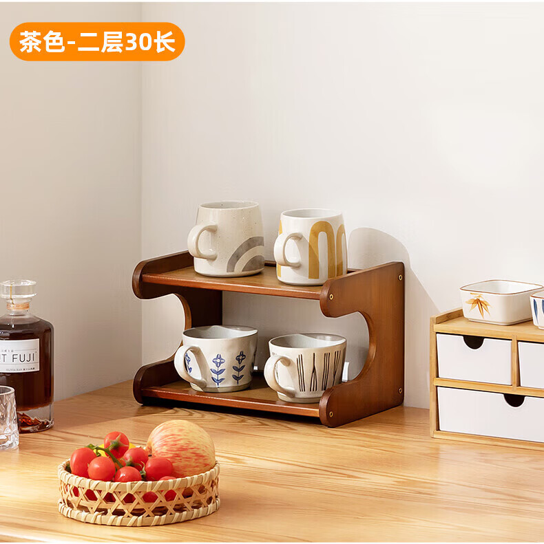 馨婺家杯架台面收纳盒家用杯子置物架桌上玻璃水杯放茶杯茶具咖啡杯多层 茶色-2层30cm【升级加厚】19宽