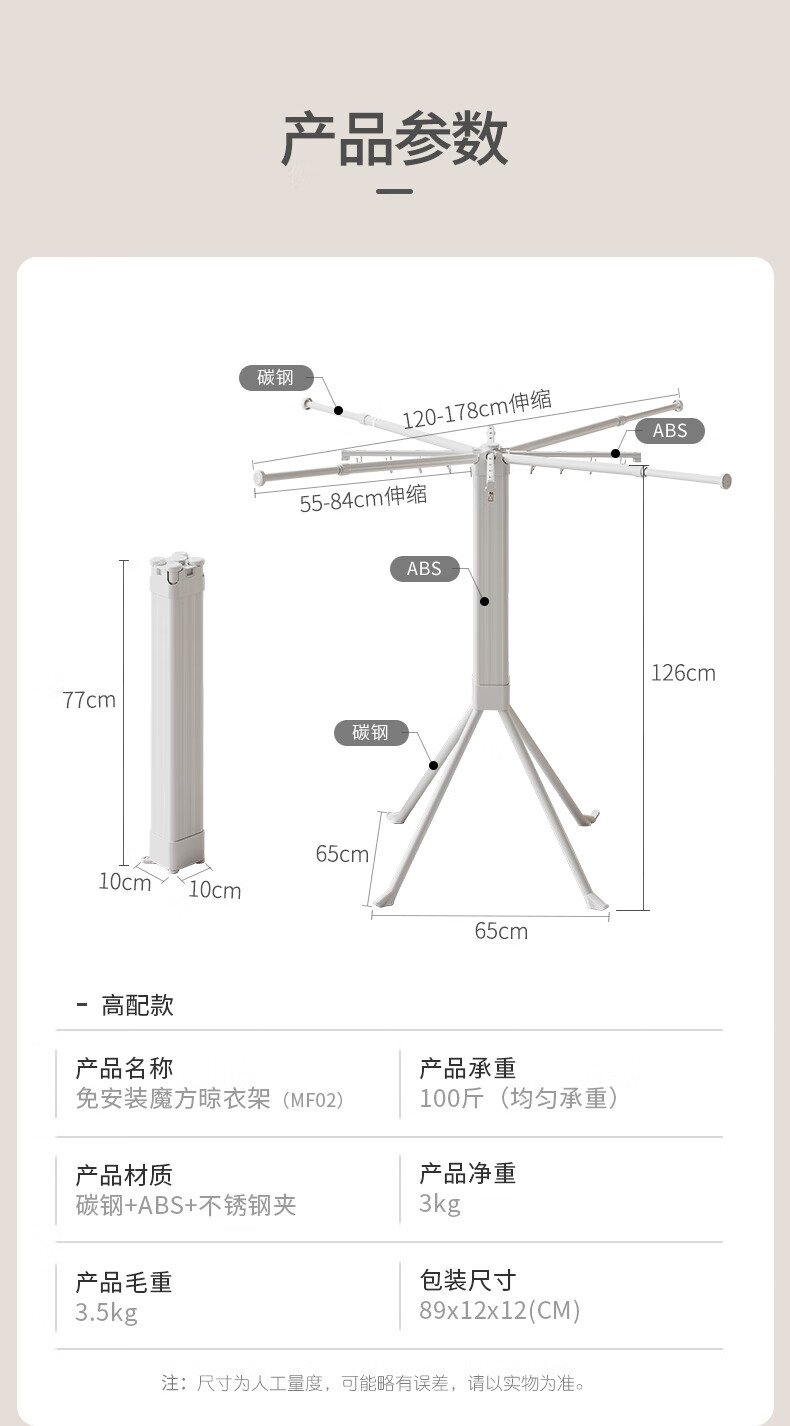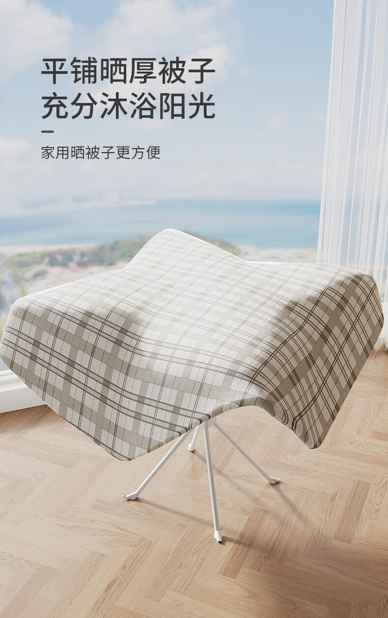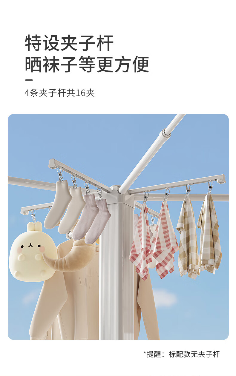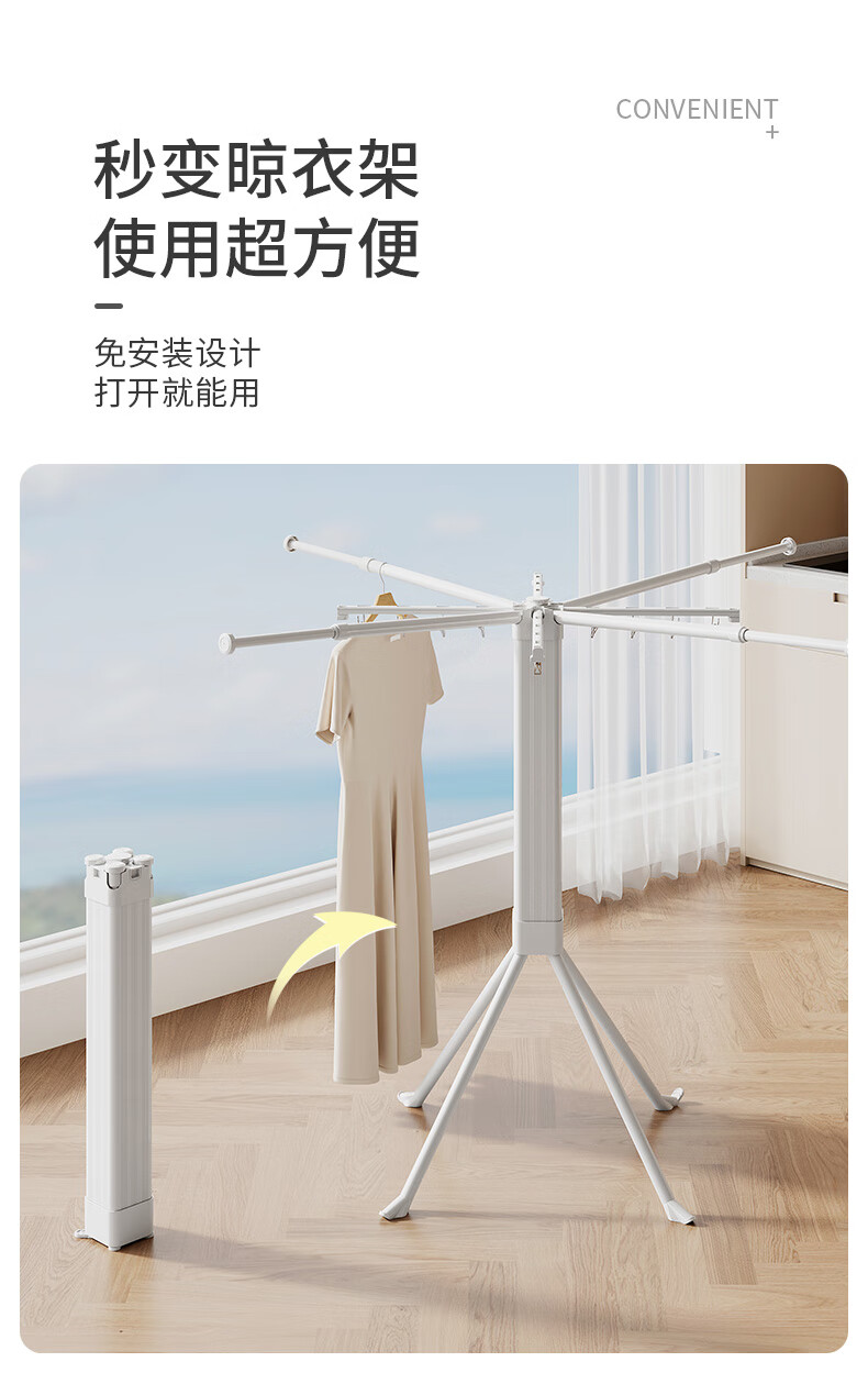 吱凡日本折叠晾衣架室内阳台家用落地隐形伸缩凉衣杆小型多功能晒被子 【标配版】茉莉白-太空铝4杆