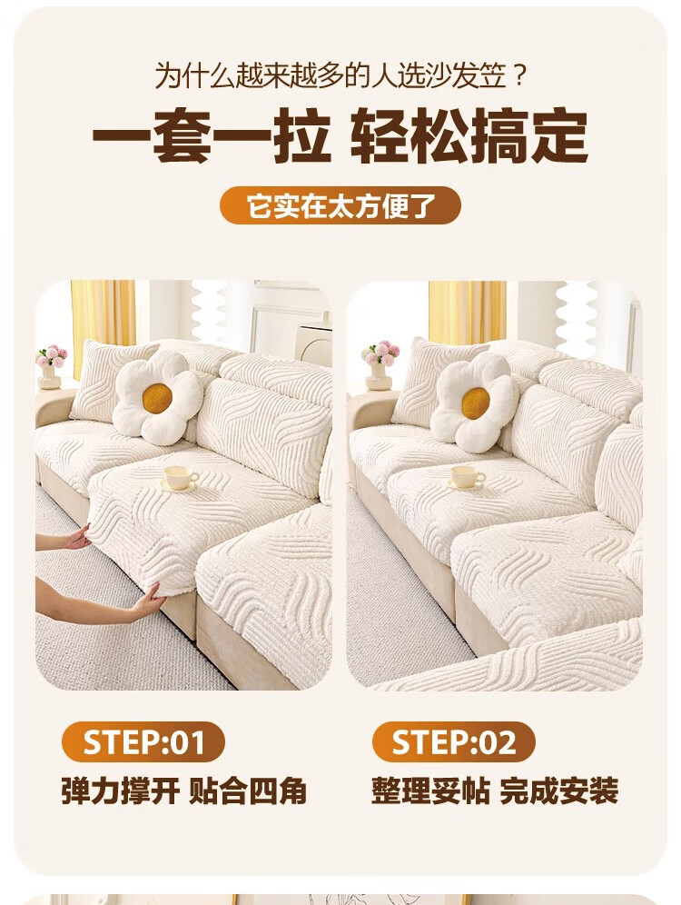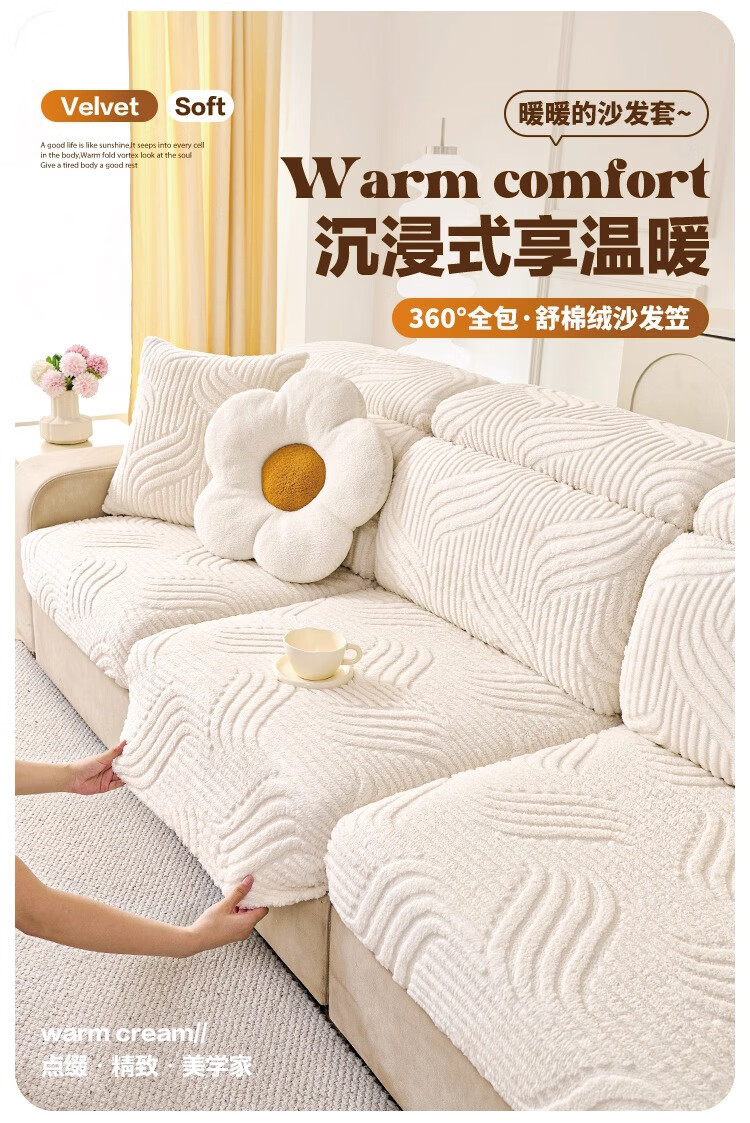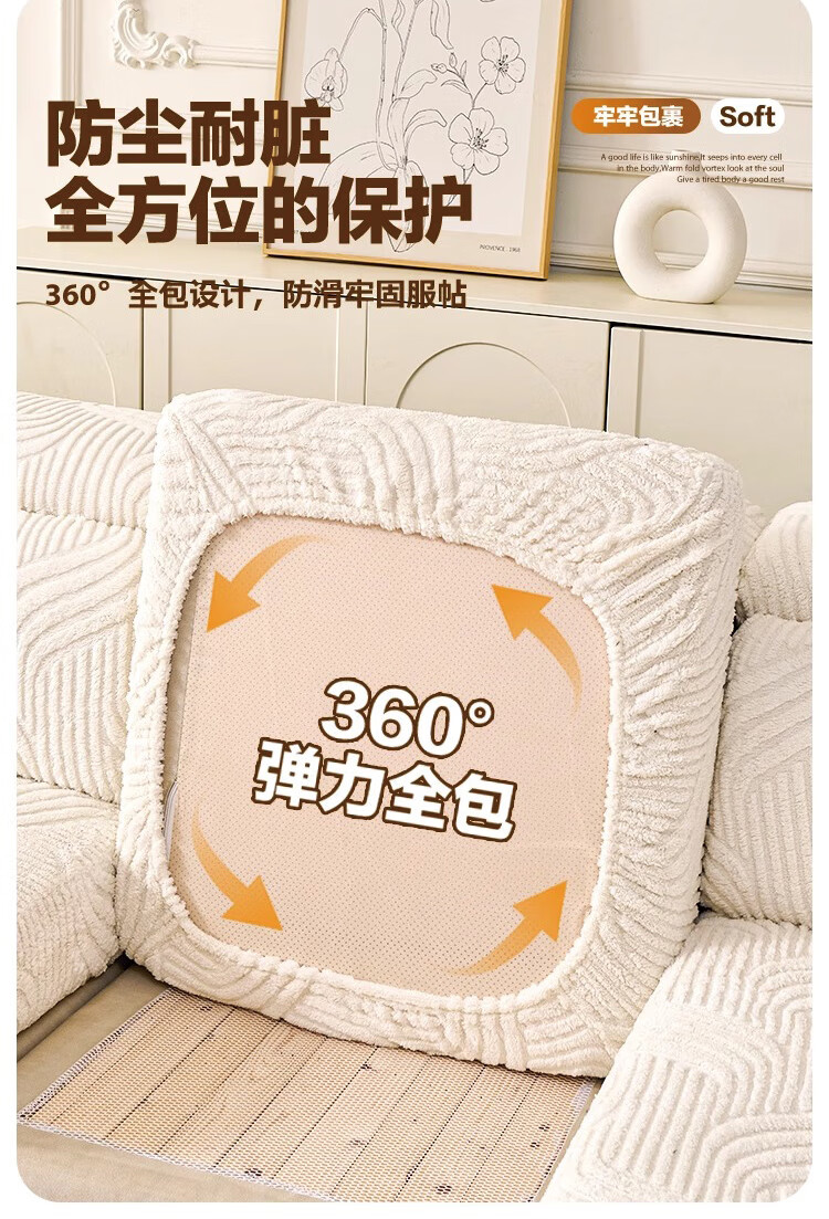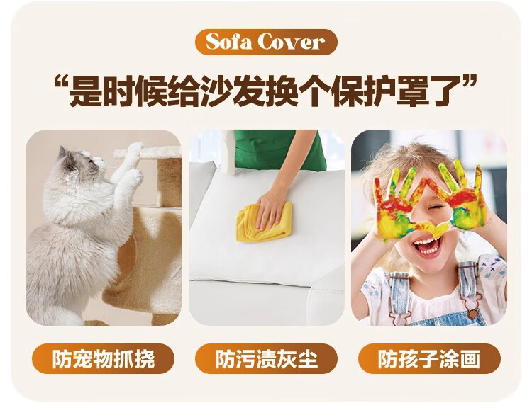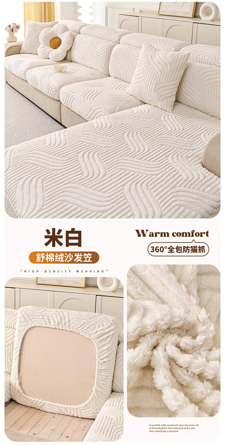 金拾美月防猫抓沙发套全包万能坐垫2026新款秋冬季三座一贵妃沙发盖布巾 狐尾-米白 单人加大S宽60-80cm*长70-90cm