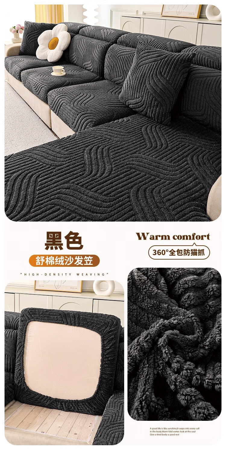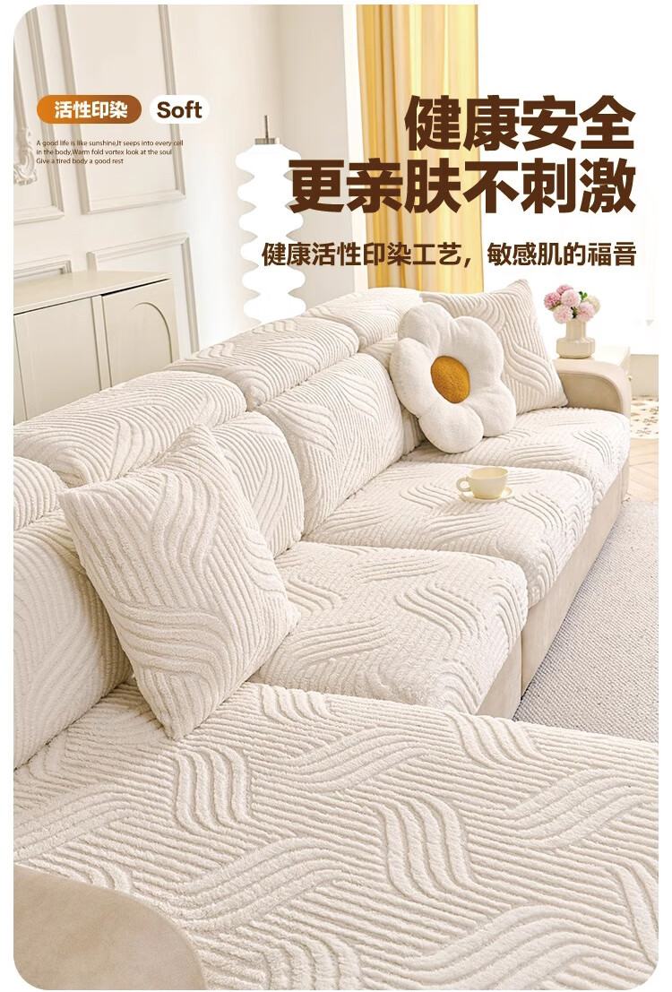 无印良品2025新款秋冬款薏米绒沙发盖布巾防滑沙发套罩加厚冬季毛绒沙发毯 山海-米咖色【加厚薏米绒软糯温暖不静电】 180*480cm【适合五人位】