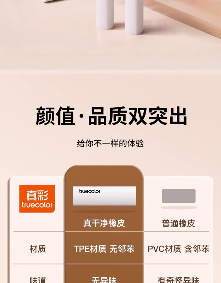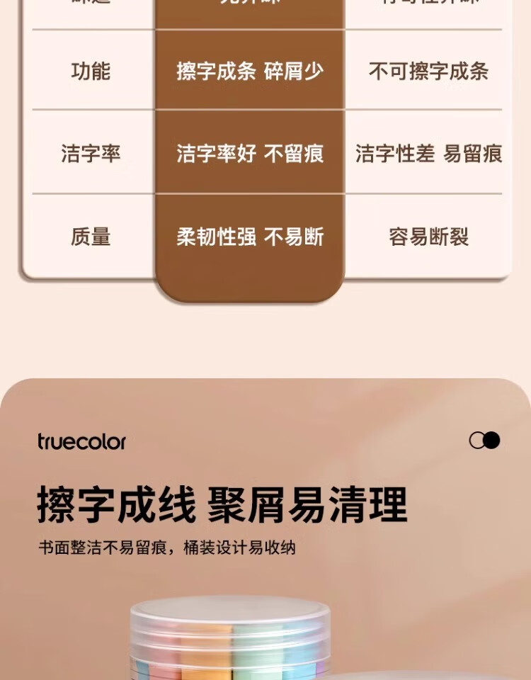 真彩(TRUECOLOR)集屑三角橡皮擦美术橡皮无屑超干净擦拭成条擦字干净不留痕2B少屑儿童写字素描 大号彩色10个/桶