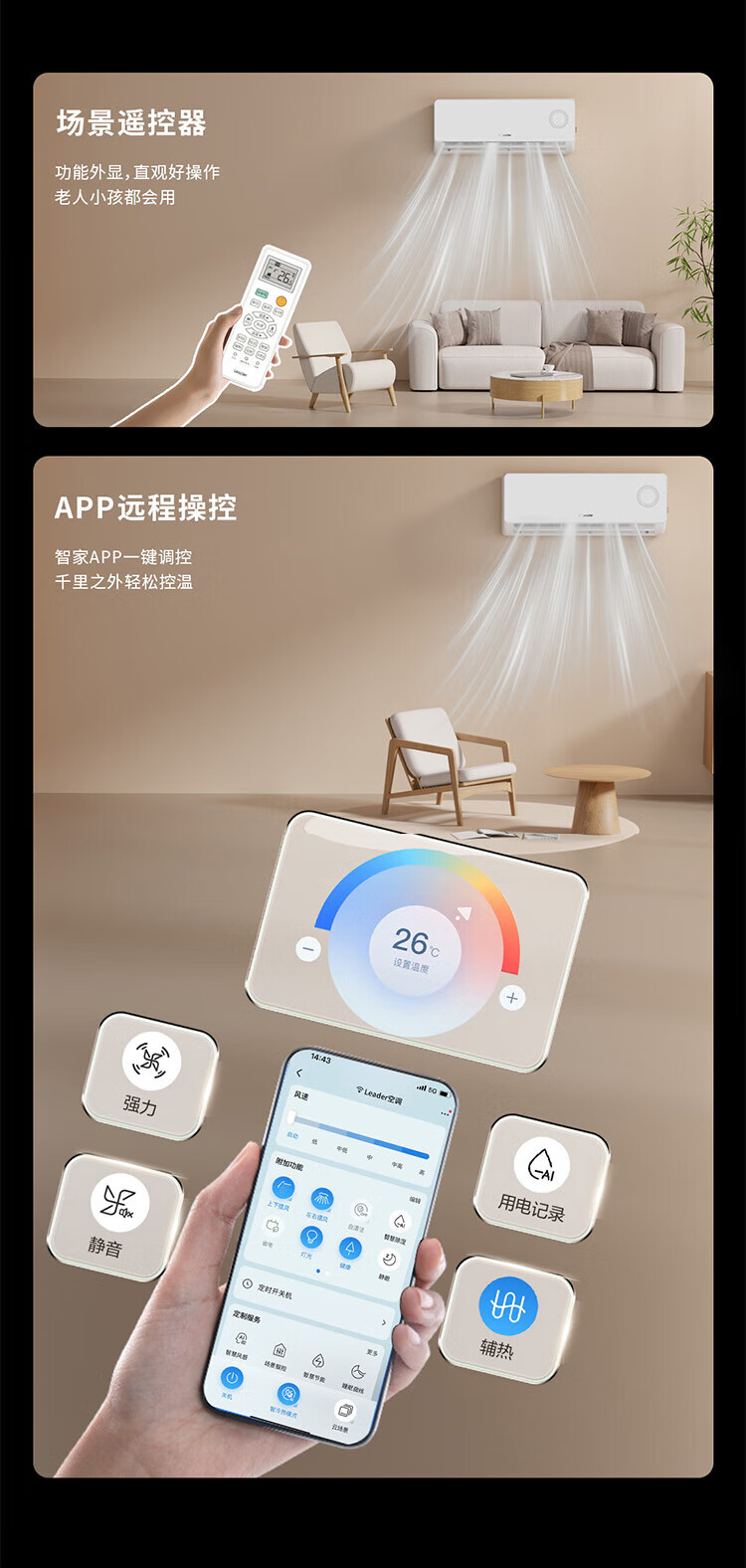 海尔空调套装智家出品统帅立式柜三室一厅节能变频新一级能效冷暖家用三室二厅自清洁 超省电挂机+柜机 【一室一厅 全一级能效】2匹柜机+1.5匹挂机