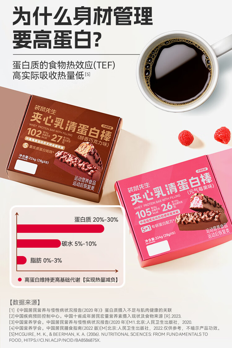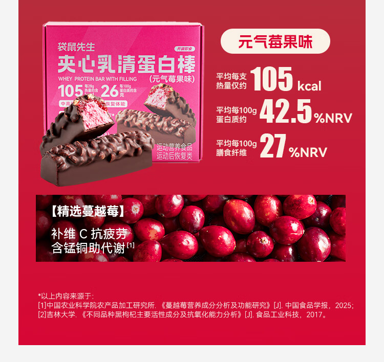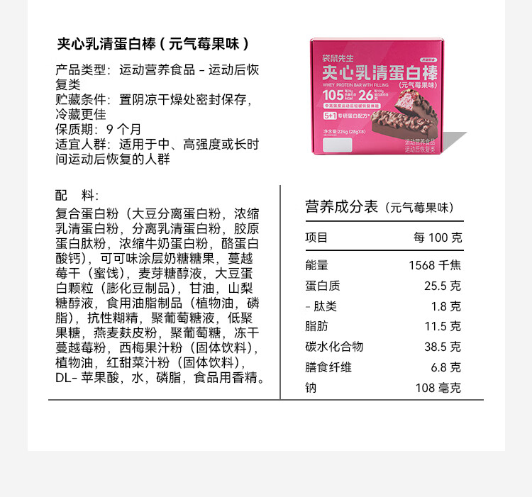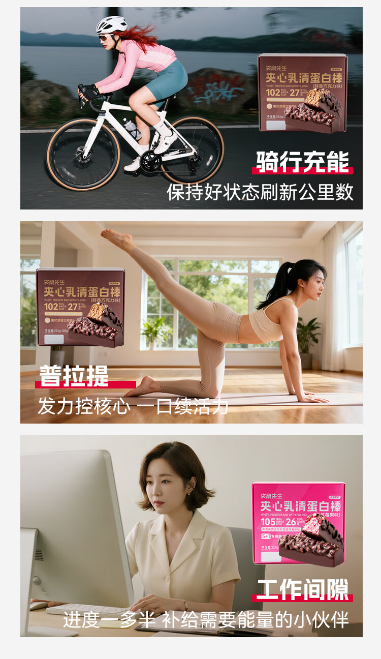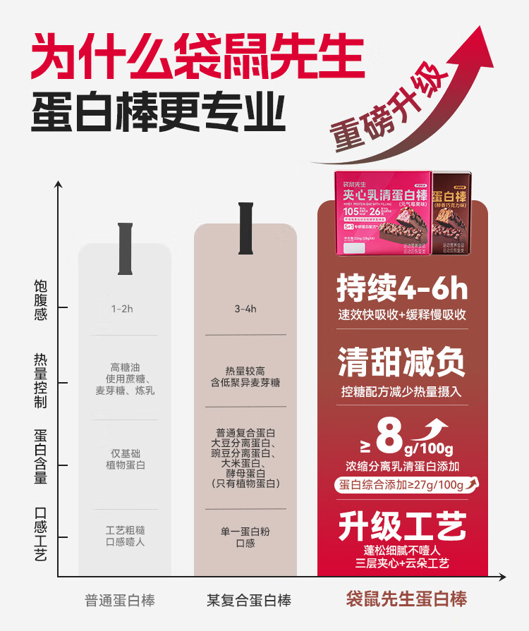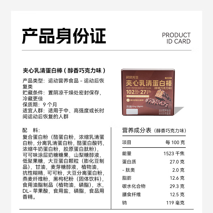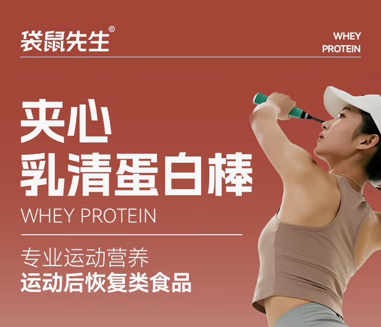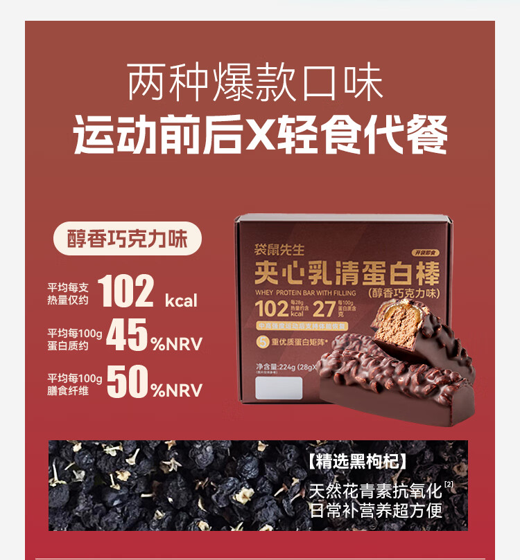 袋鼠先生双层蛋白棒代餐能量棒健身饱腹零食威化饼干 夹心乳清蛋白棒醇香巧克力味8根 224g*1盒