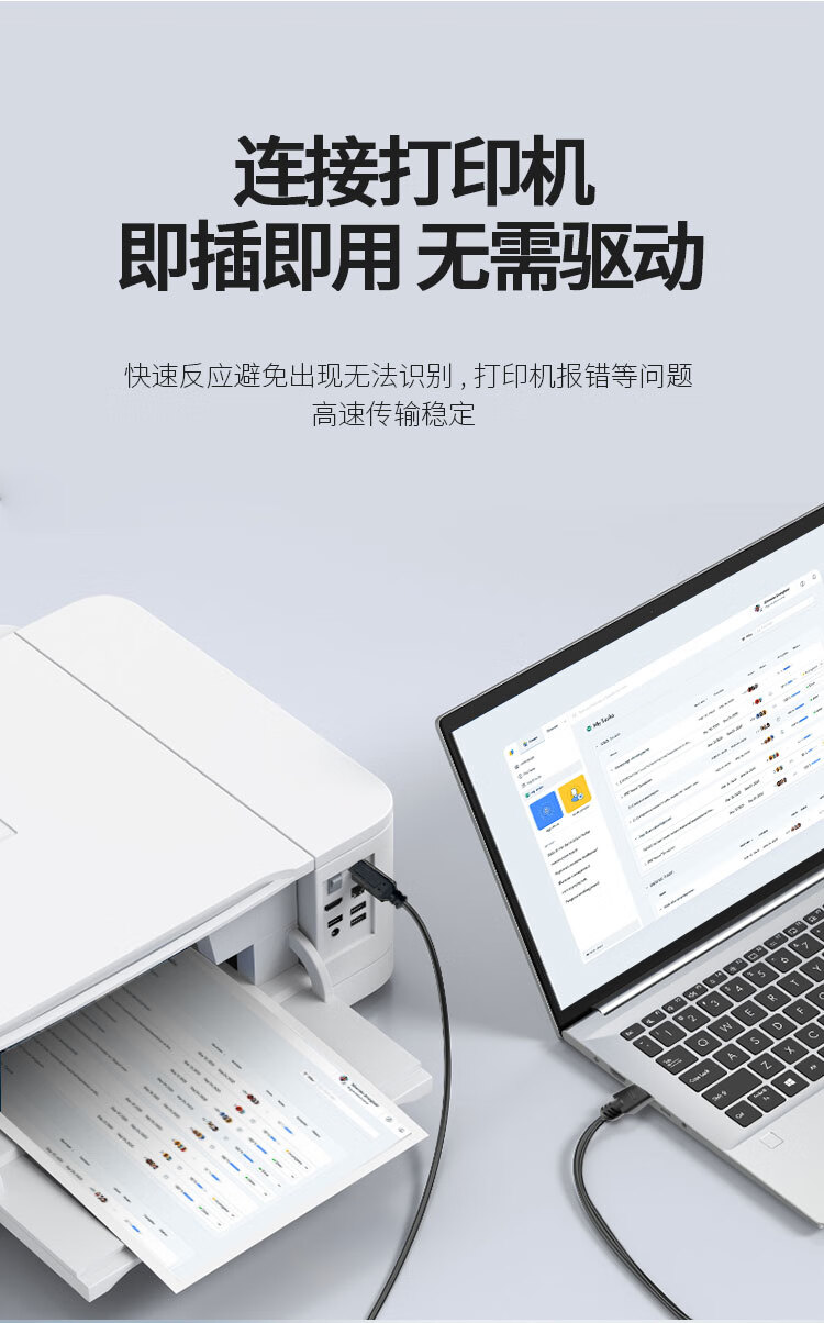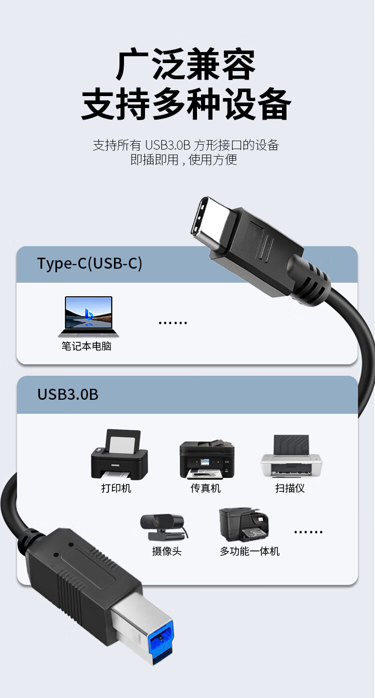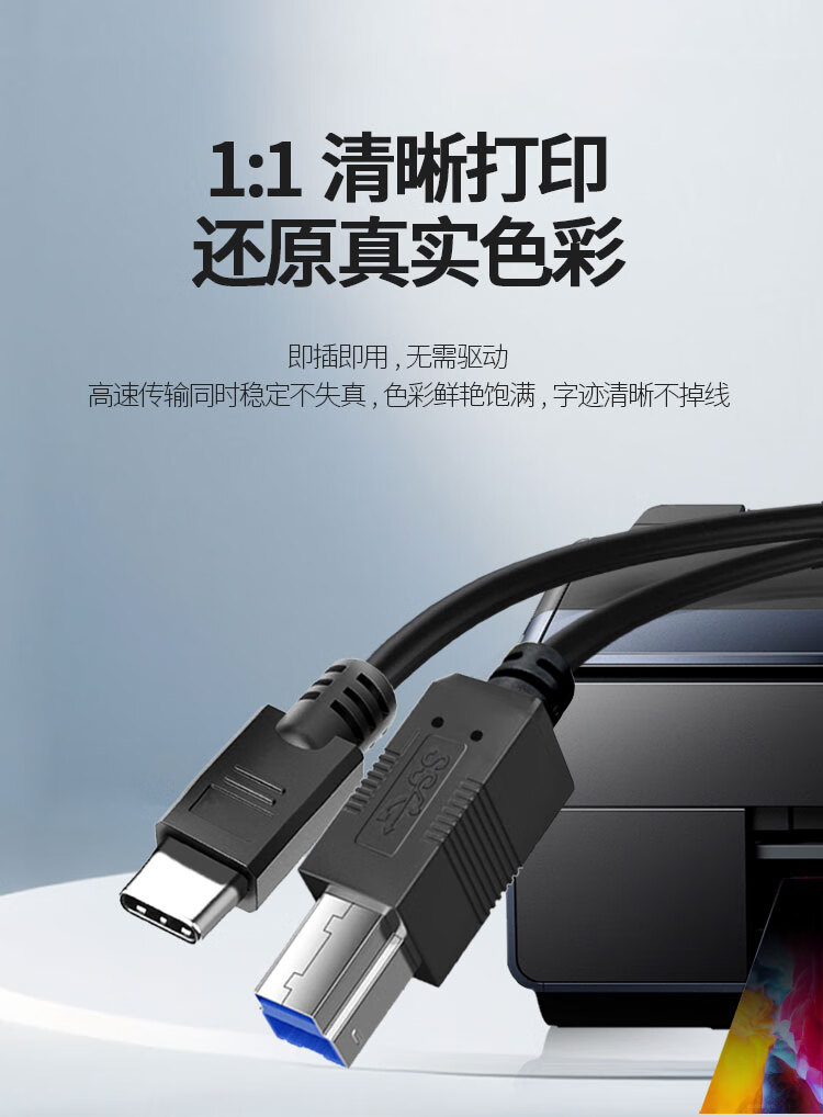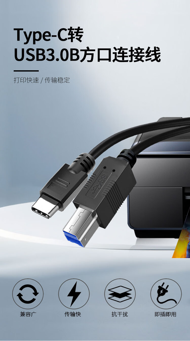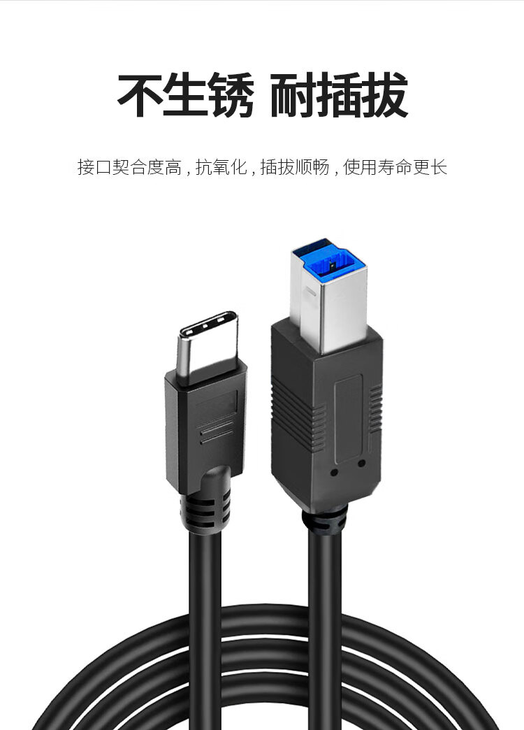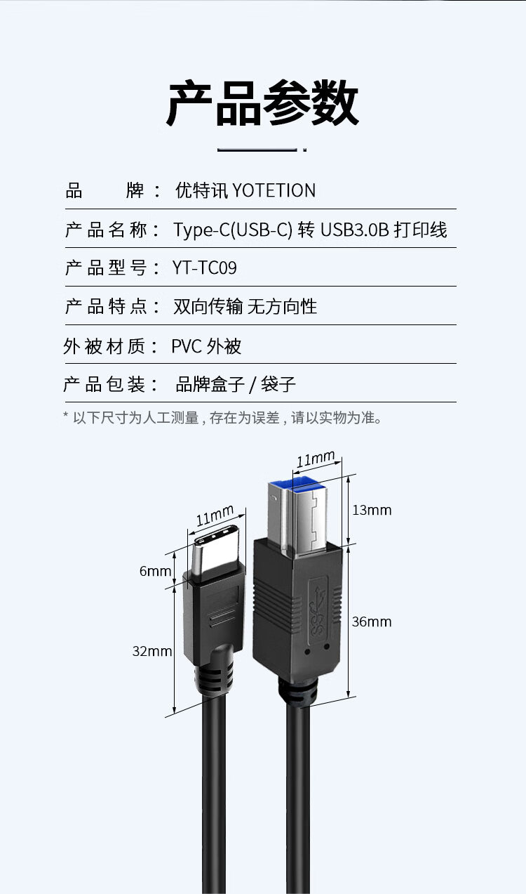 优特讯Type-C/USB-C转USB3.0B公打印线 笔记本电脑手机接打印机传真机扫描仪摄像头等连接线 YT-TC09 Type-C转USB3.0B公打印线 18米