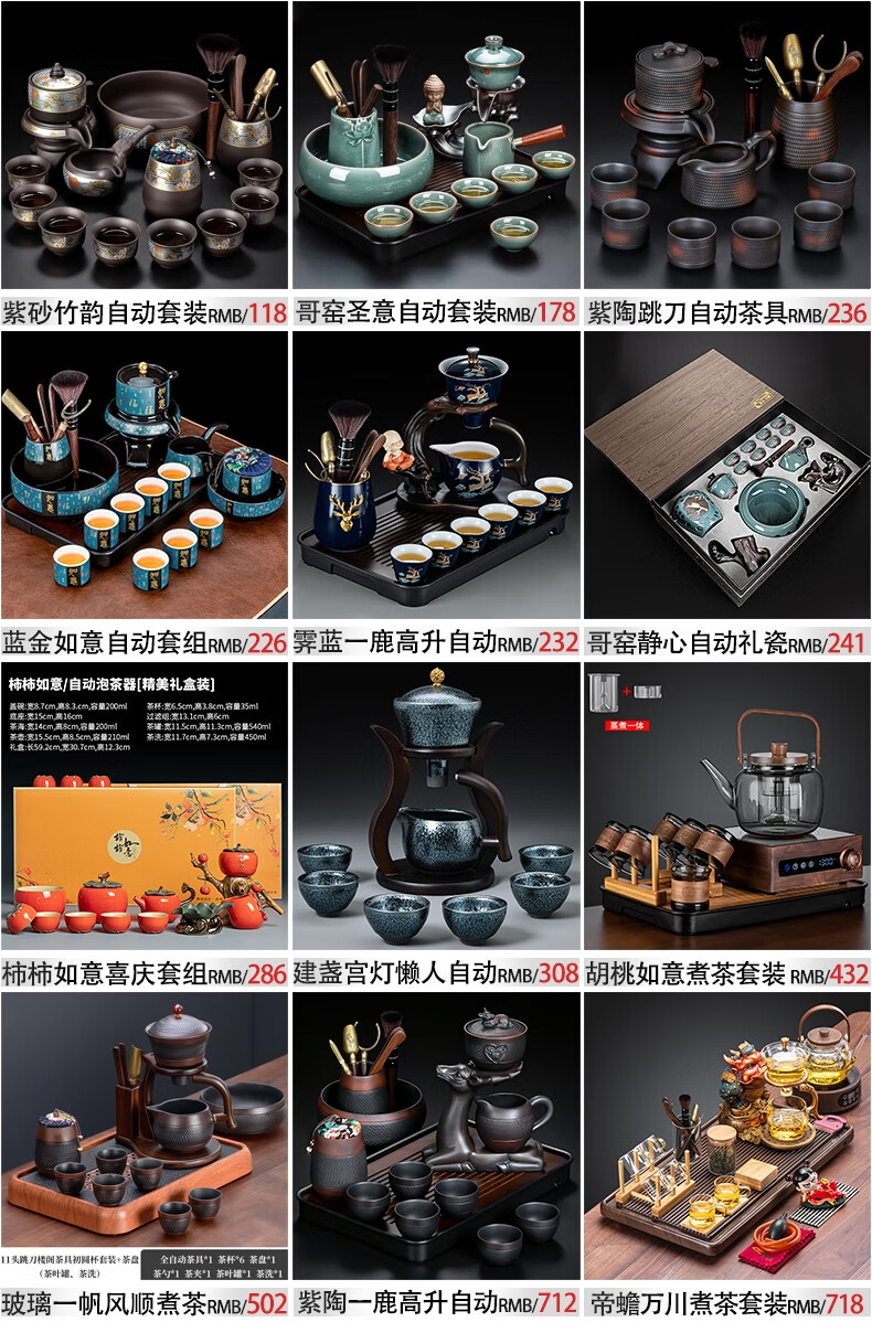 正扬紫砂自动茶具套装家用高档整套懒人功夫泡茶神器防烫旋转办公礼物 紫砂自动(舍得)六杯+茶道