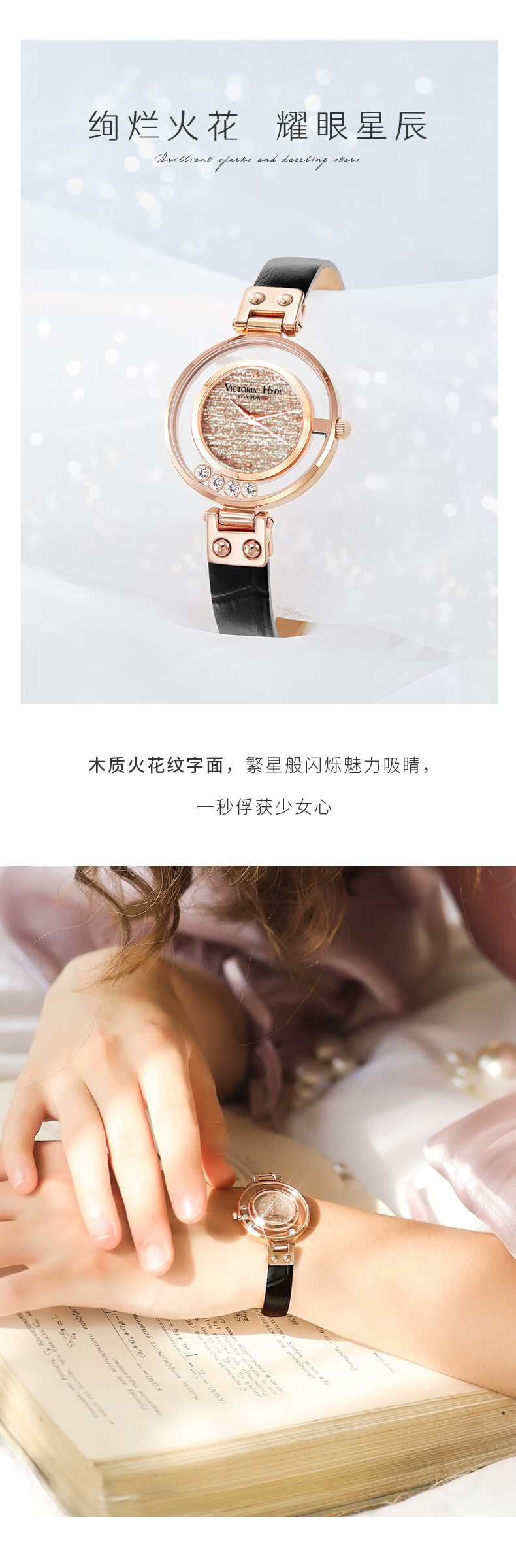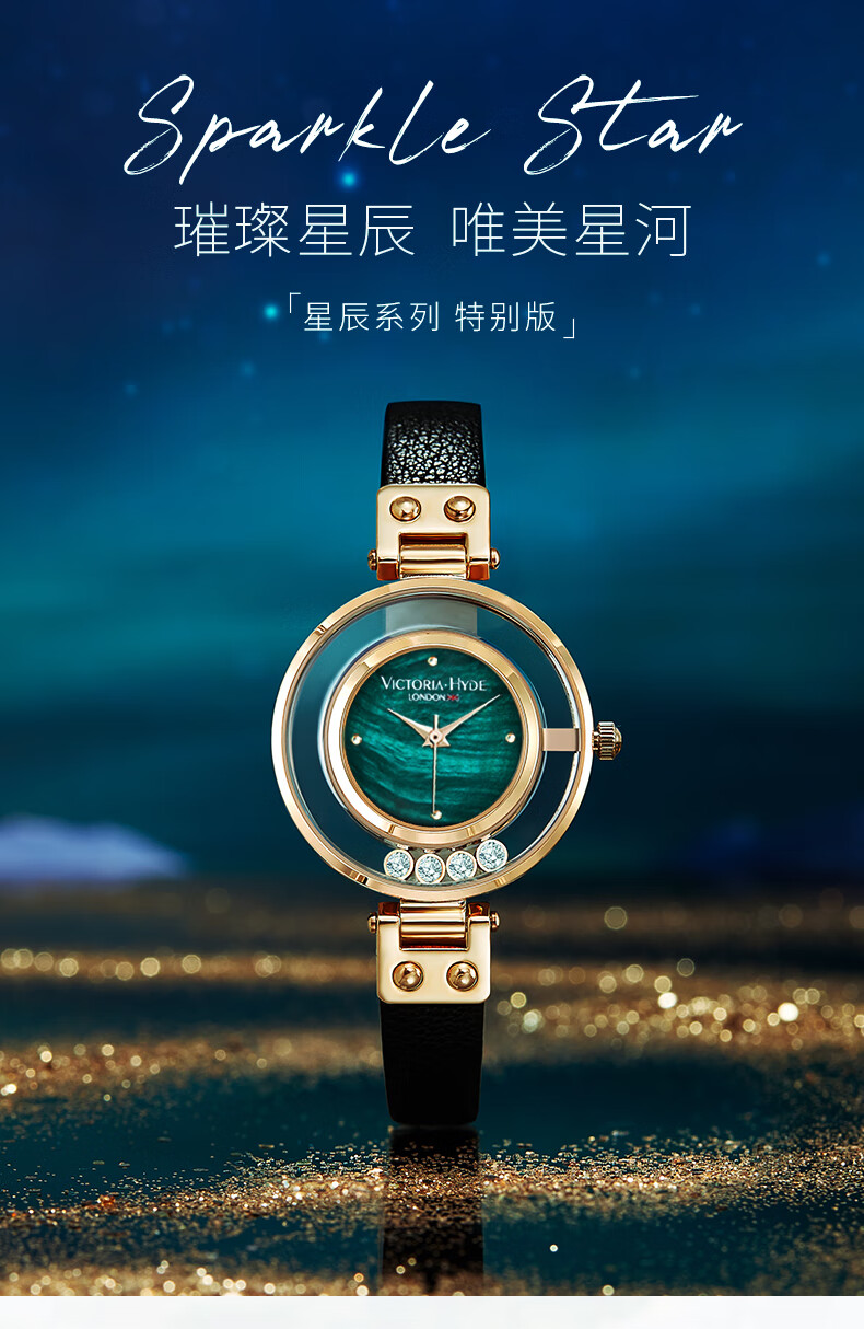 VICTORIA·HYDE星辰手表女小众轻奢女表满天星表盘高级感石英表新年情人节送女友 气质莫兰迪灰(配手镯)