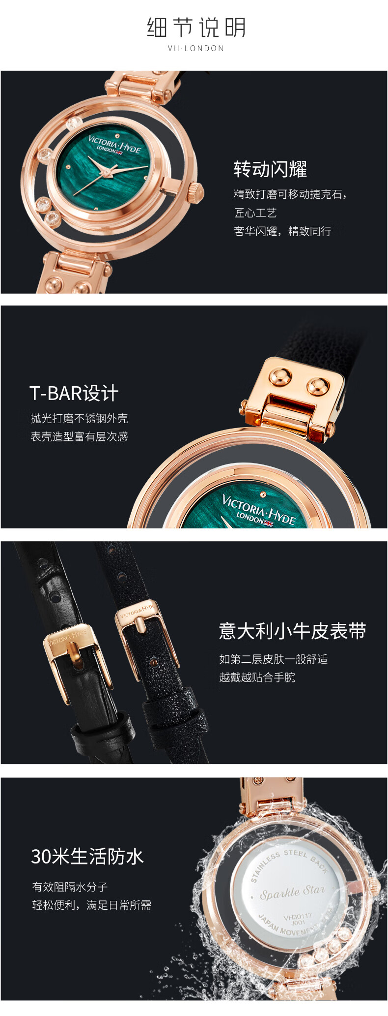 VICTORIA·HYDE星辰小绿表手表女简约气质小众轻奢女表复古时尚ins维多利亚海德 竹节纹小绿表单表