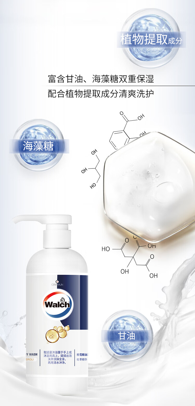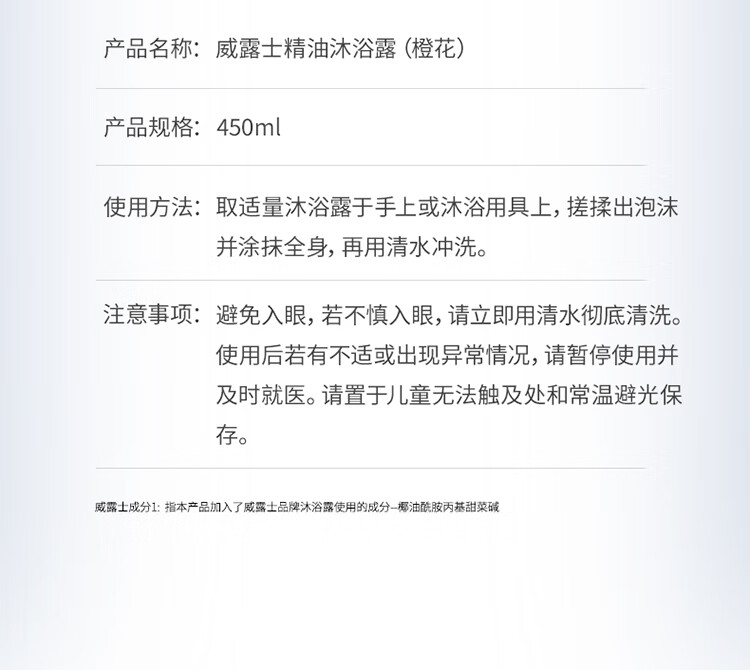 威露士精油沐浴露450ml*2瓶(橙花+佛手柑)保湿留香沐浴液 男女士通用