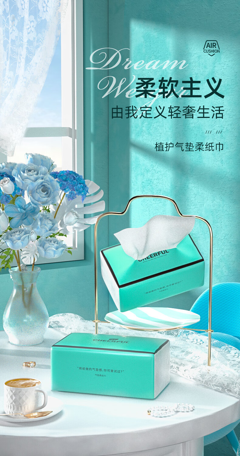 植护悦色蓝色压花纸面巾 140*175mm/4层 320张 3包/袋