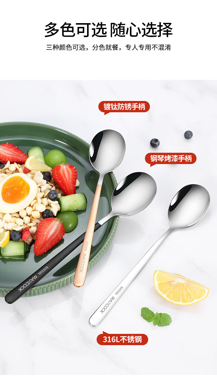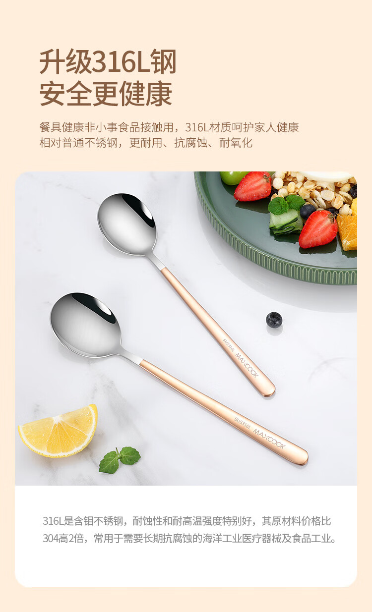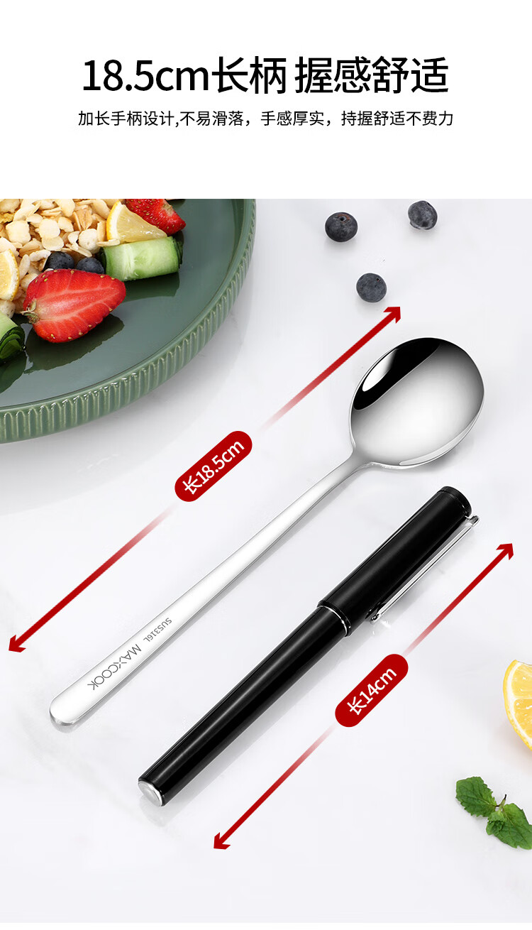 美厨(MAXCOOK)316L不锈钢汤勺汤匙 加大加厚勺子圆底餐勺 2件套本色MCGC0200