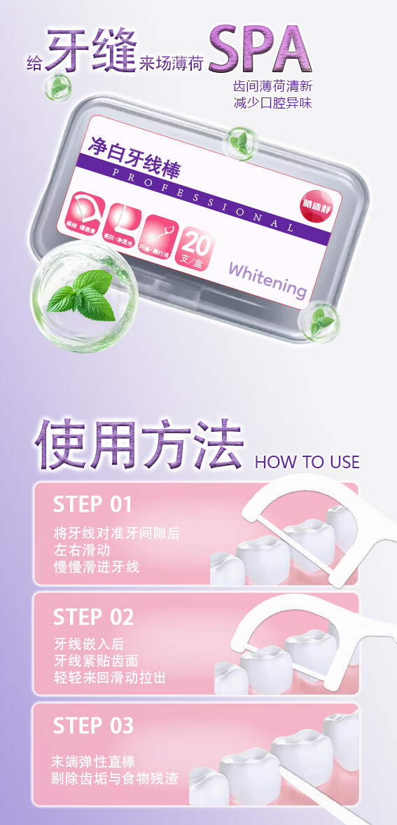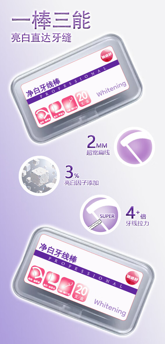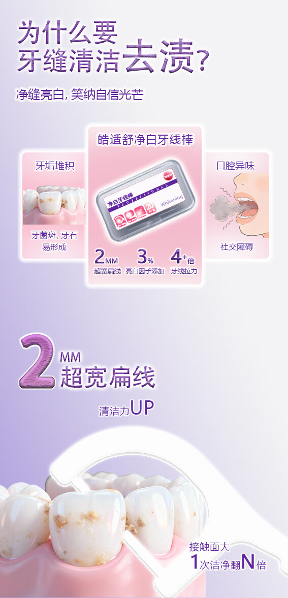皓适舒牙线扁线牙线棒4倍国标拉力碳酸钙物理去渍去牙缝渍 【超值囤货】牙线棒3盒