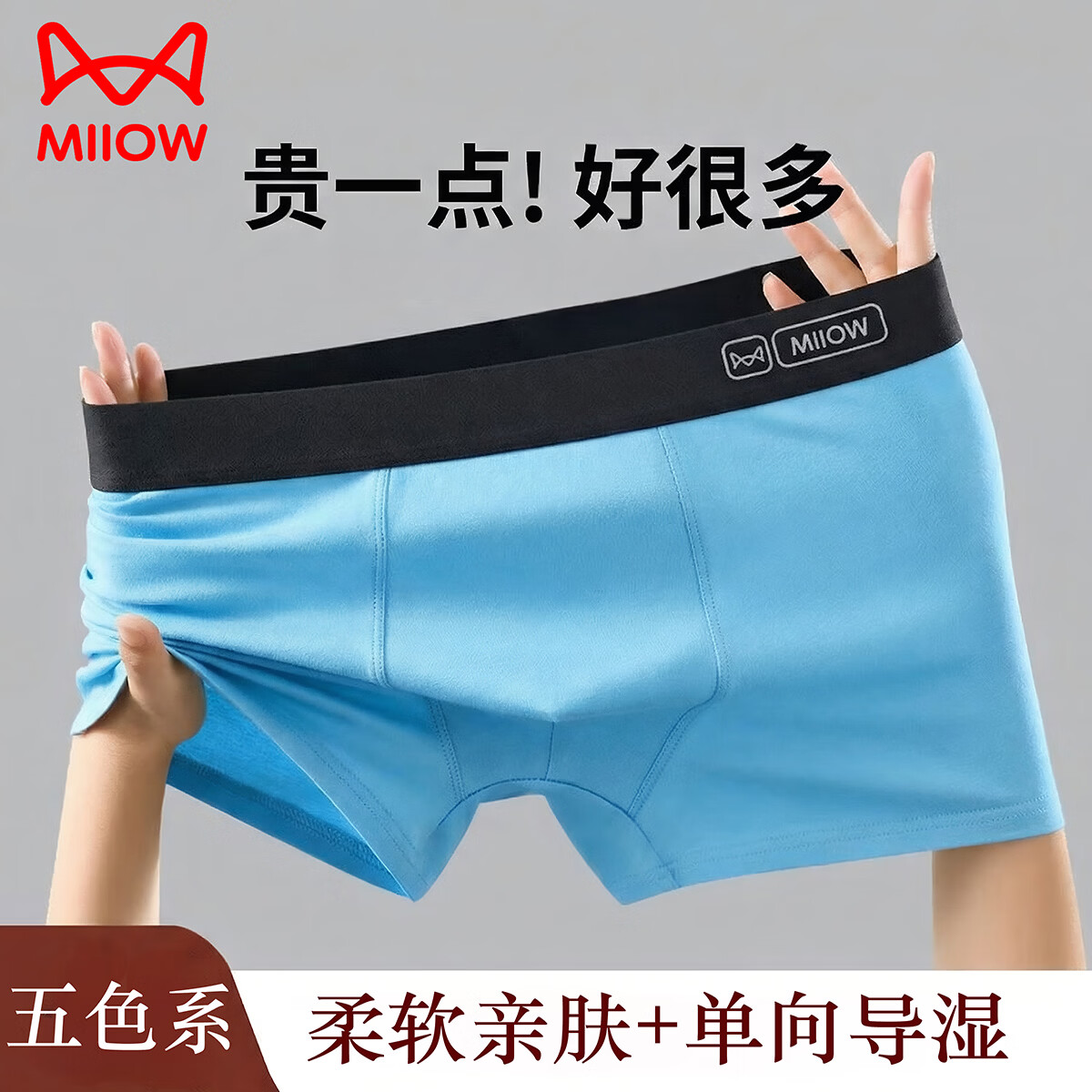 猫人莫代尔32S男内裤男7A抑菌平角裤棉感透气 【3条装】黑色+浅灰+宝蓝 5XL 【175-195斤】