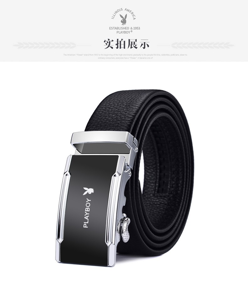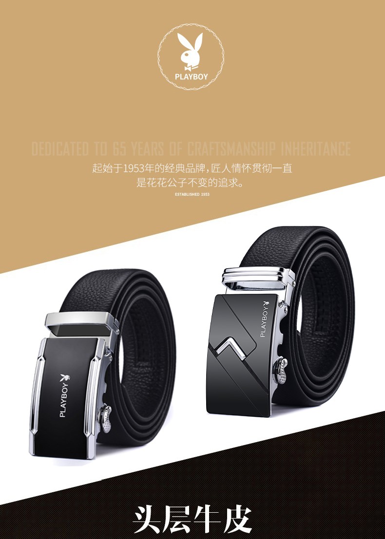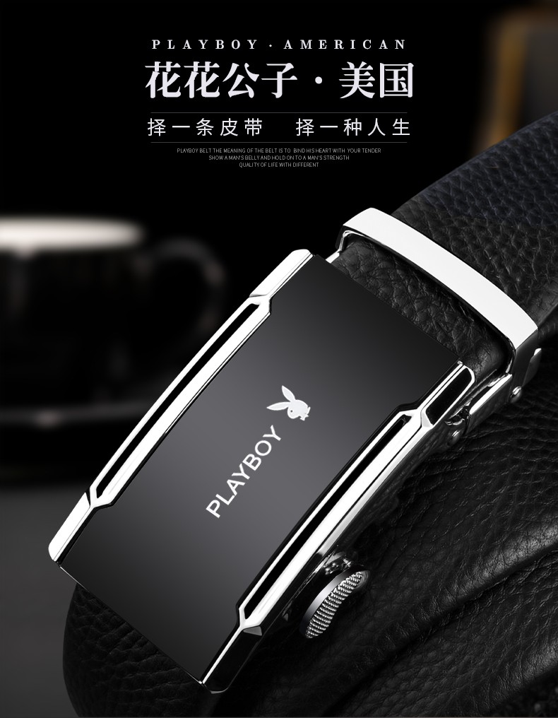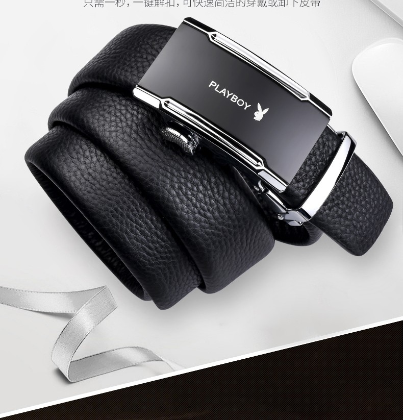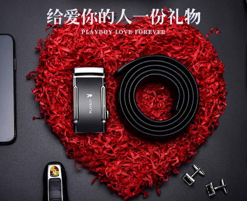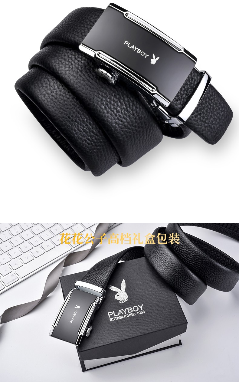 花花公子皮带男士真皮自动扣头层纯牛皮腰带中年青年裤腰带 生日礼物实用 款式一 高档礼盒【送礼甄选】