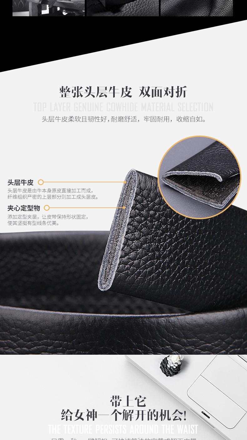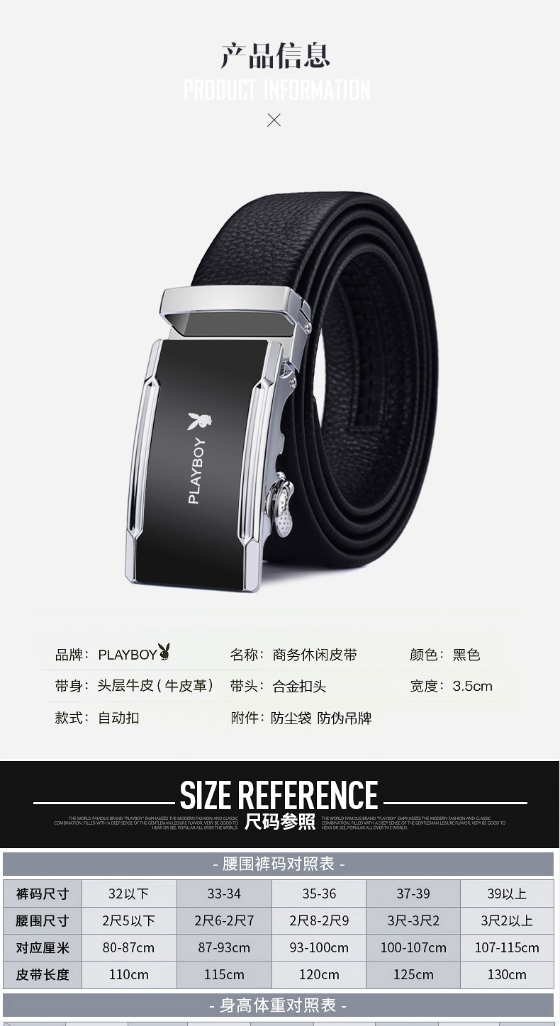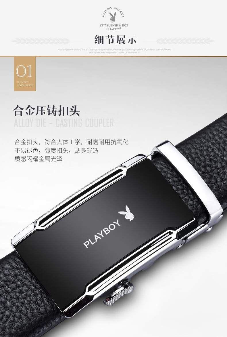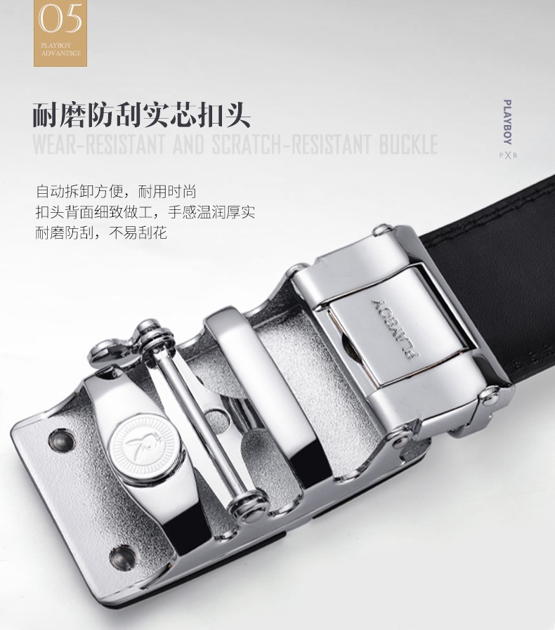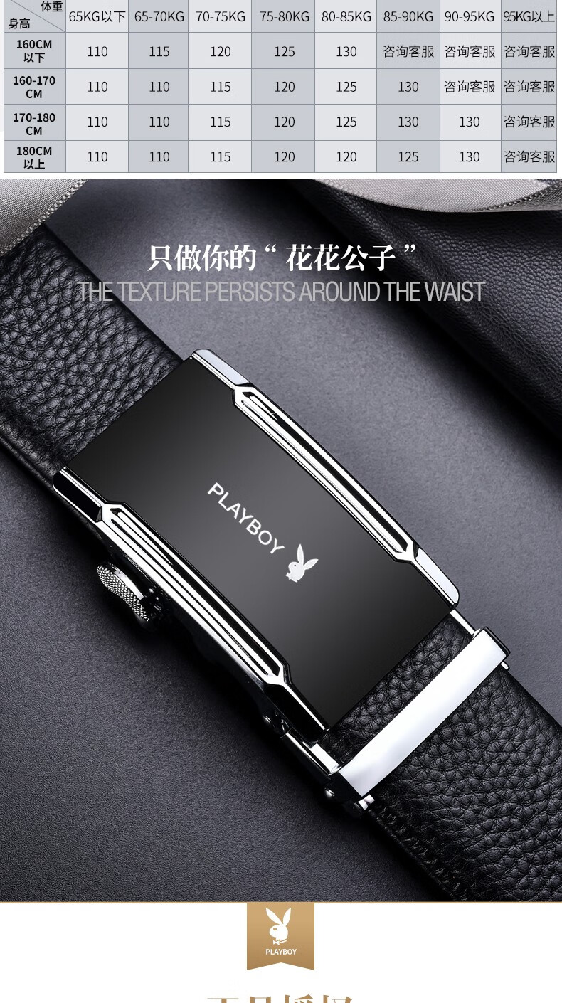 花花公子皮带男士真皮自动扣头层纯牛皮腰带中年青年裤腰带 生日礼物实用 款式一 高档礼盒【送礼甄选】