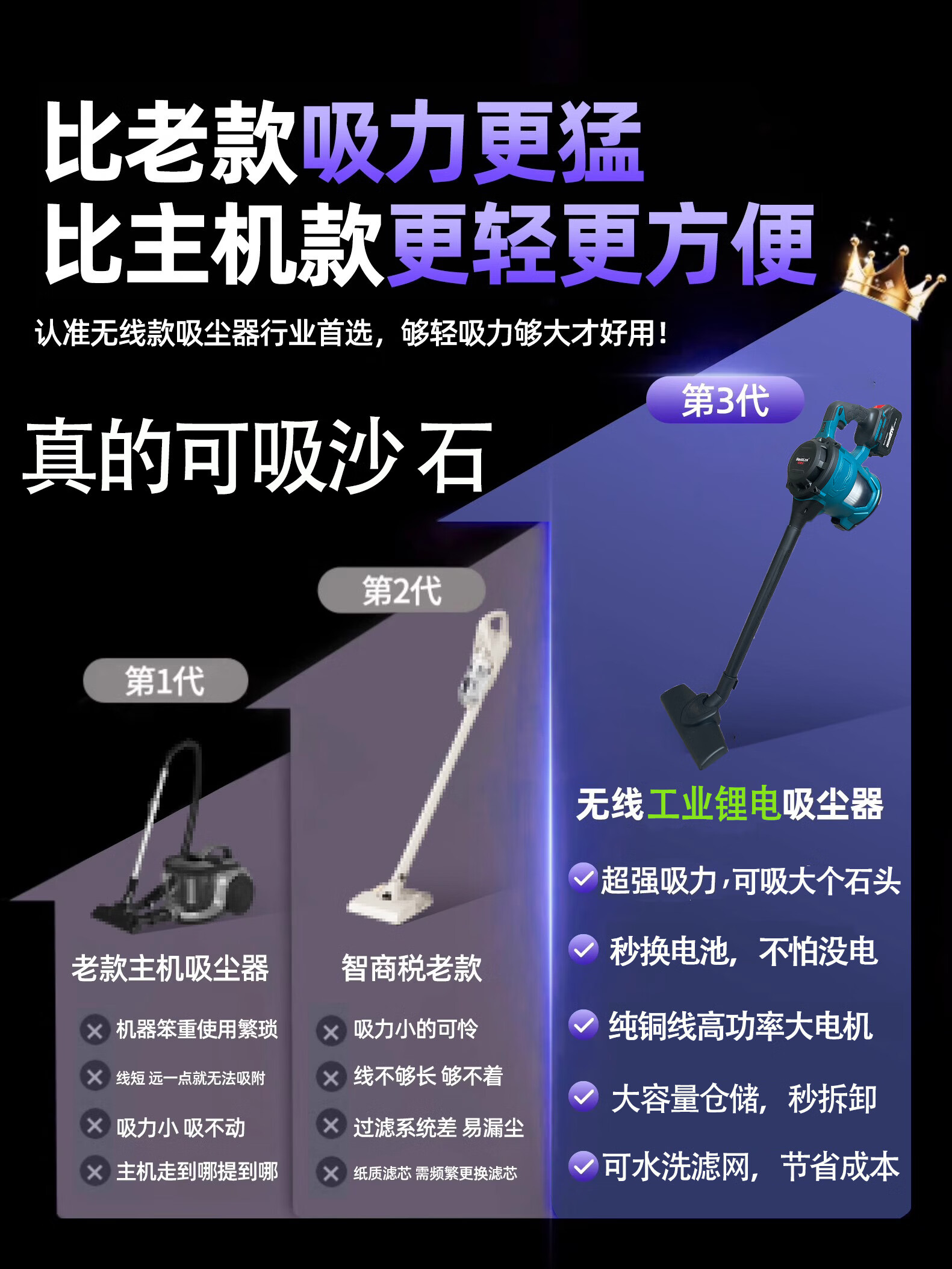 MOTOFEEL无线锂电吸尘器车载家用大吸力装修工业大功率强力小型手持清洁吸尘机 壶状吸尘器【2电池1充电器】