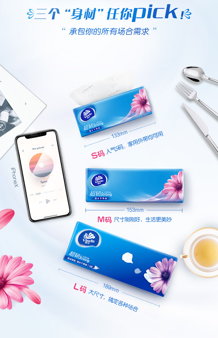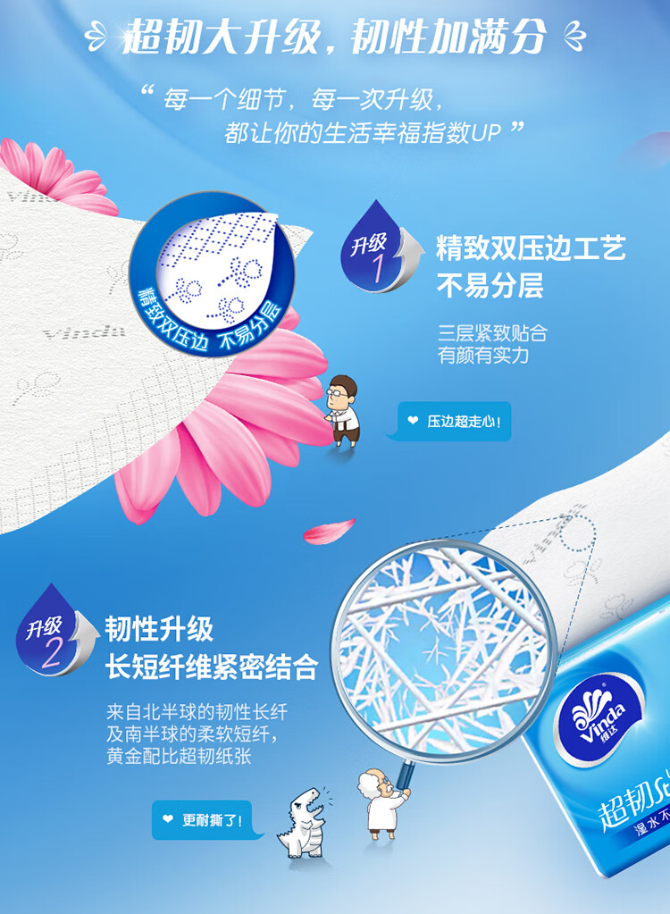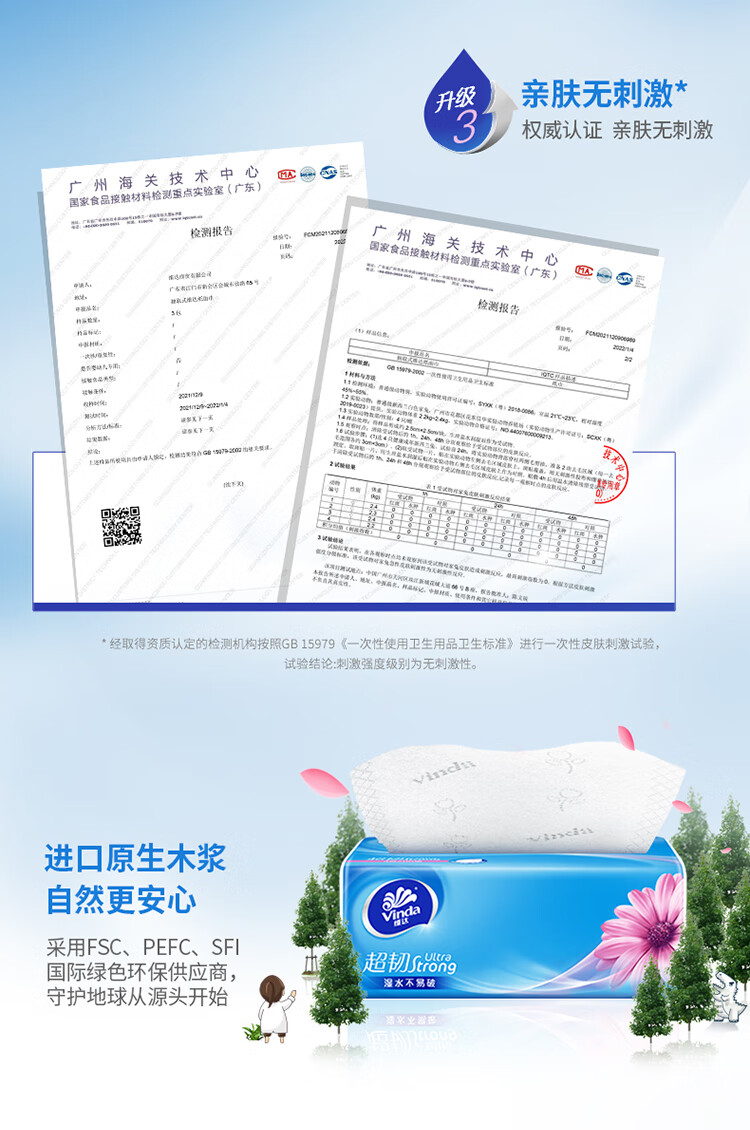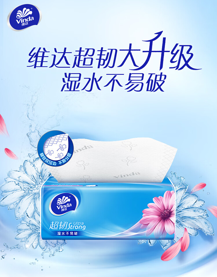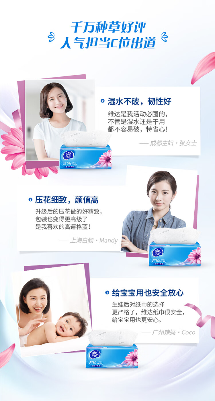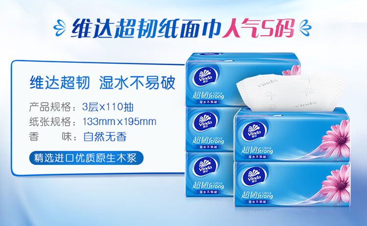 维达(Vinda)超韧抽纸 3层110抽 母婴适用 餐巾纸 卫生纸 面巾纸 擦手 3层 110抽*3包