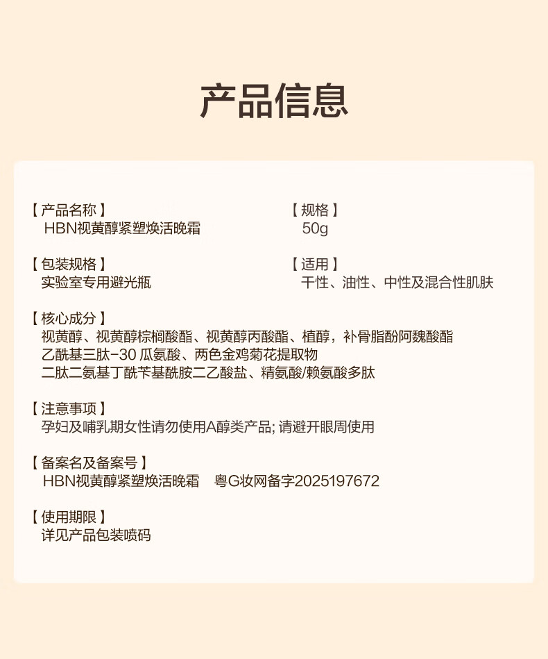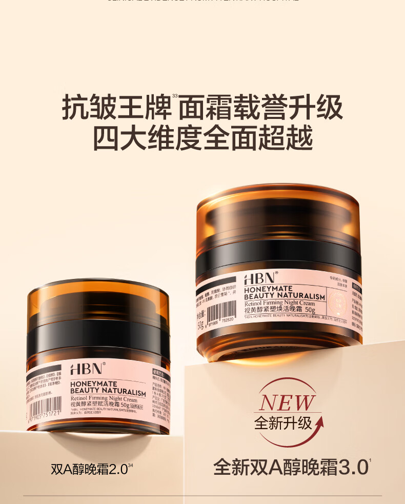 HBN双A醇晚霜3.0抗皱紧致淡纹滋润保湿霜护肤品生日礼物送女友