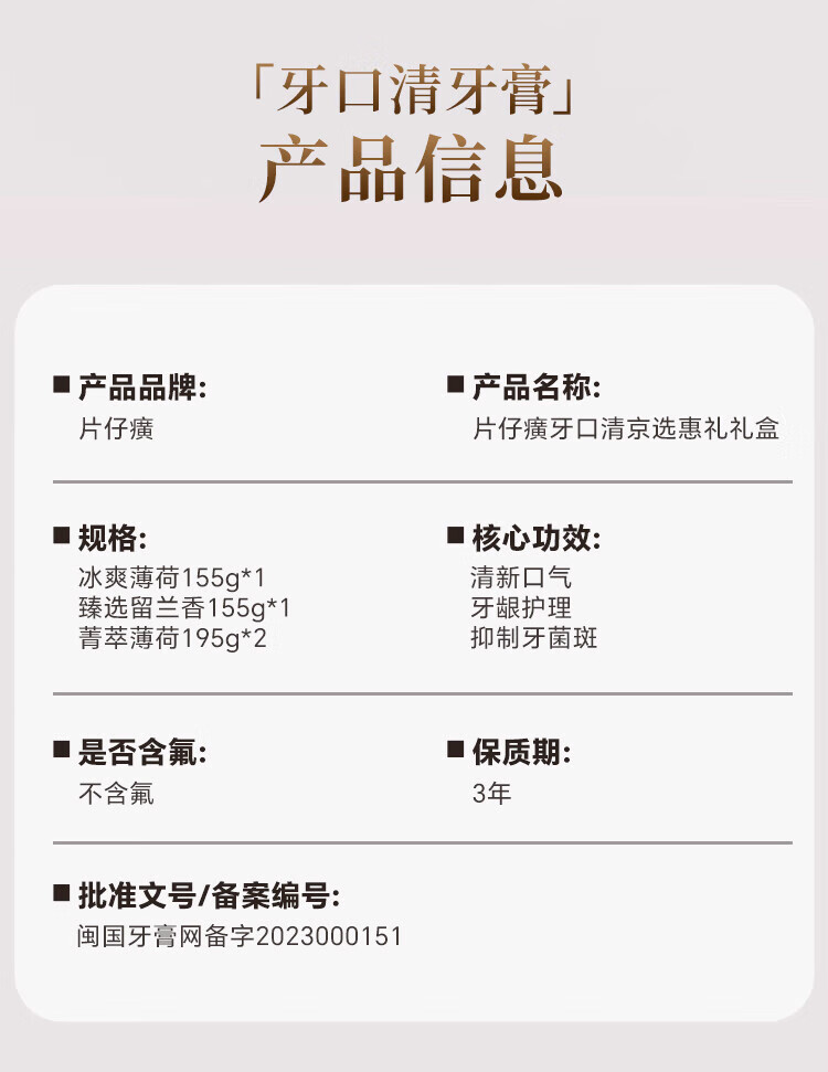 片仔癀牙膏全家福清洁护龈抑制牙菌斑清新口气 4支礼盒装700g 京东自营
