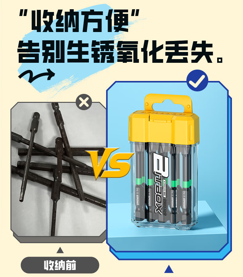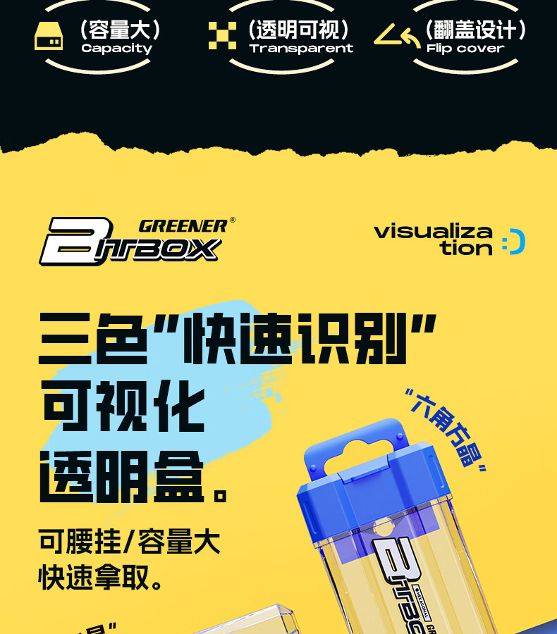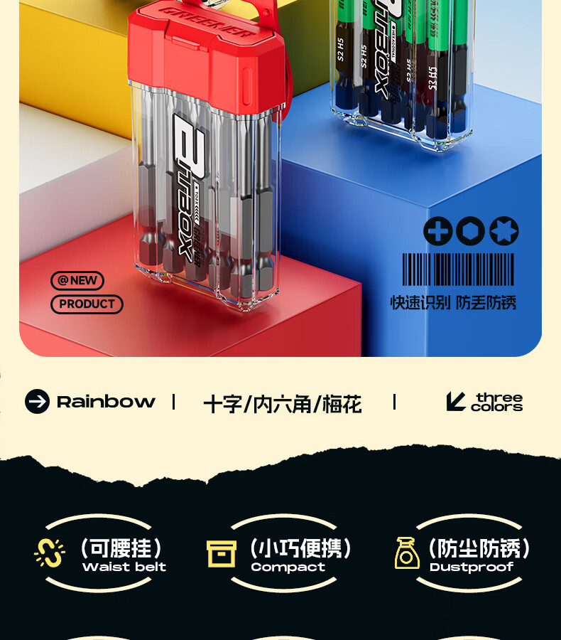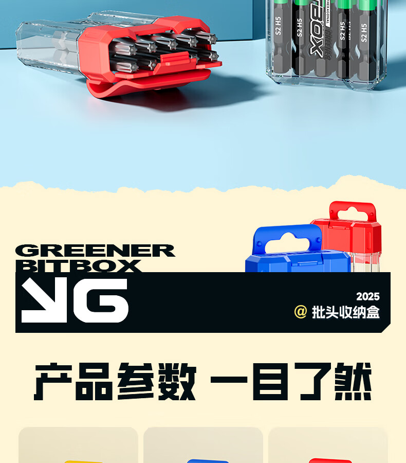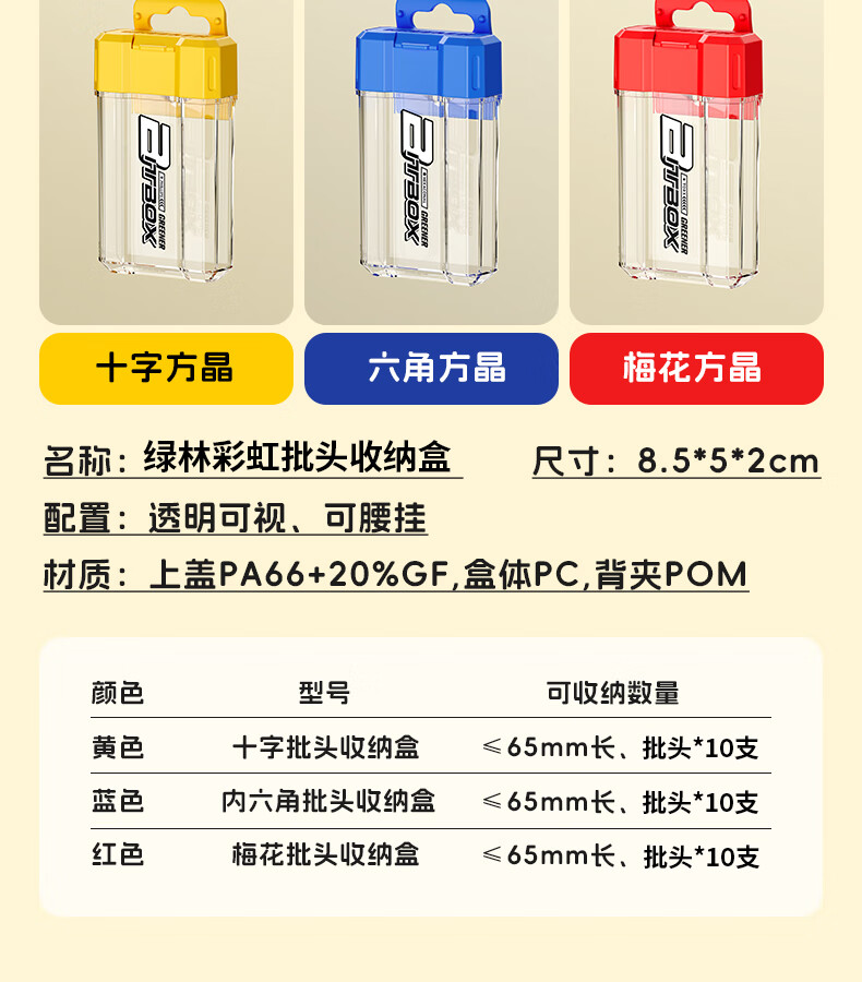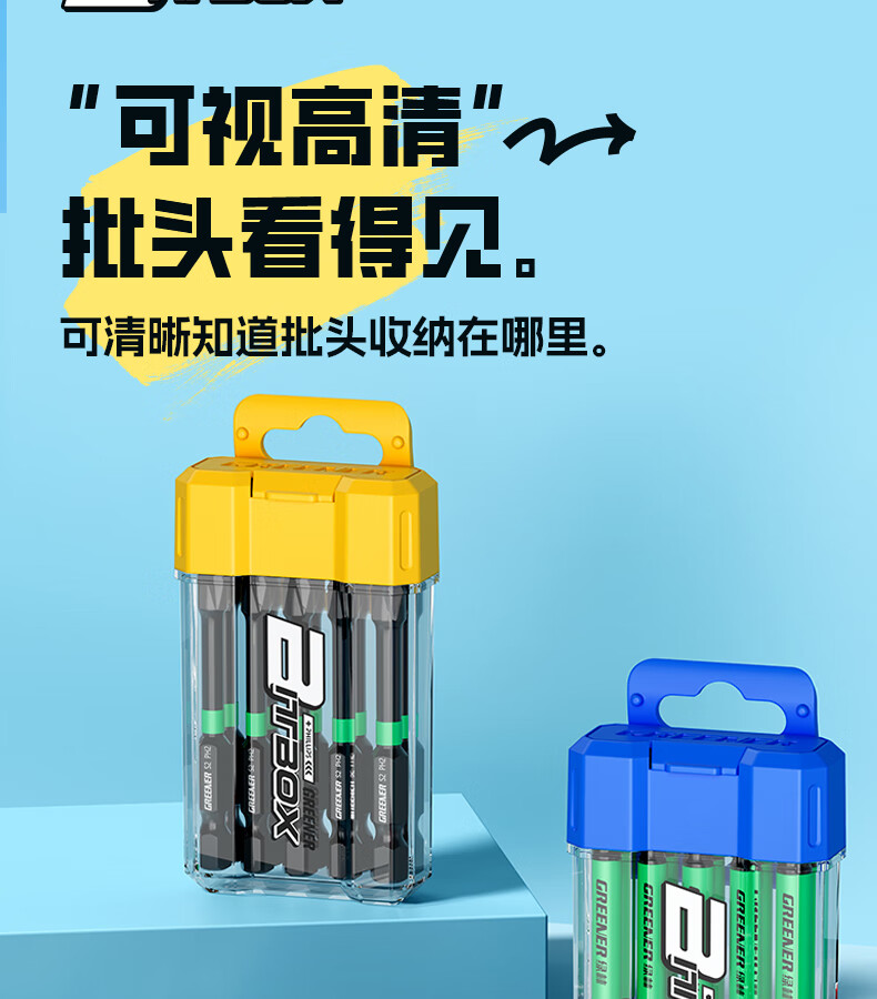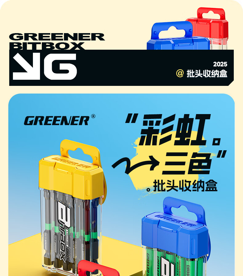 绿林(GREENER)彩虹批头收纳盒十字内六角强磁高硬度梅花电动螺丝刀头套装披 1个【黄色十字】批头收纳盒