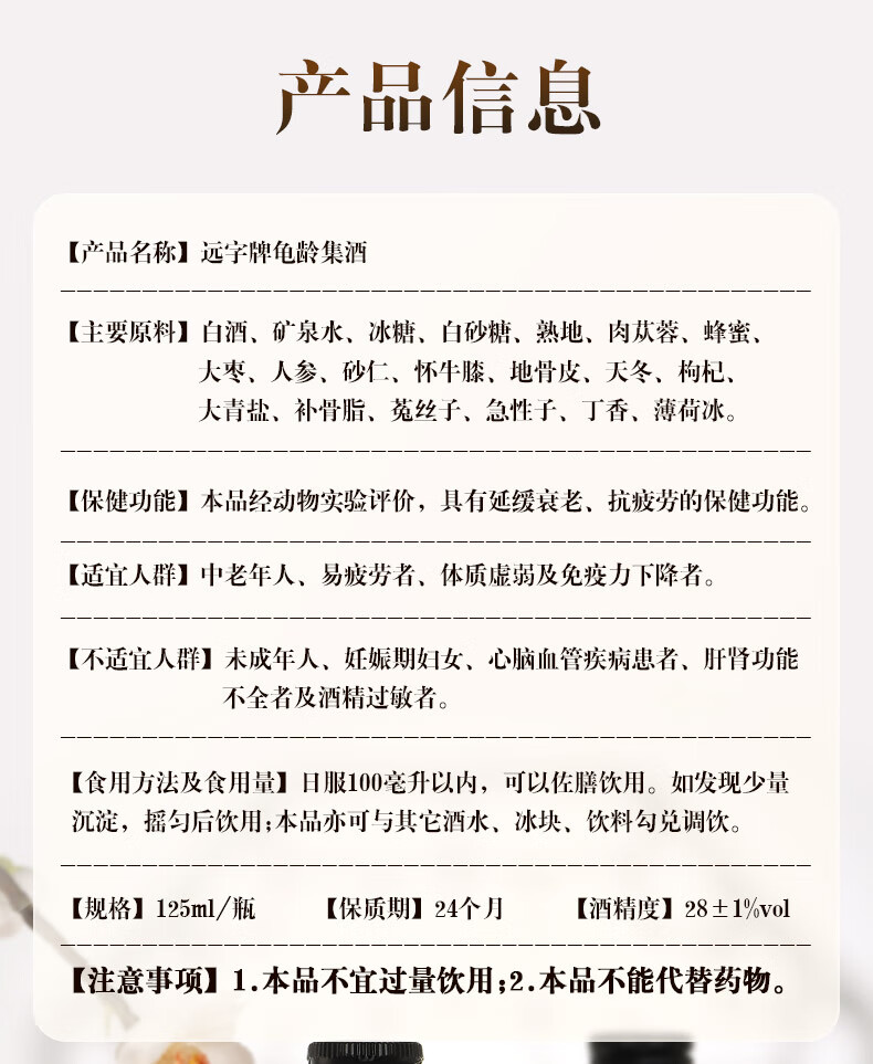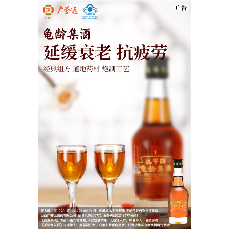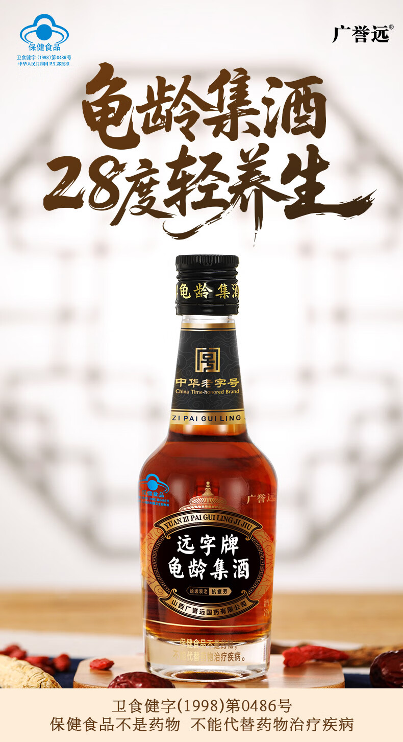 广誉远远字牌龟龄集酒青春小炮保健酒送礼年货 125ml*12瓶 (整箱装)