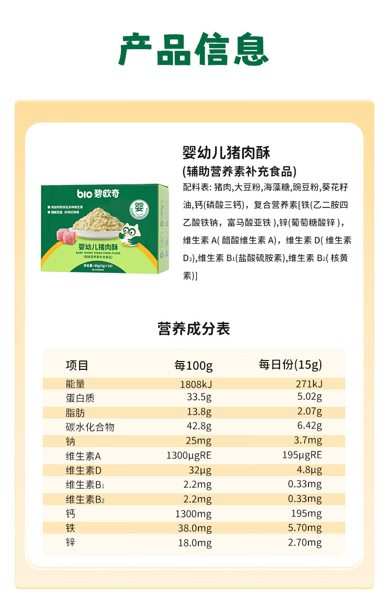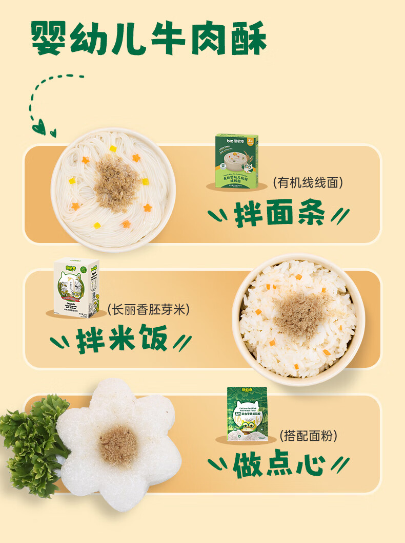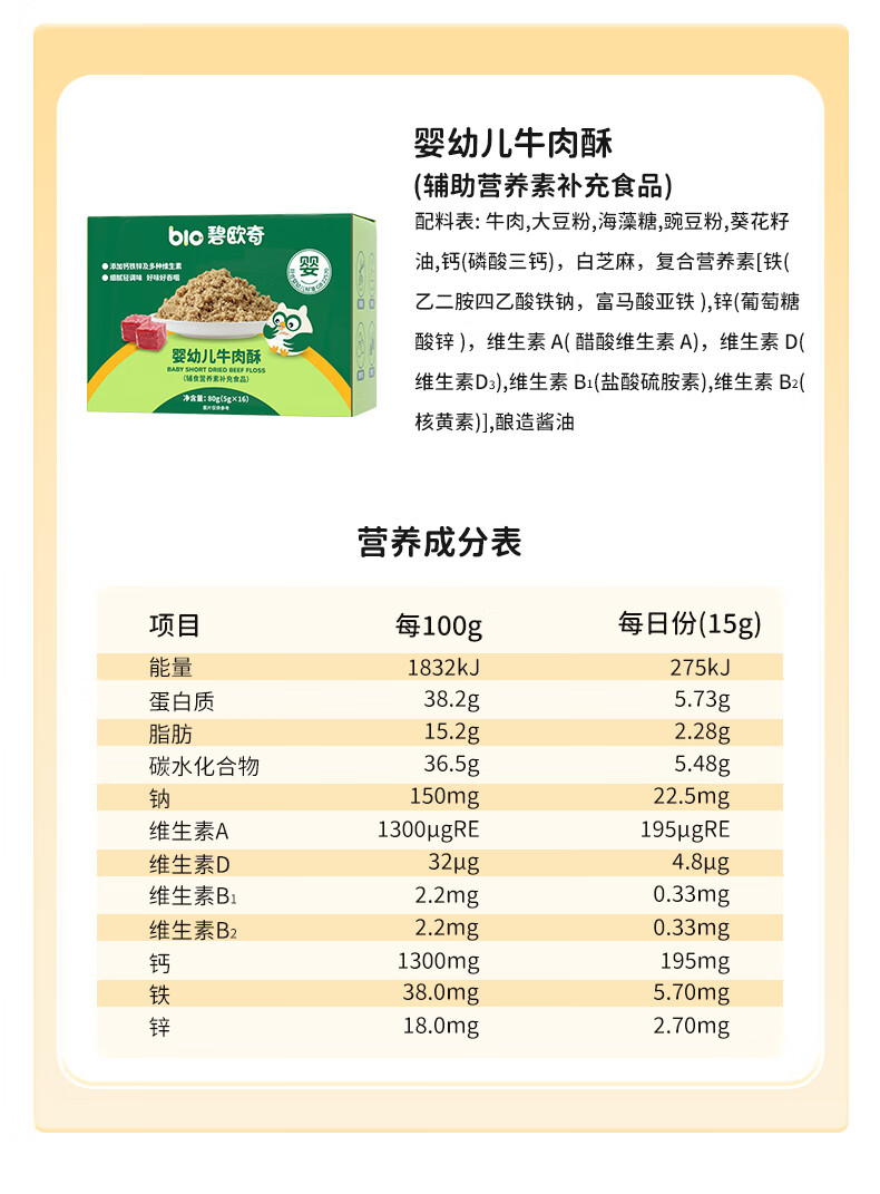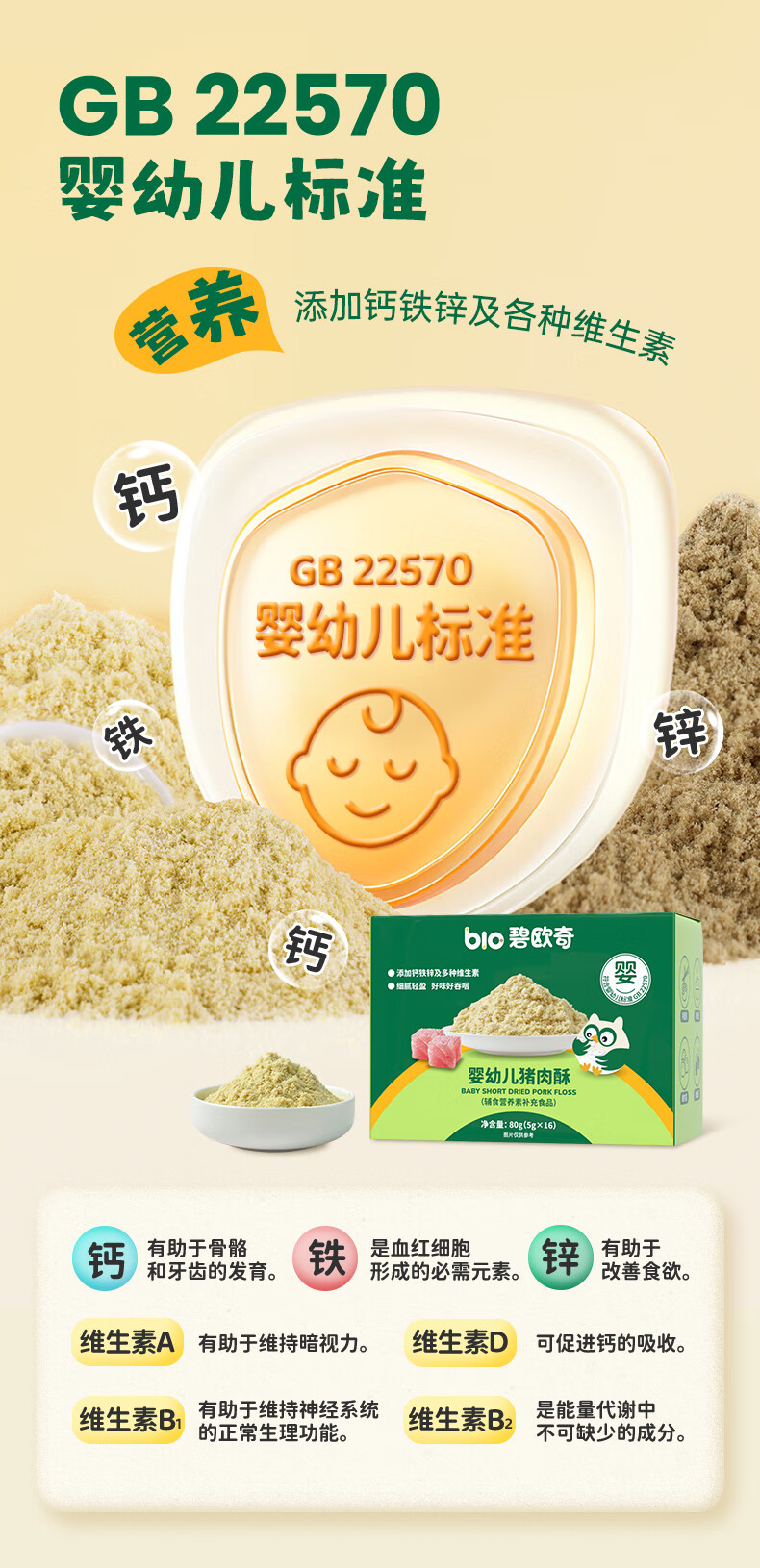 碧欧奇婴幼儿猪肉酥牛肉酥宝宝儿童营养辅食拌饭料零食调味品小包装 【12月+】牛肉酥80g*2