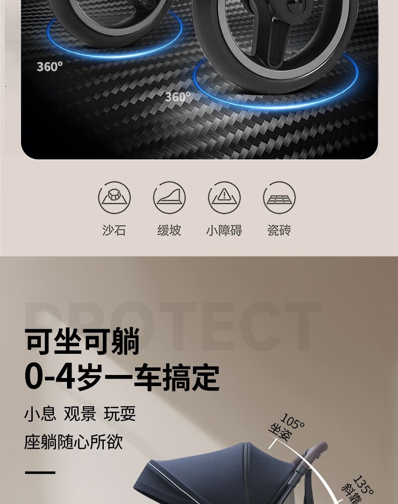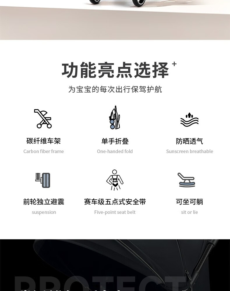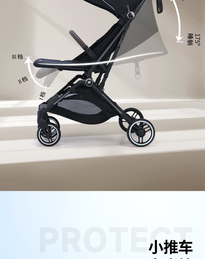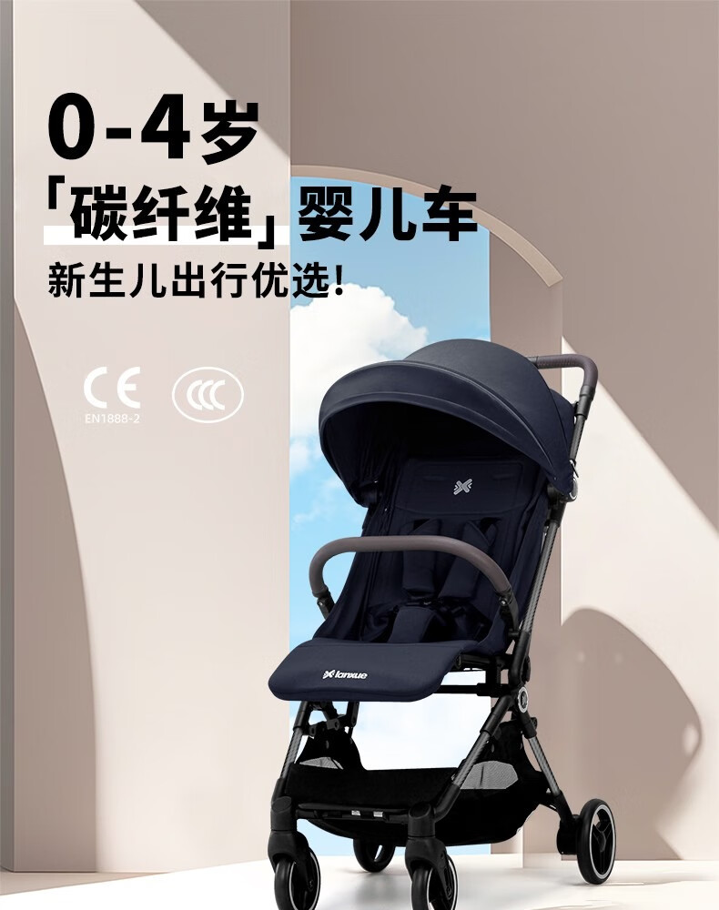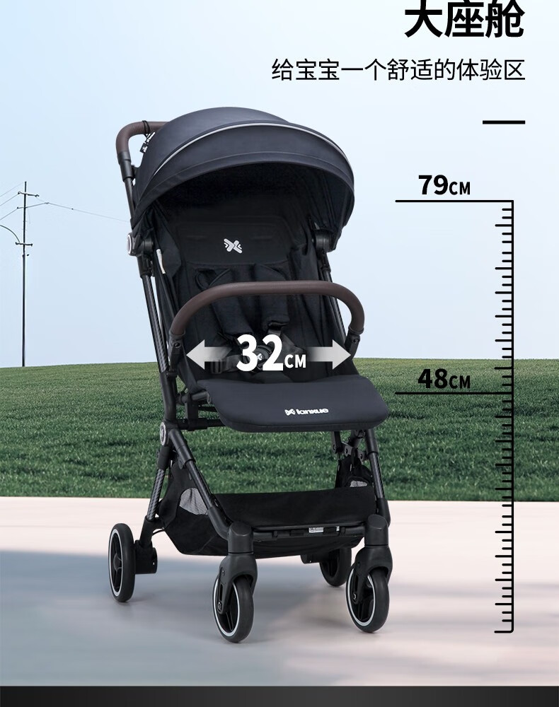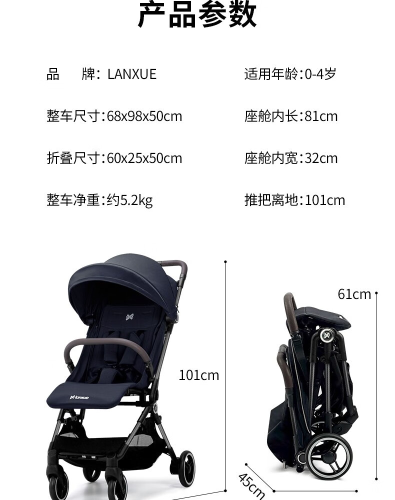 LANXUE蓝鳕x3碳纤维婴儿车高景观超轻便可坐躺可登机折叠遛娃双向婴儿车 浅粉色【蚊帐+雨罩+收纳袋+推车挂包】