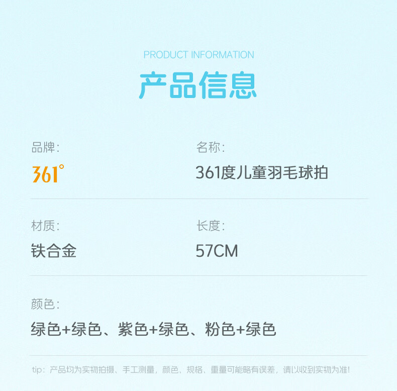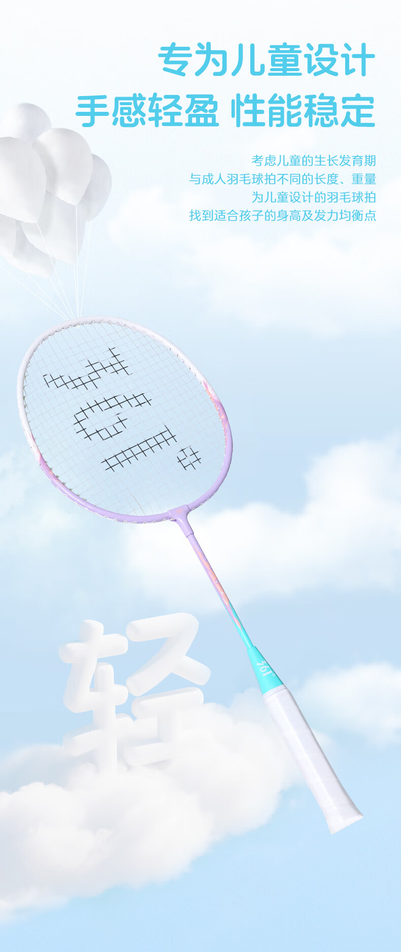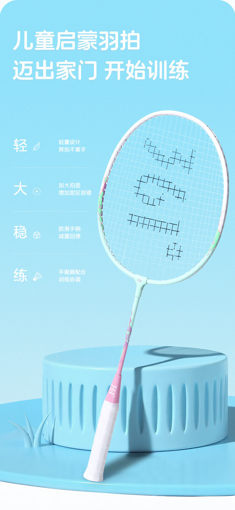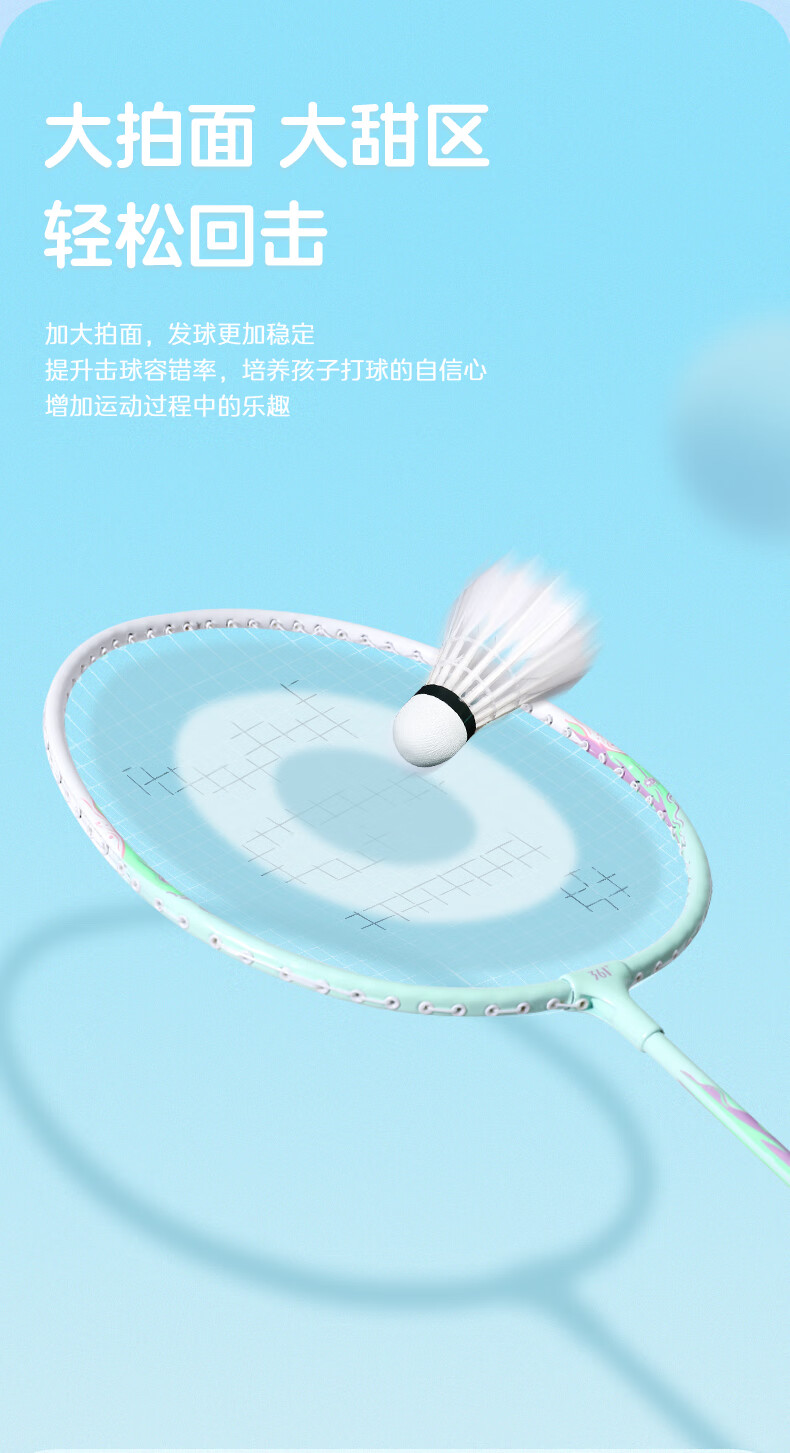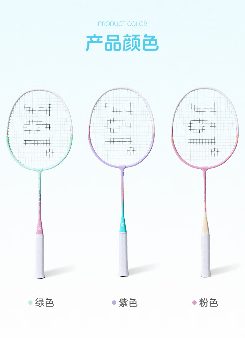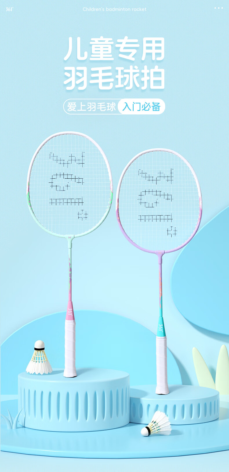 361°儿童羽毛球拍初学者套装6-12岁小学生超轻合金对拍耐打耐用 儿童对拍【粉+绿】