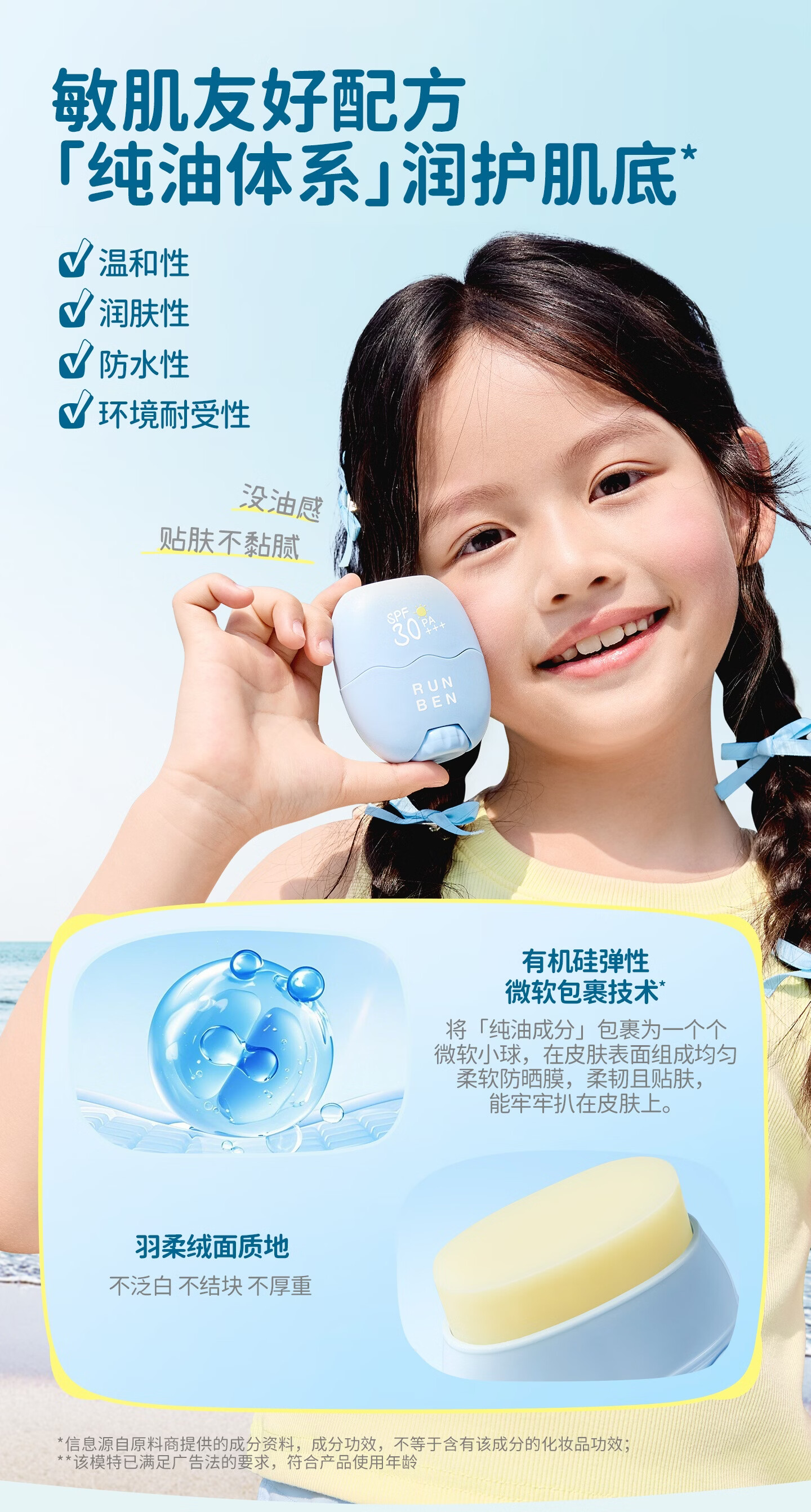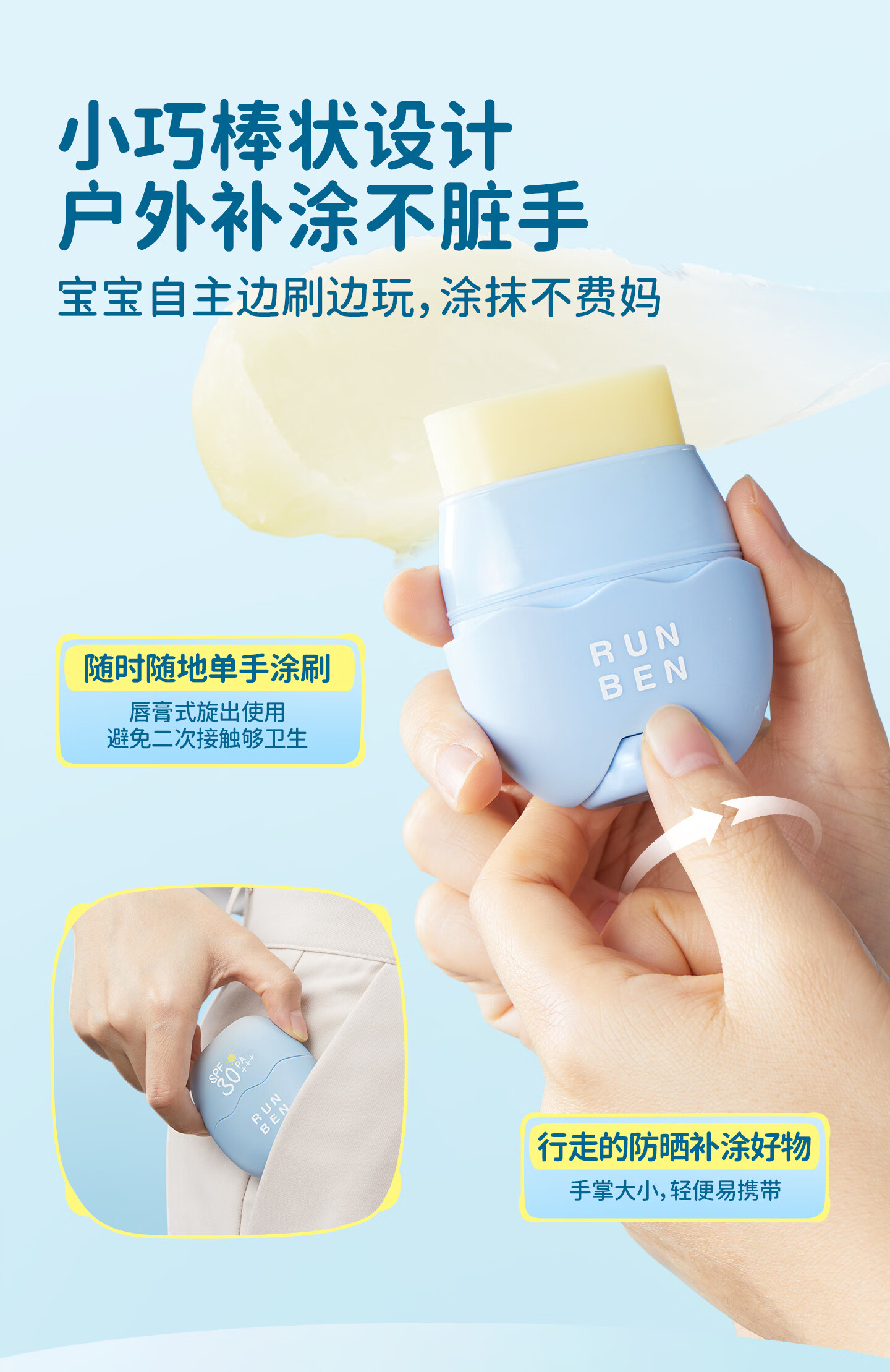 润本儿童防晒棒乳霜防水防汗宝宝防晒便携户外SPF30防晒棒22g