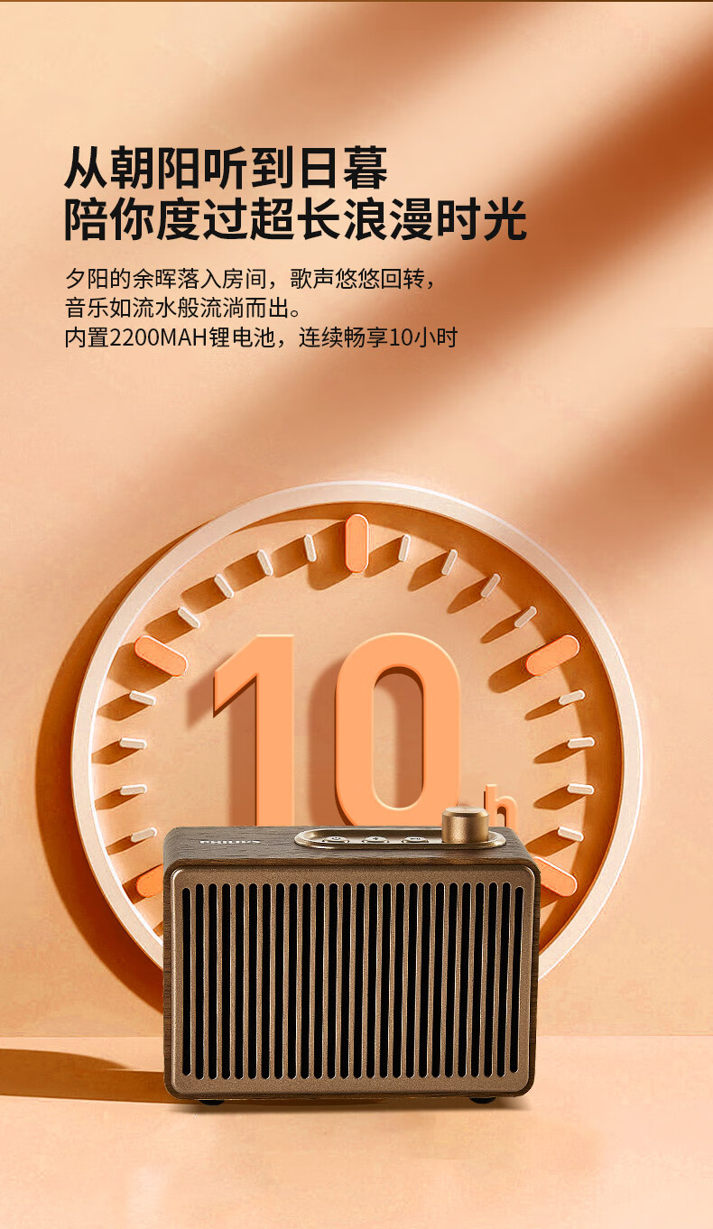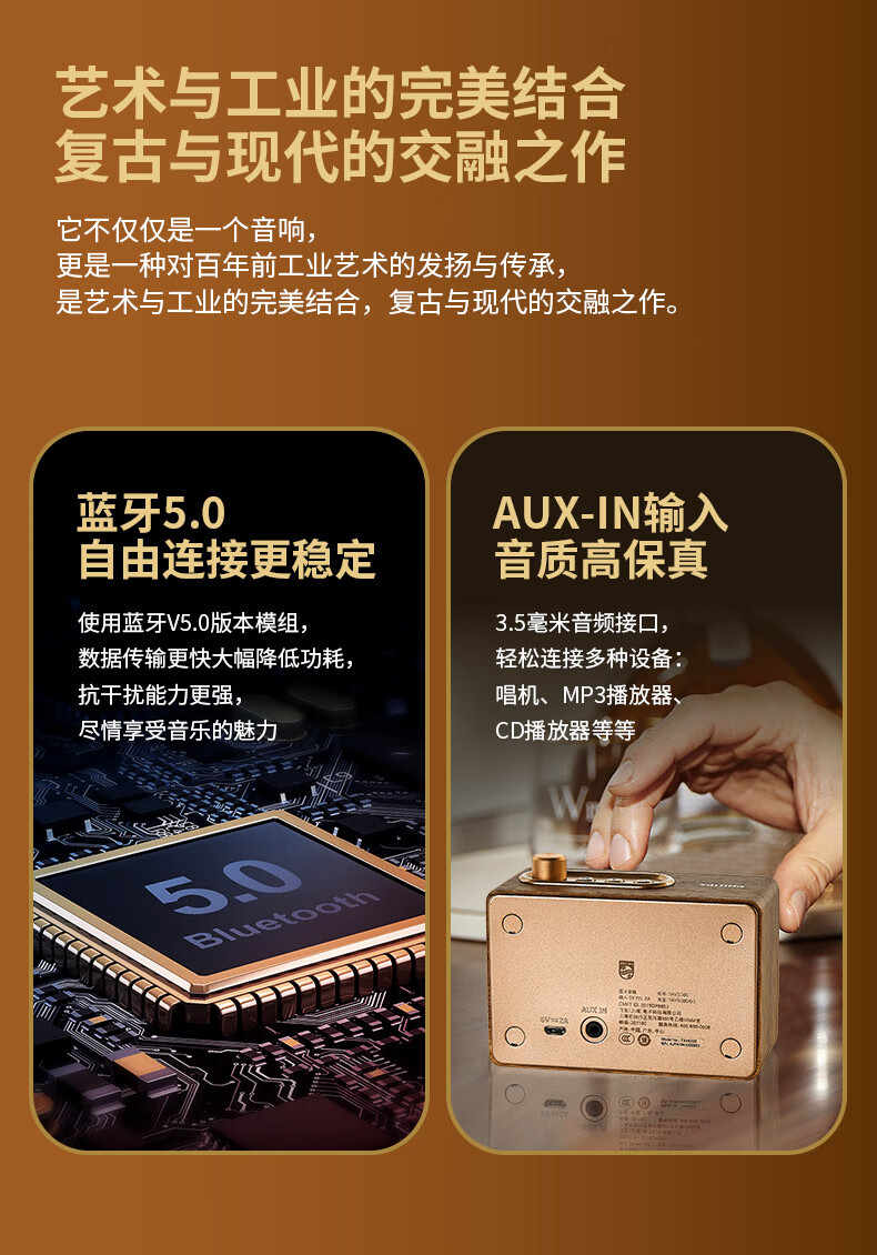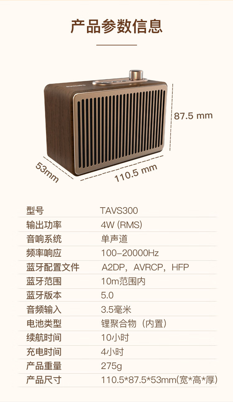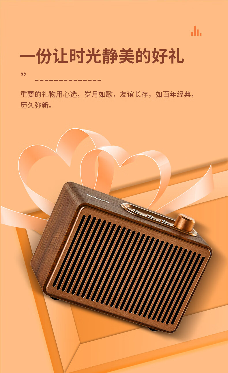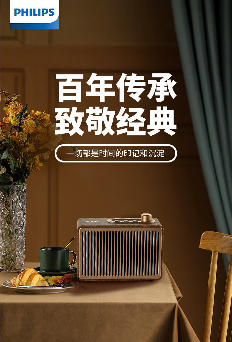 飞利浦(PHILIPS)TAVS300复古便携无线蓝牙音箱家居音响播放器桌面随身