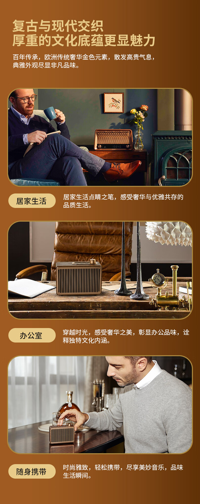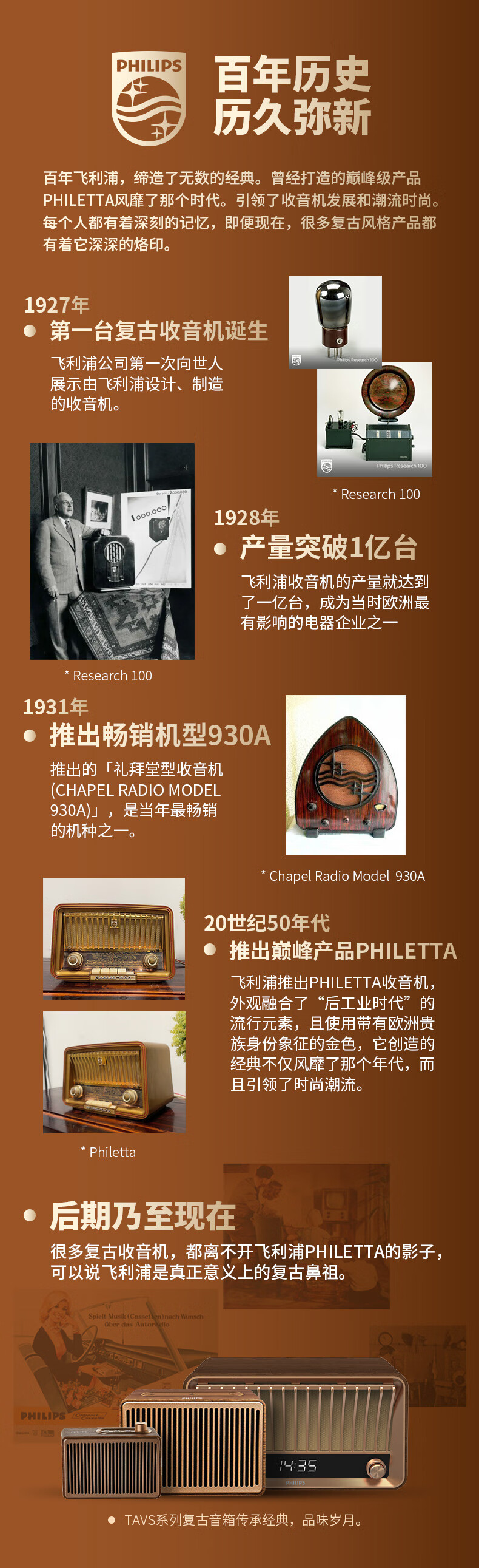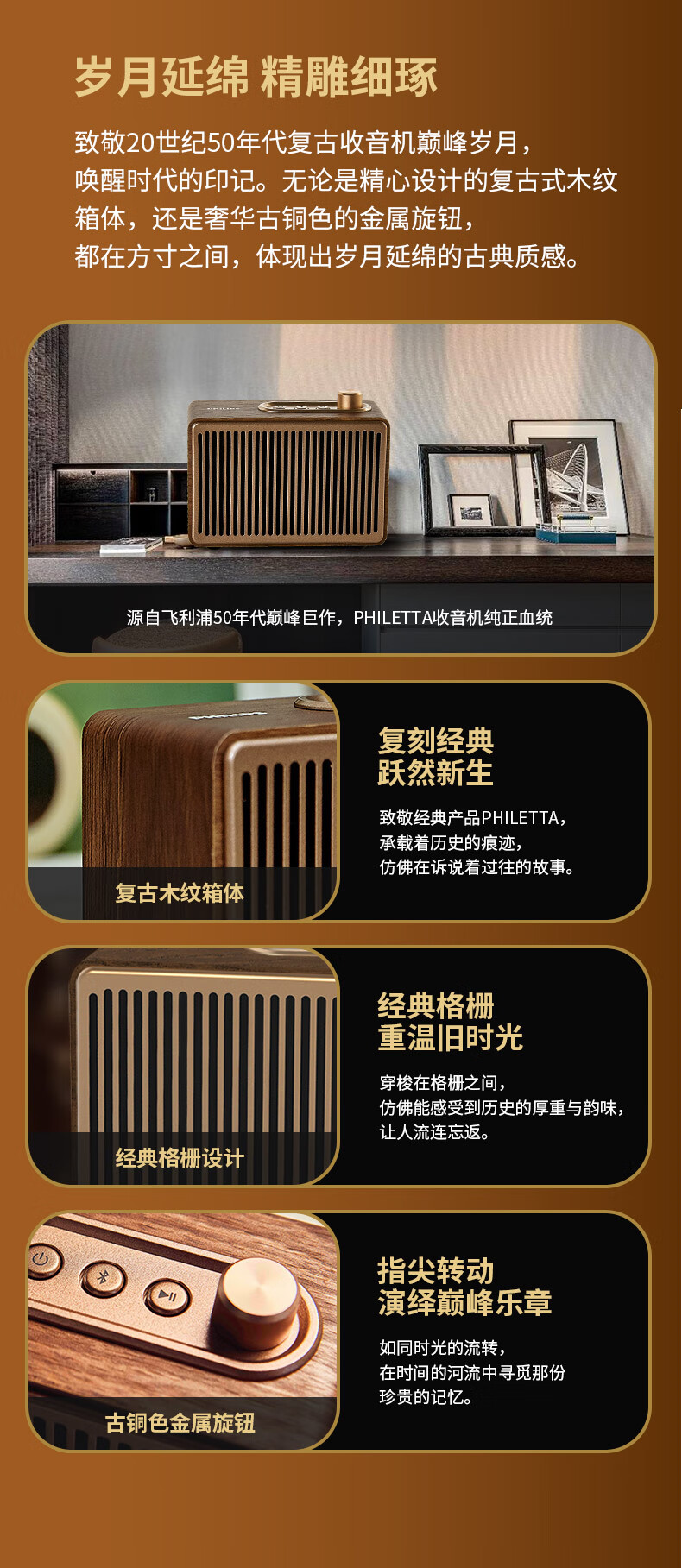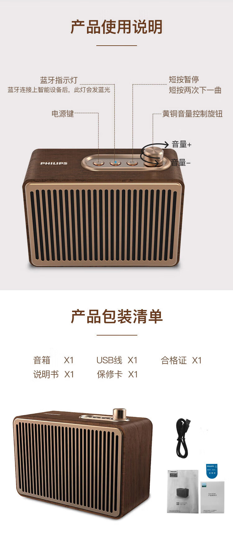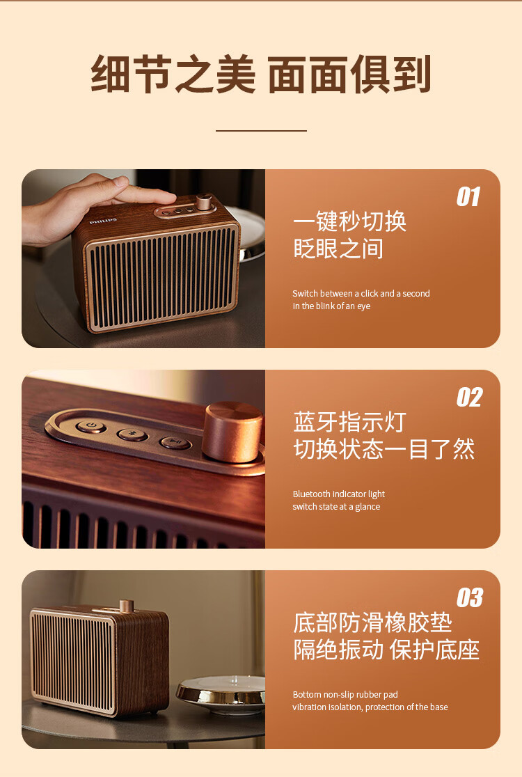 飞利浦(PHILIPS)TAVS300复古便携无线蓝牙音箱家居音响播放器桌面随身