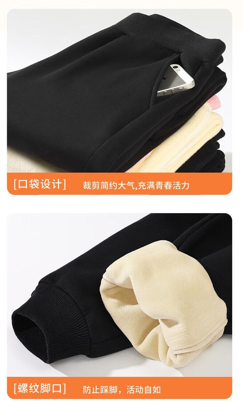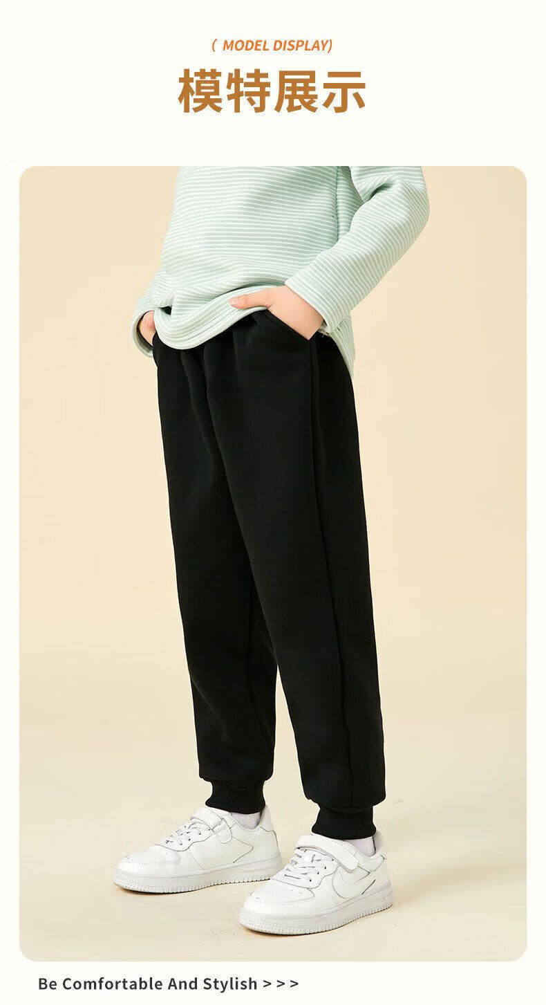 马骑顿MQD童装男童加绒运动裤2025冬季新款儿童加厚保暖束脚休闲裤长裤 黑色 140