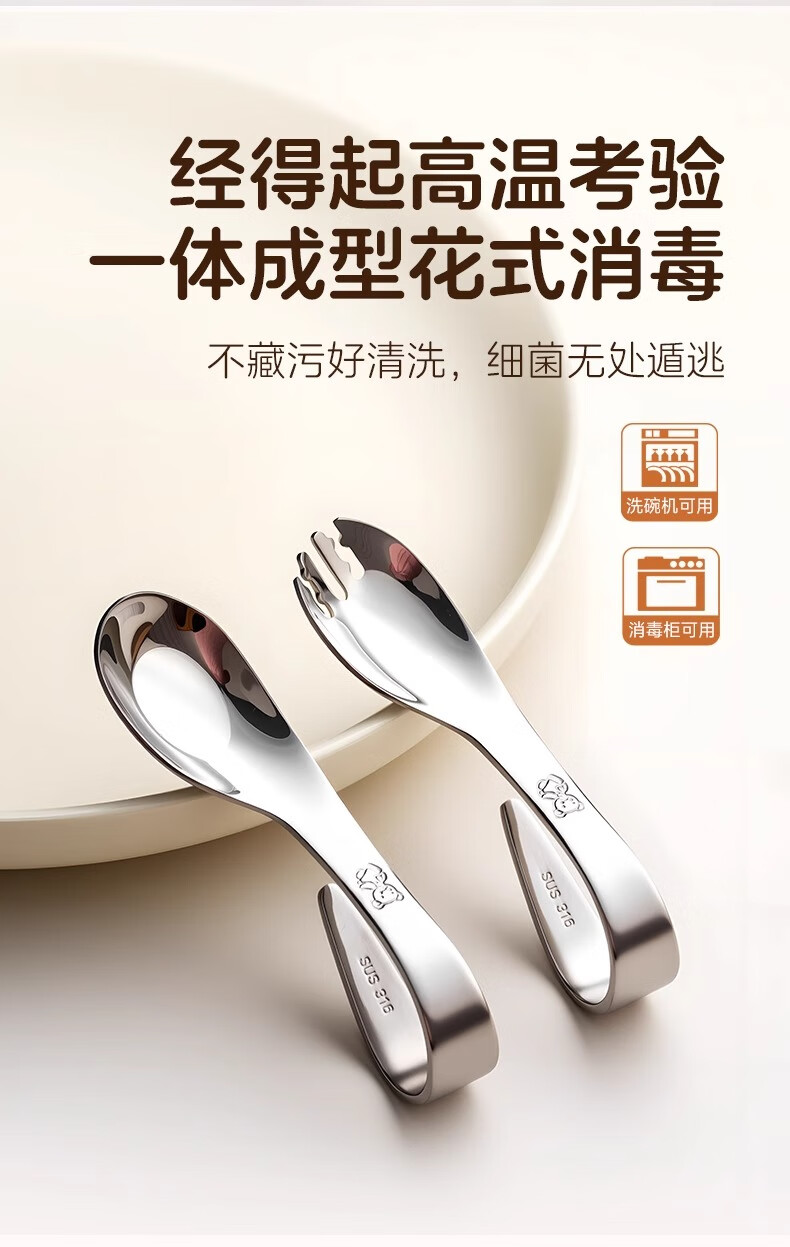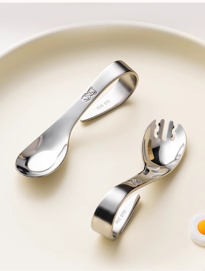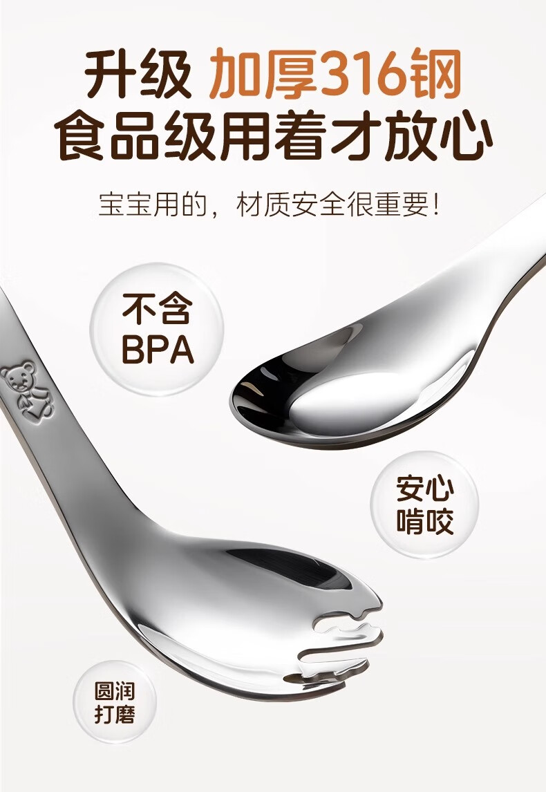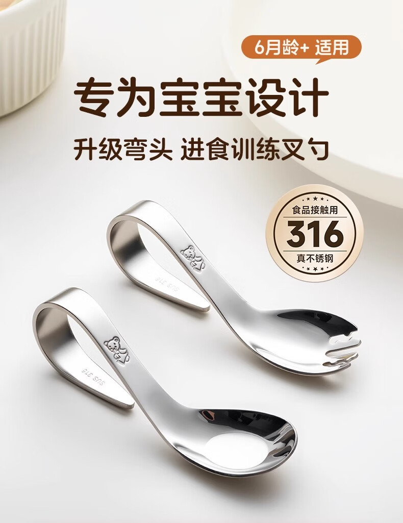 onlycook316不锈钢叉勺 儿童自主进食训练勺子 婴幼儿学吃饭辅食勺